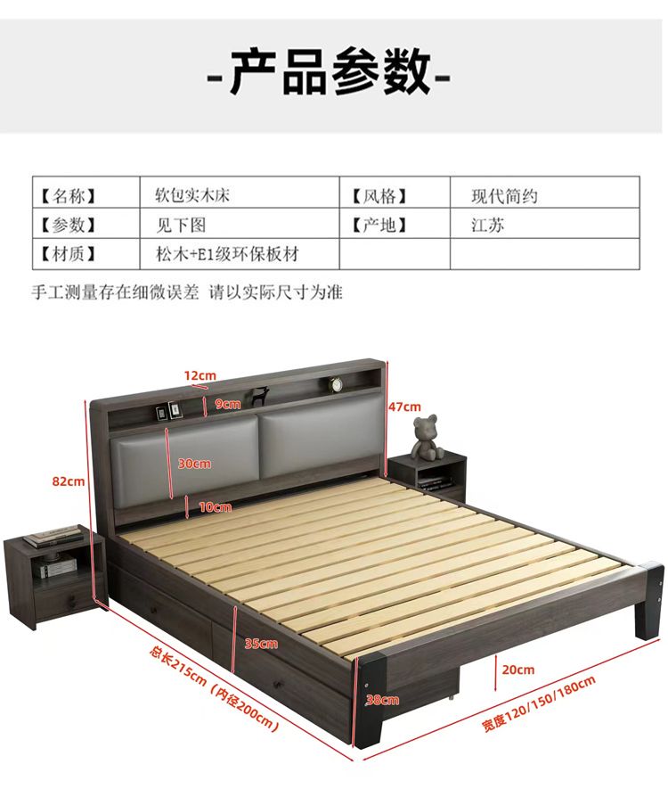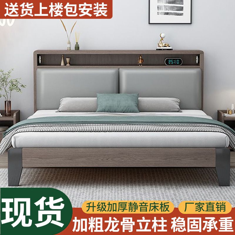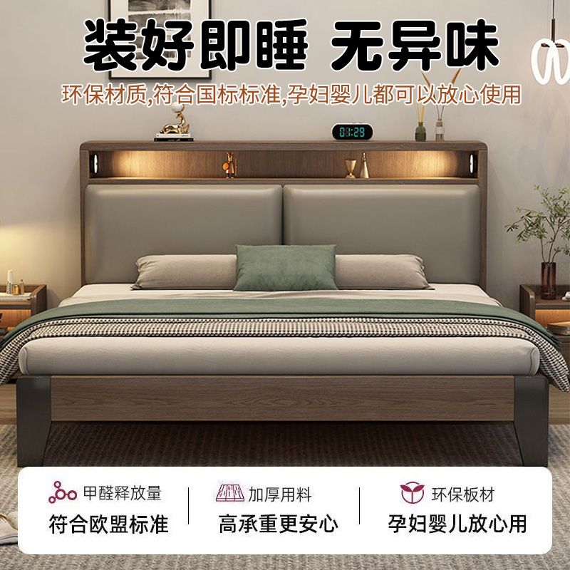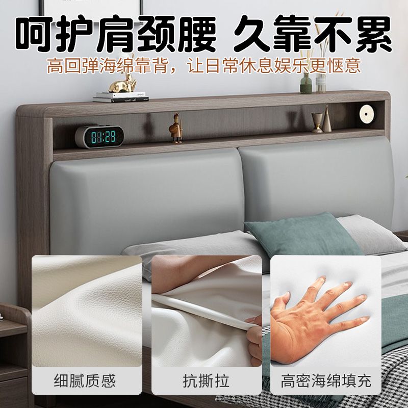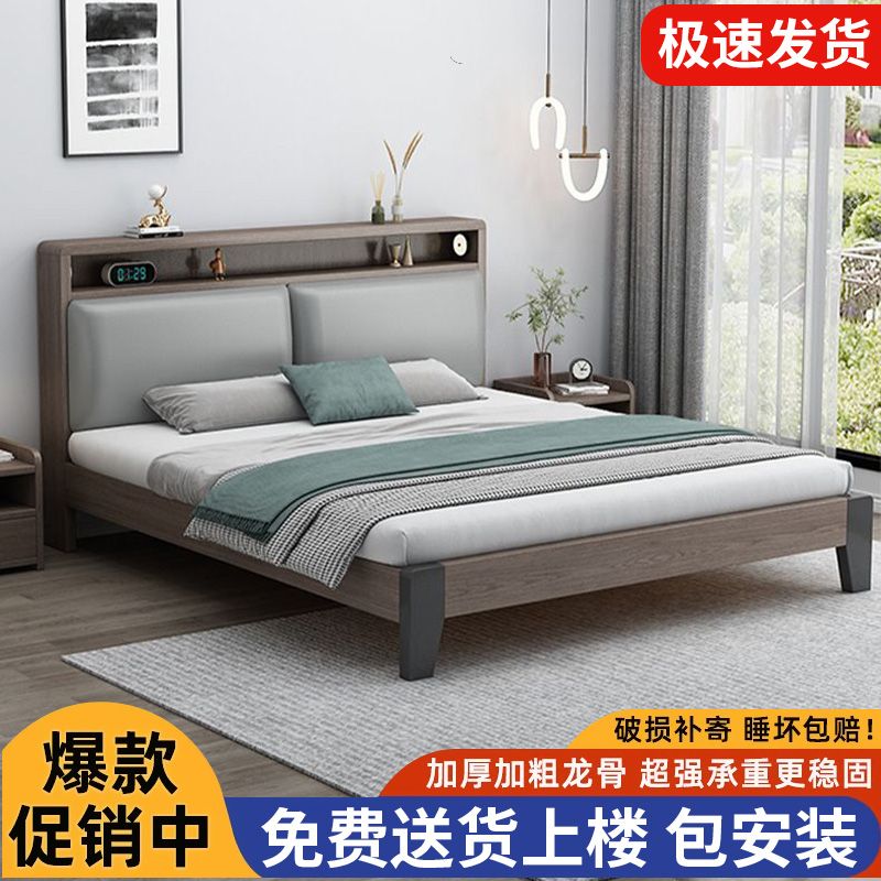 意式软包实木床双人1.8x2米主卧轻奢出租房1.5m单人床民宿1.2米
