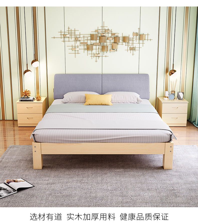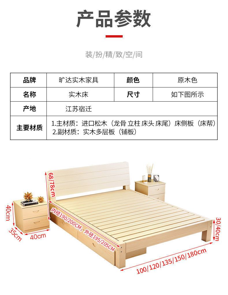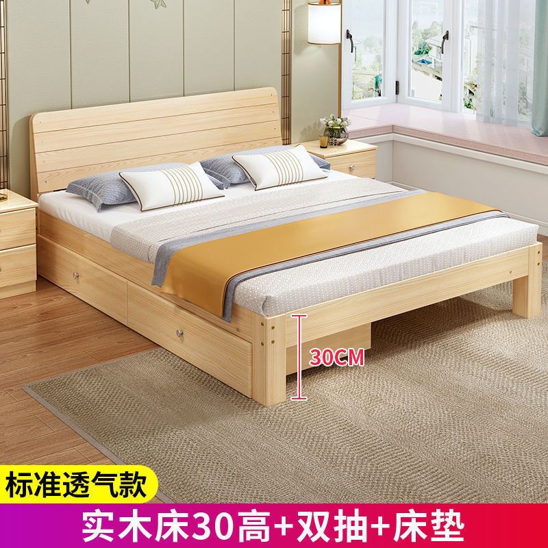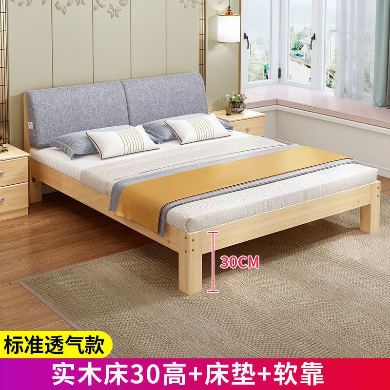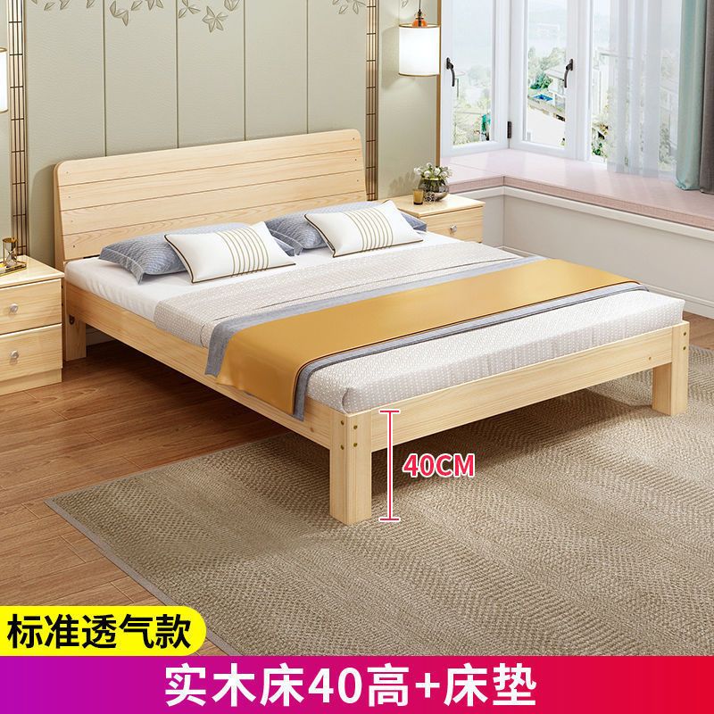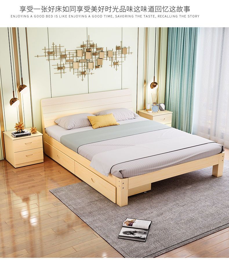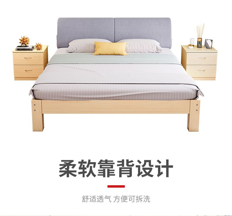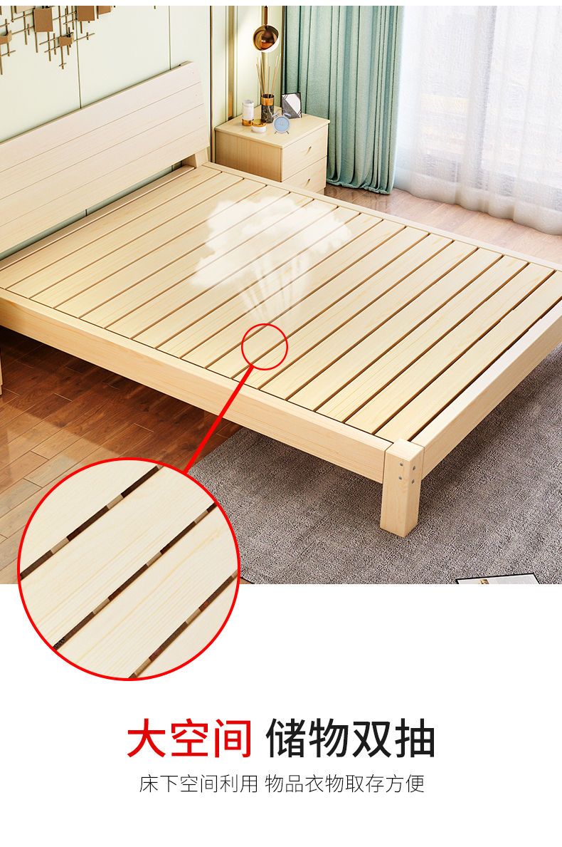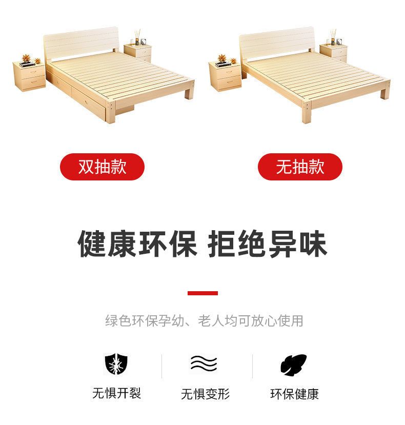 实木床现代简约1.5米双人床1.8米经济型出租房床架1.2m单人木板床
