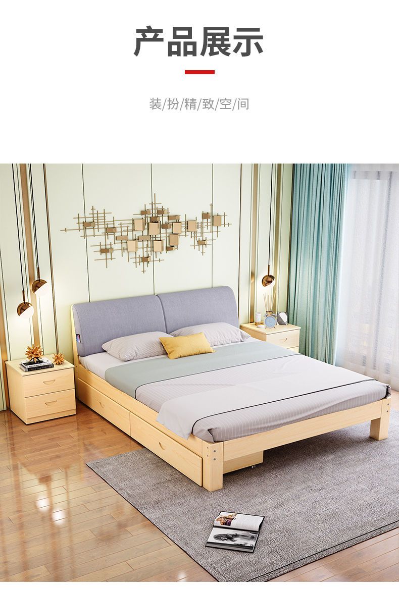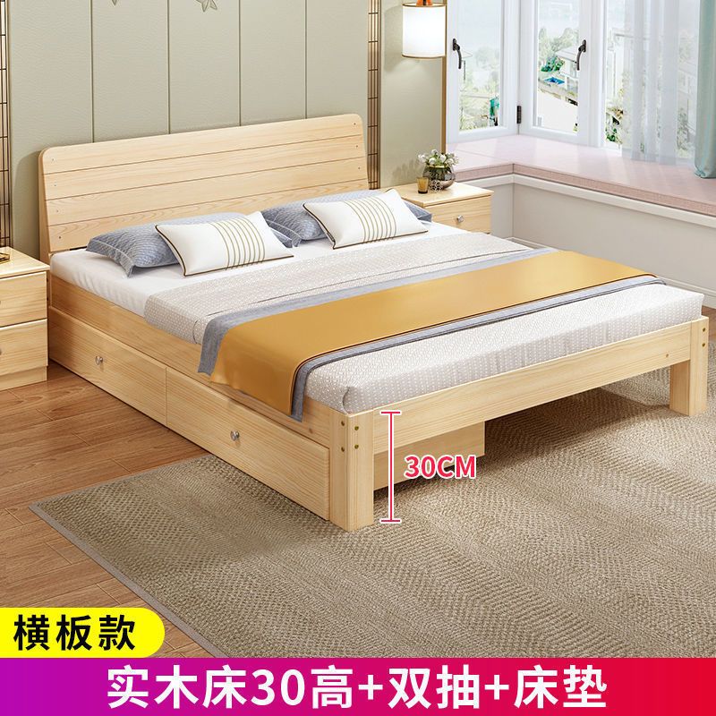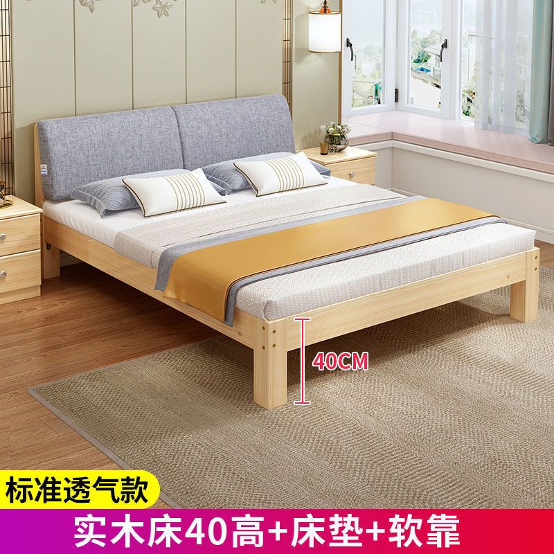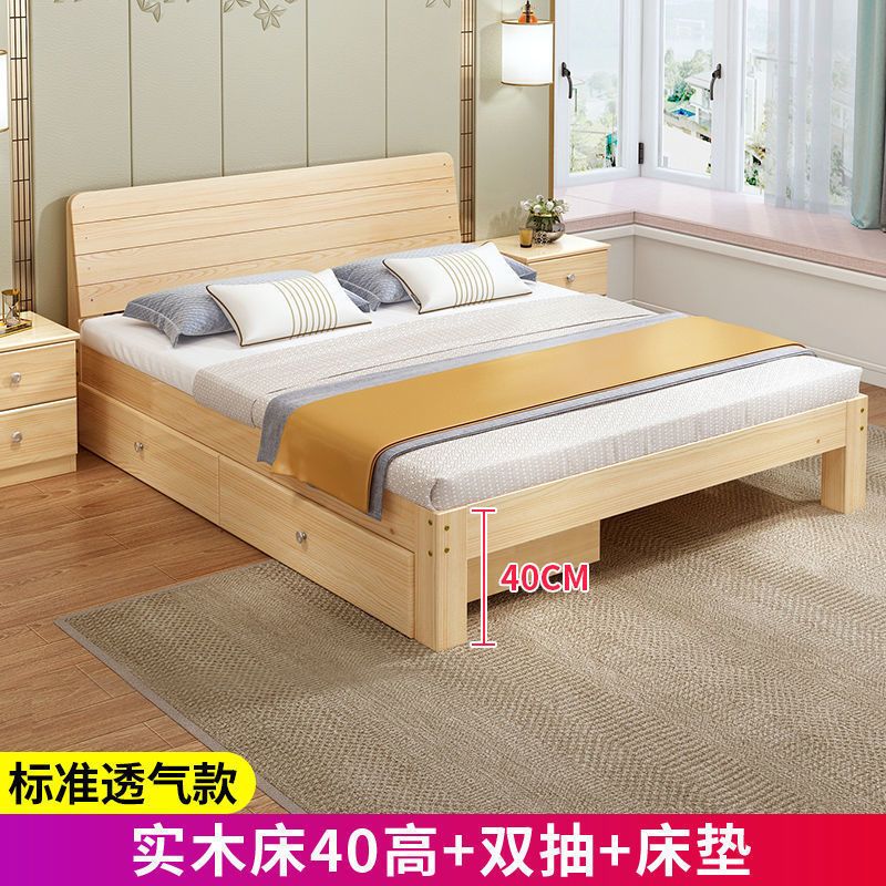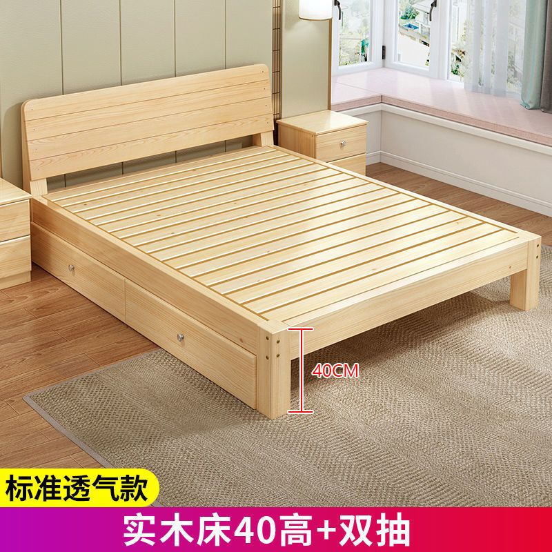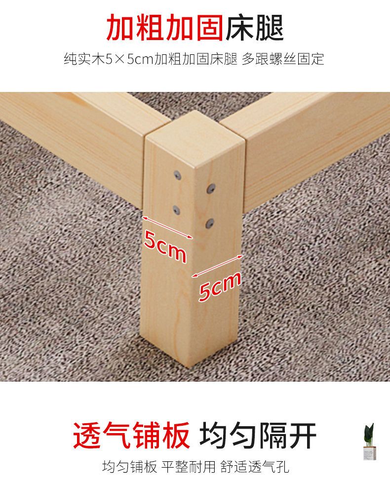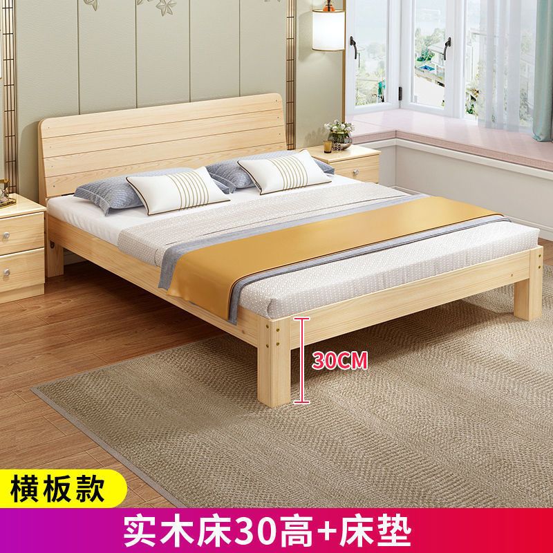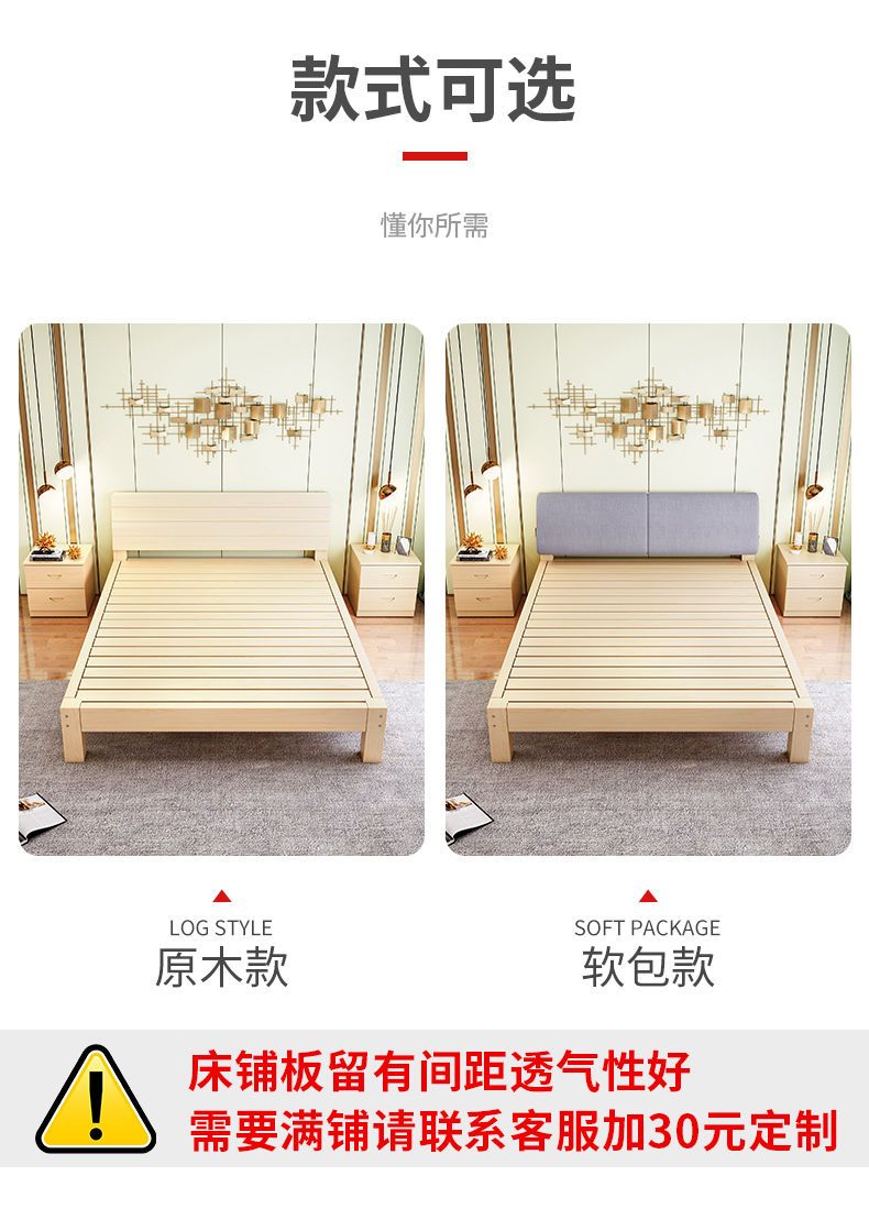实木床现代简约1.5米双人床1.8米经济型出租房床架1.2m单人木板床