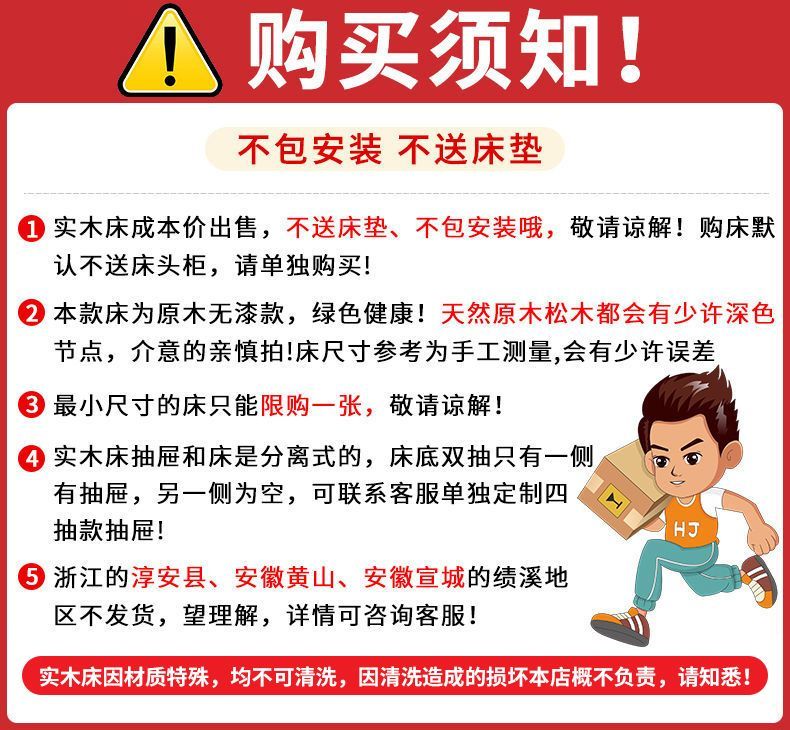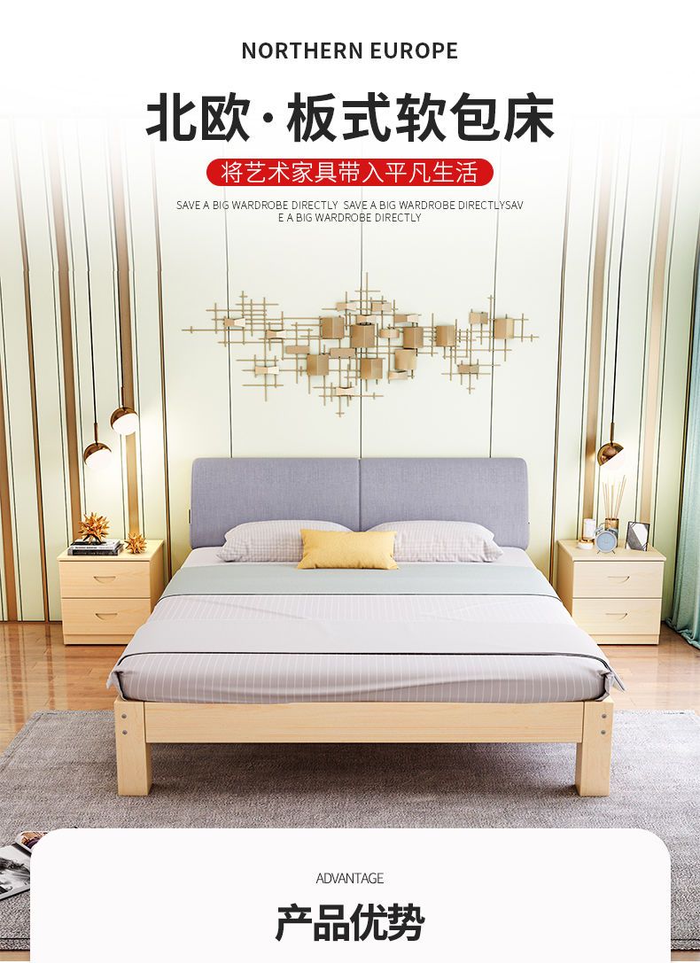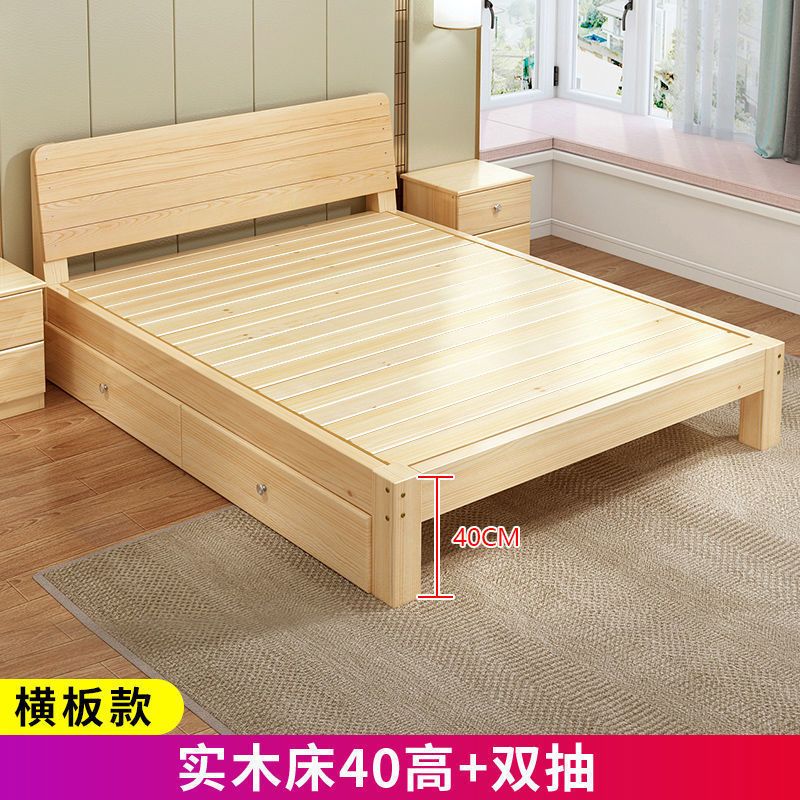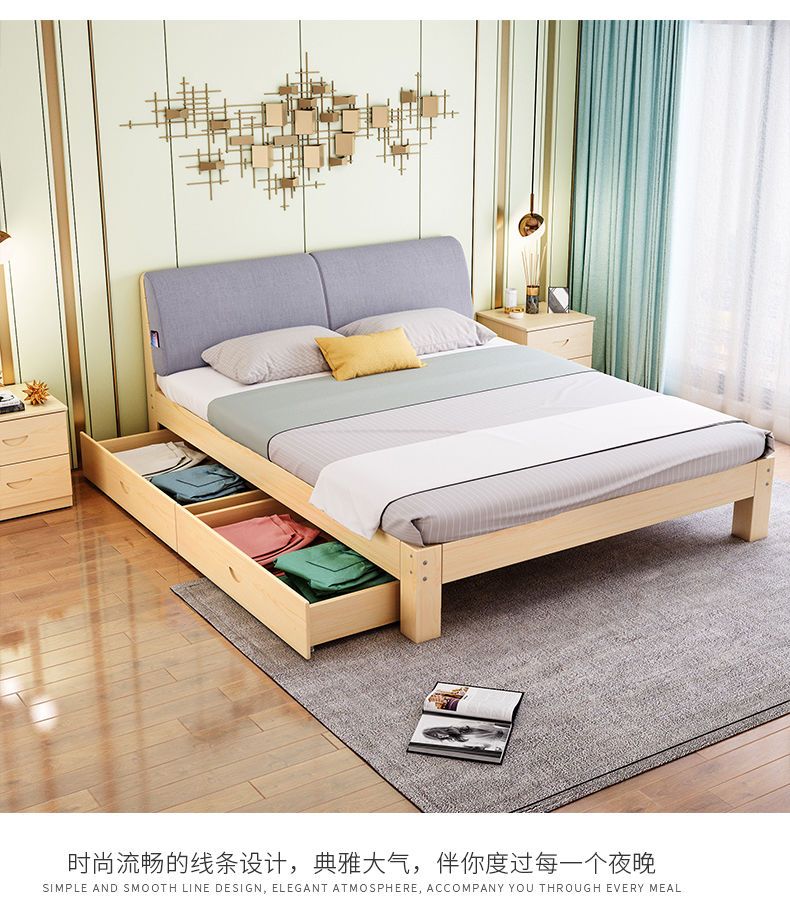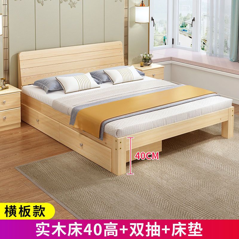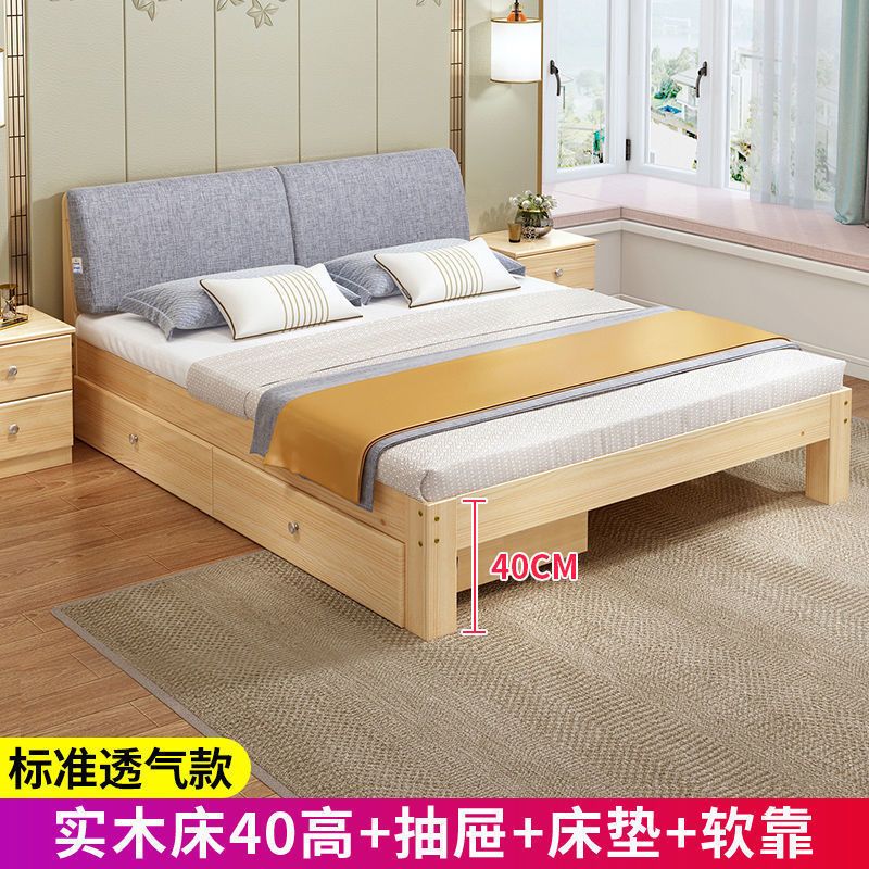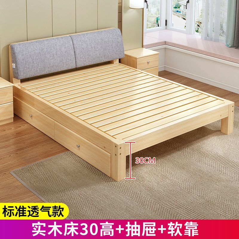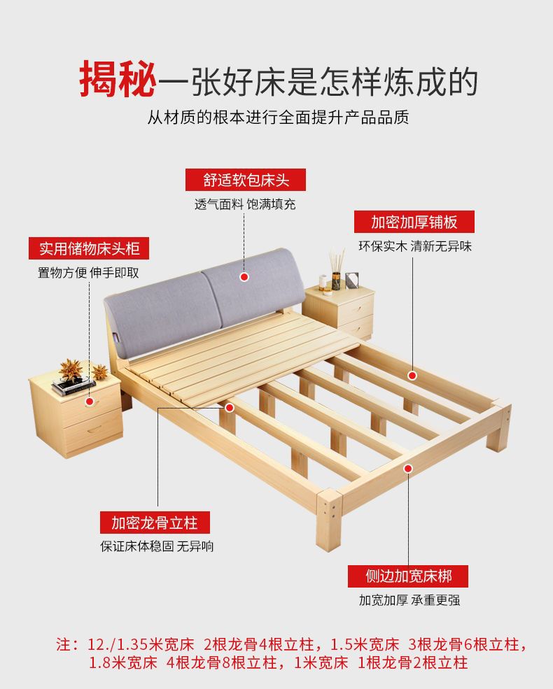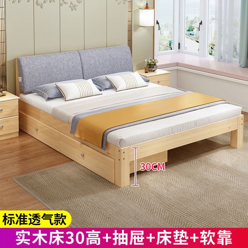 实木床现代简约1.5米双人床1.8米经济型出租房床架1.2m单人木板床