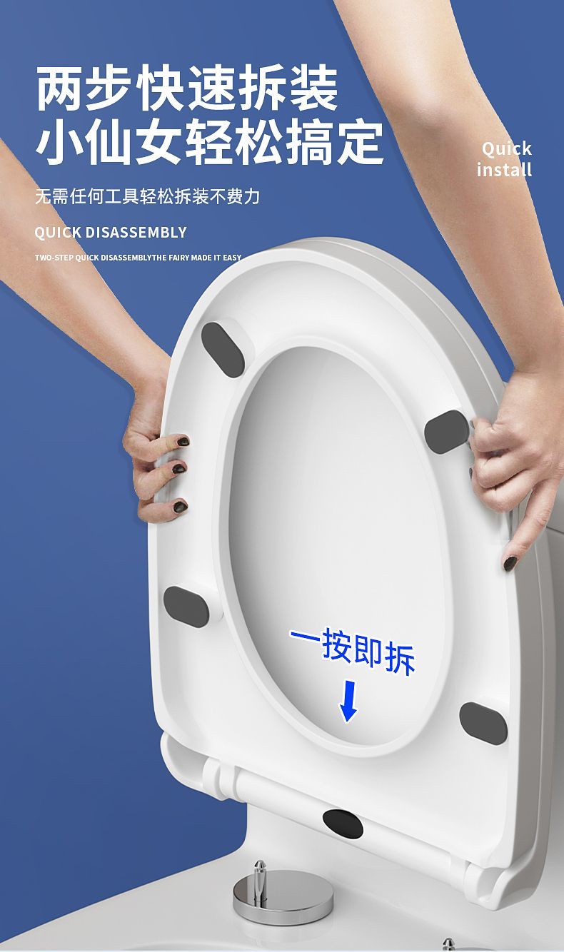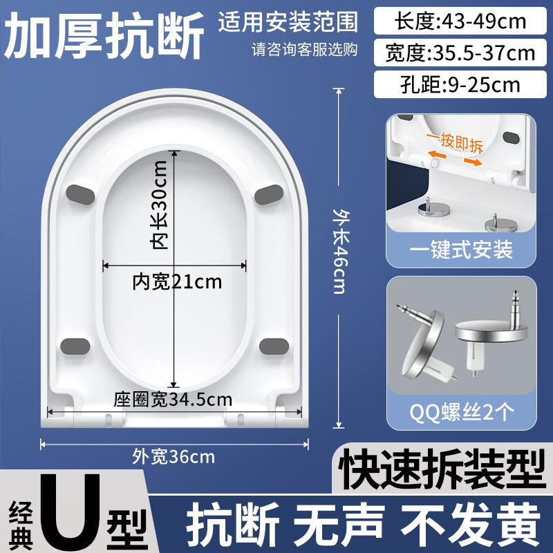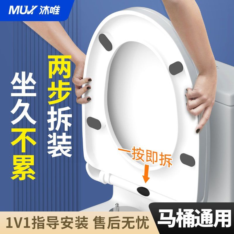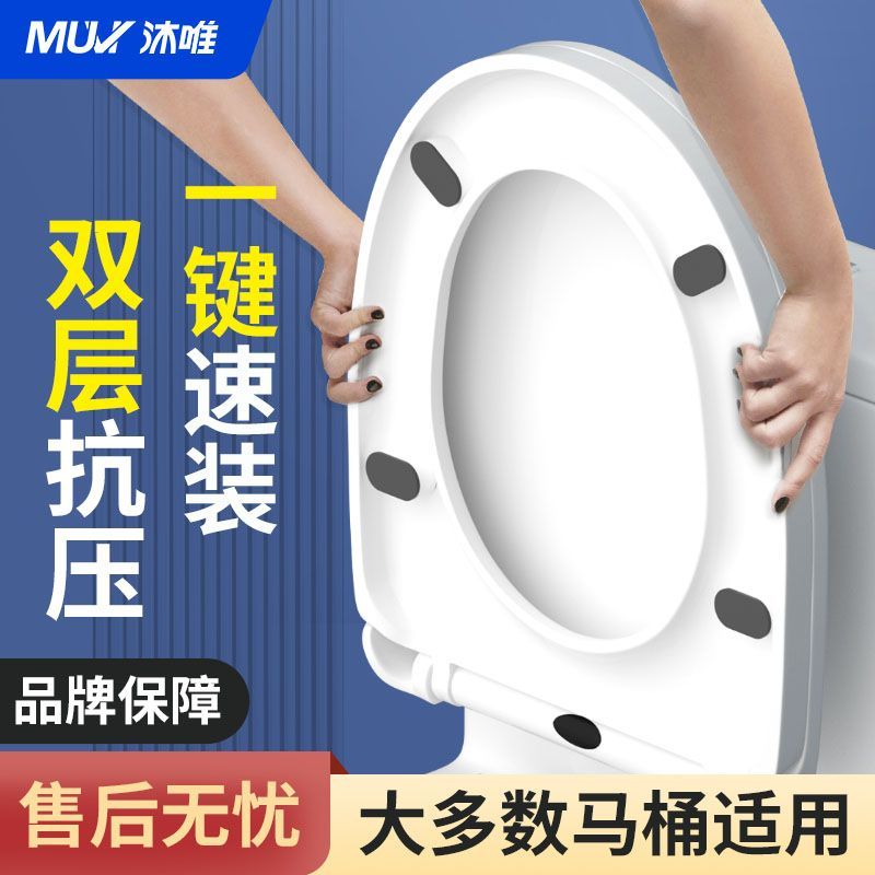 沐唯马桶盖家用加厚坐便盖UVO型马桶快拆坐便器缓降座垫盖板通用