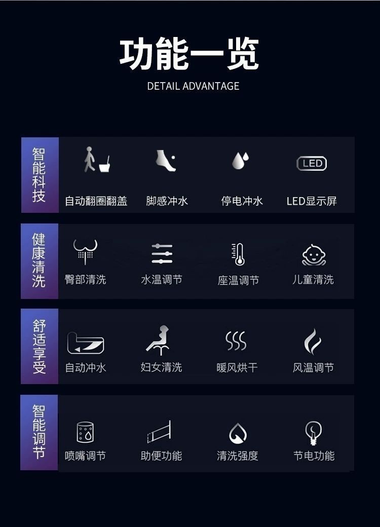 厂家直销爆款全新智能马桶盖板通用型全自动座便器多功能智能盖板