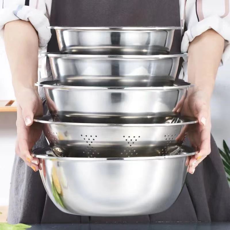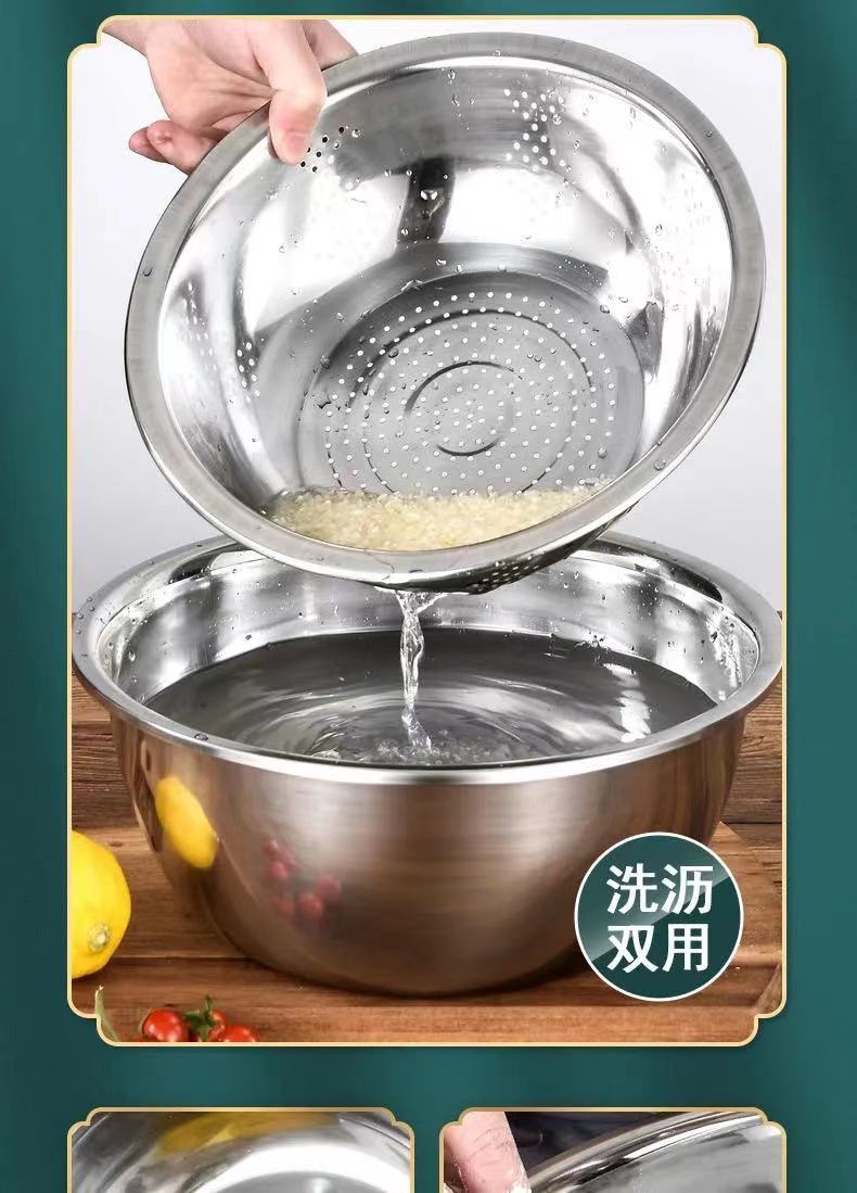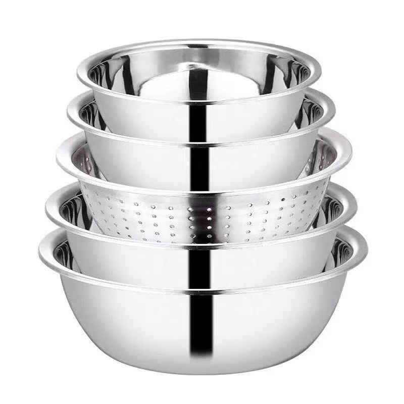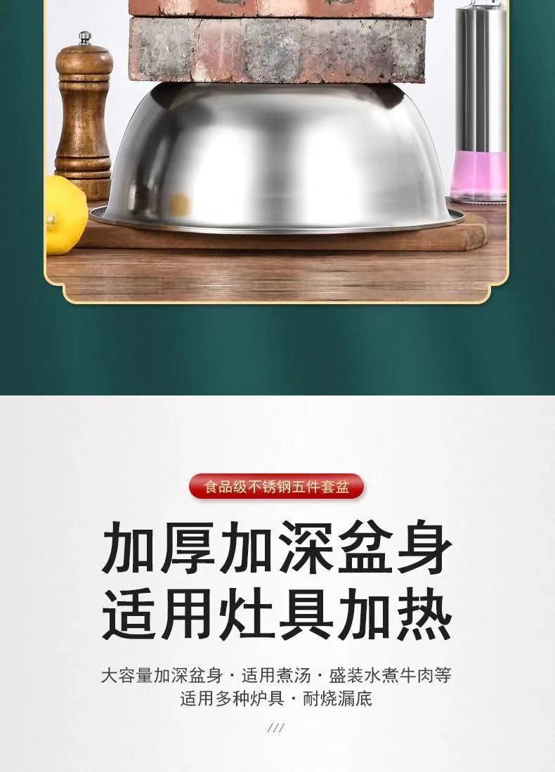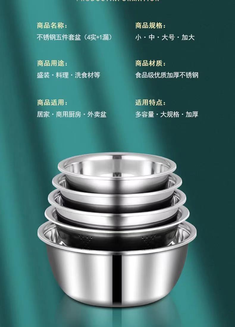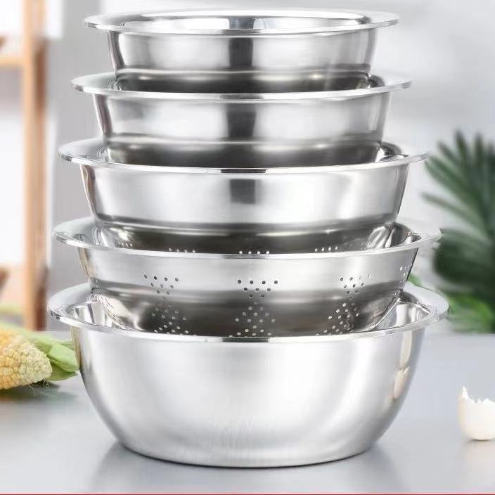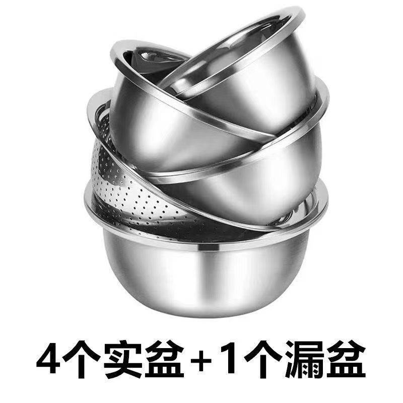 五件套不锈钢盆加厚厨房打蛋洗菜和面锅具漏汤盆淘米沥水烹饪用具