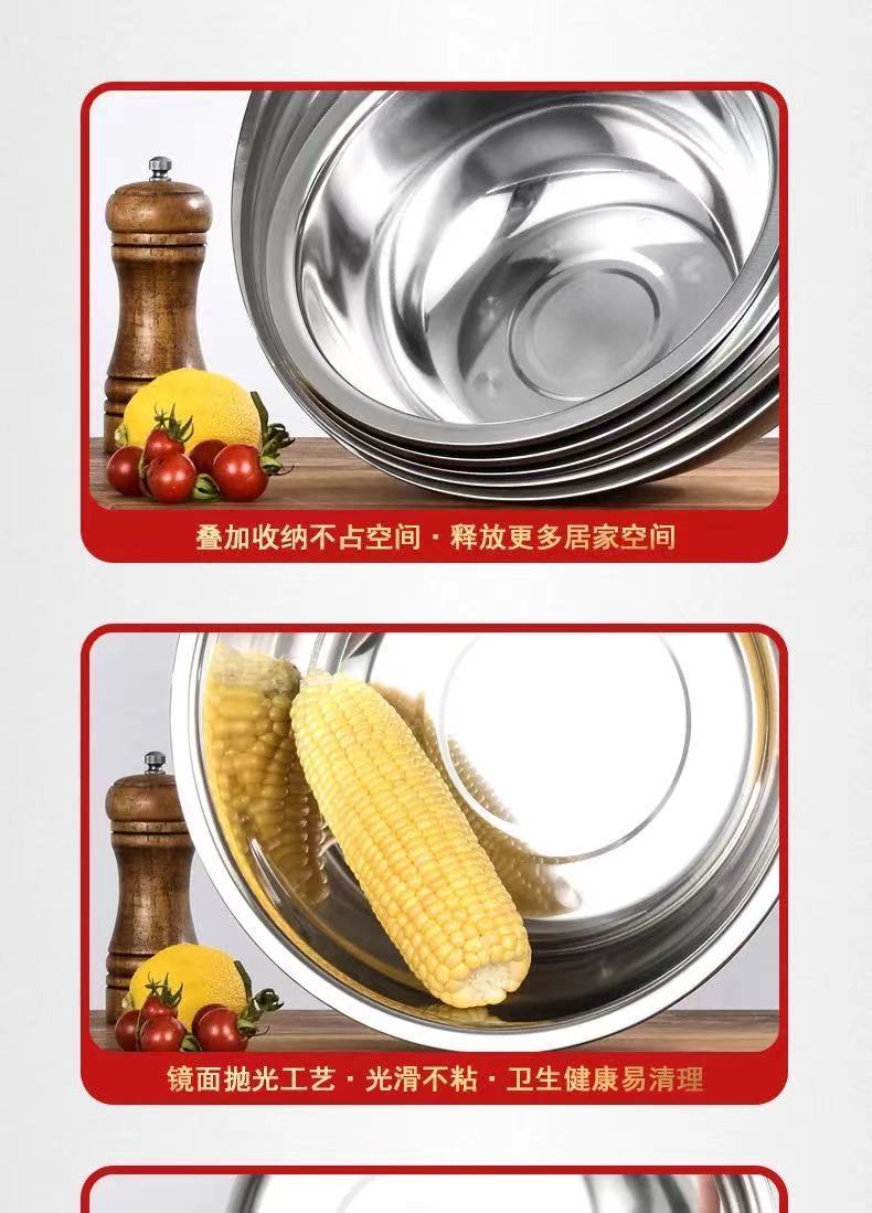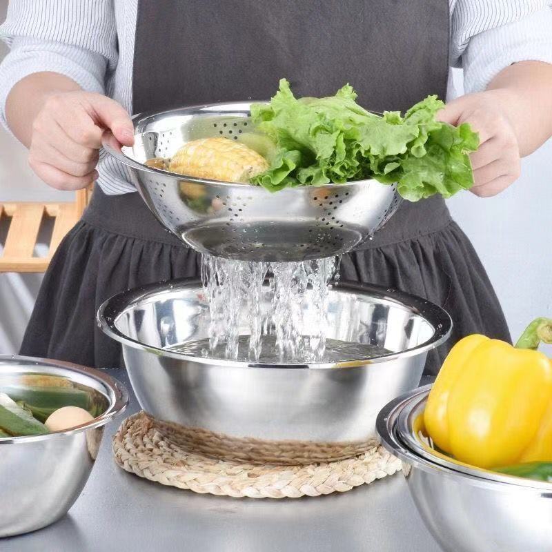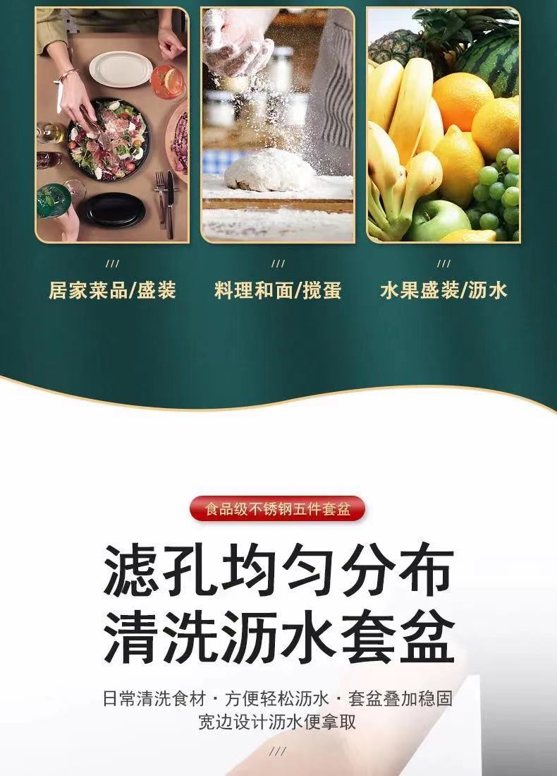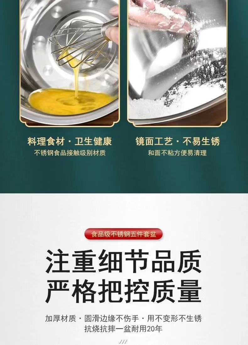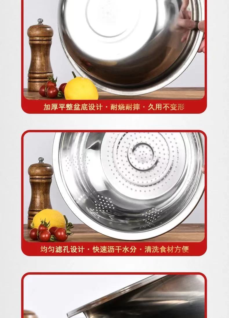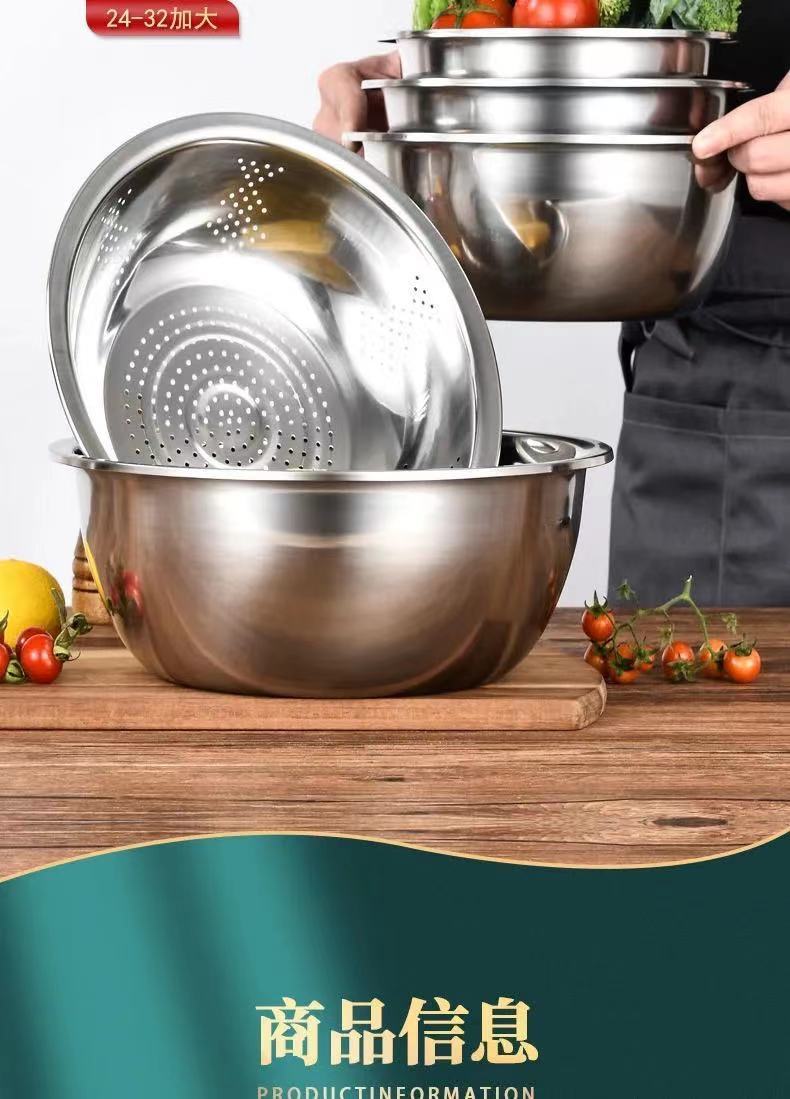 五件套不锈钢盆加厚厨房打蛋洗菜和面锅具漏汤盆淘米沥水烹饪用具
