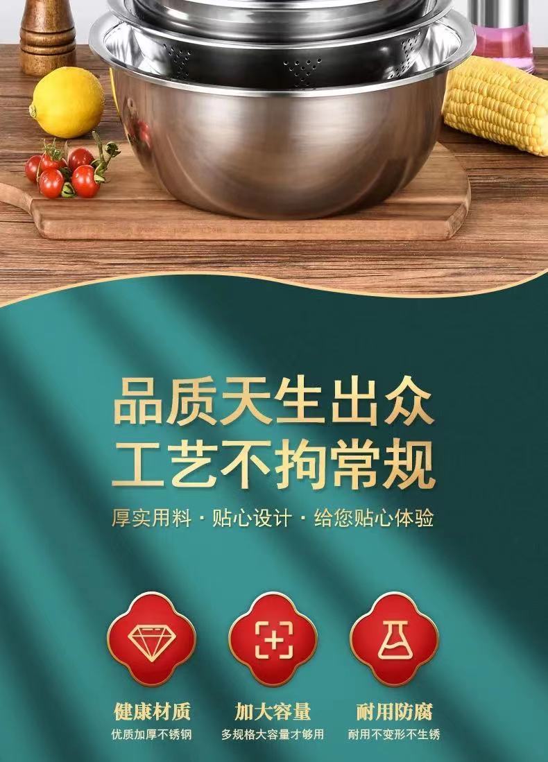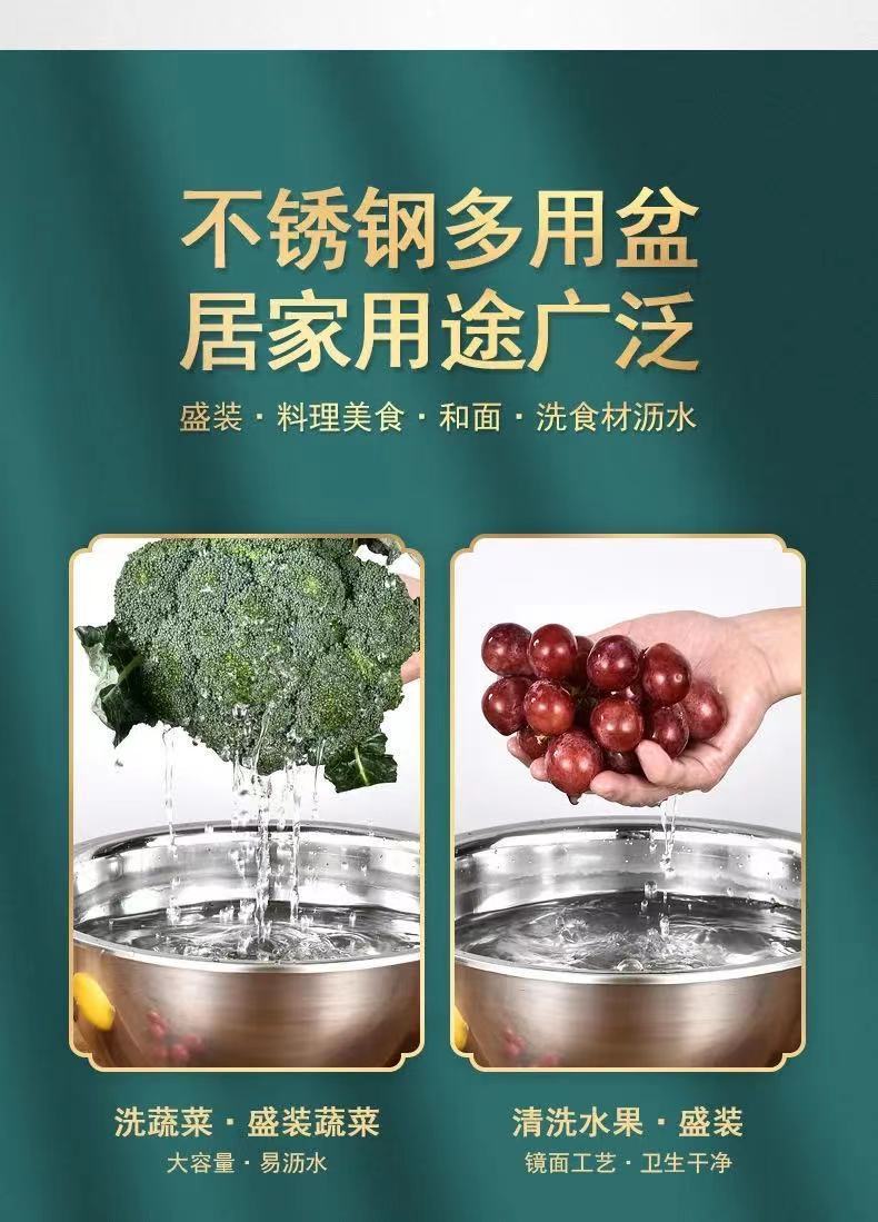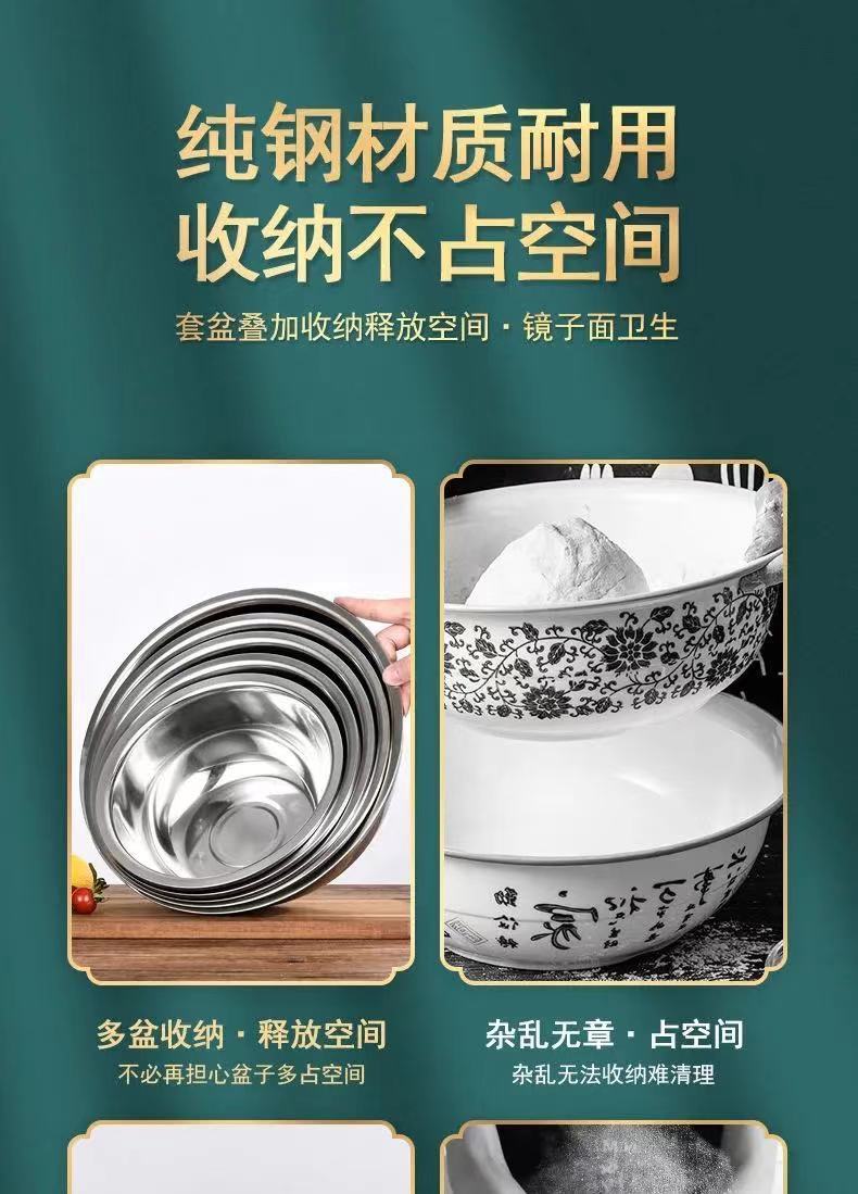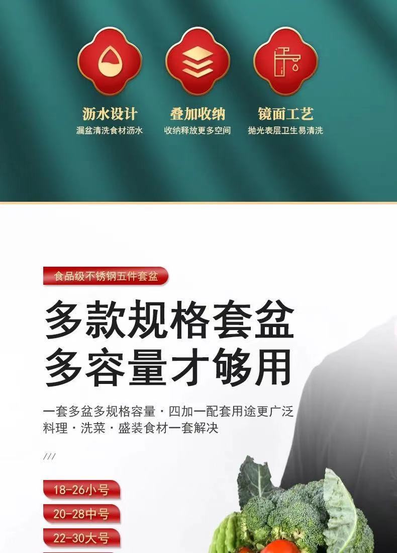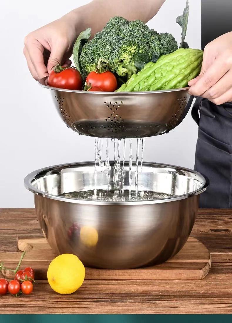 五件套不锈钢盆加厚厨房打蛋洗菜和面锅具漏汤盆淘米沥水烹饪用具