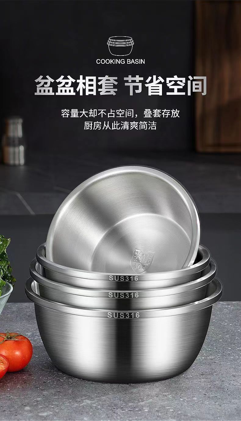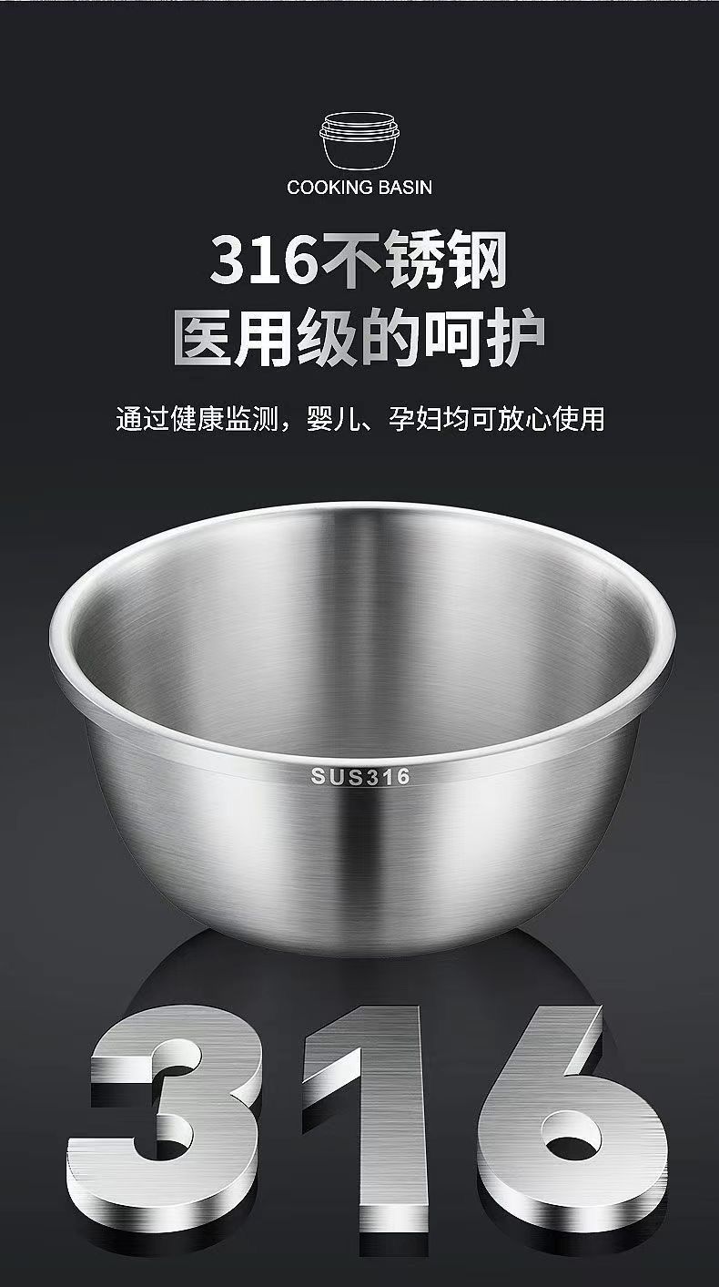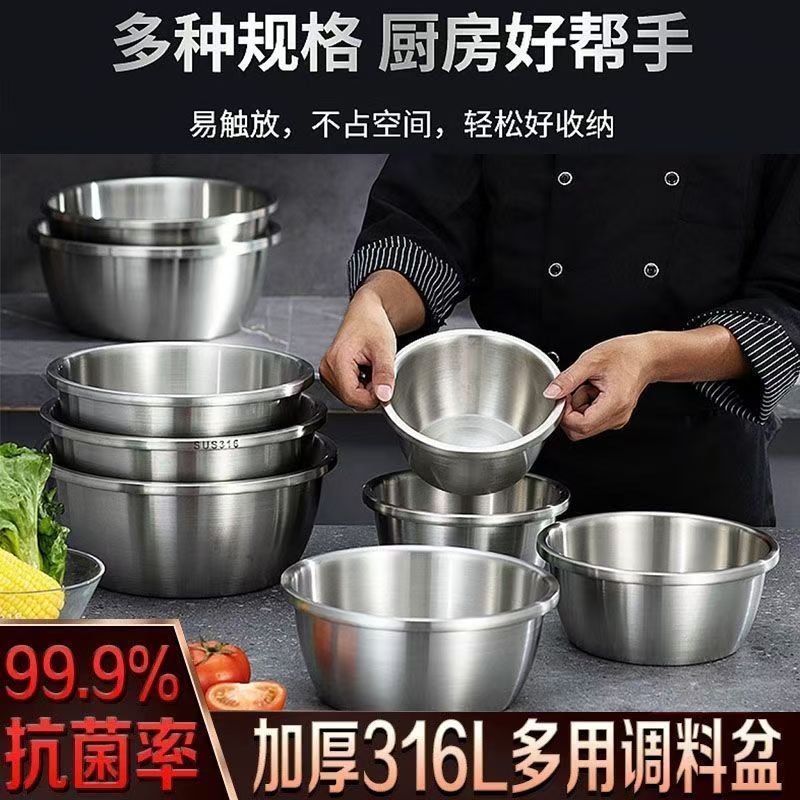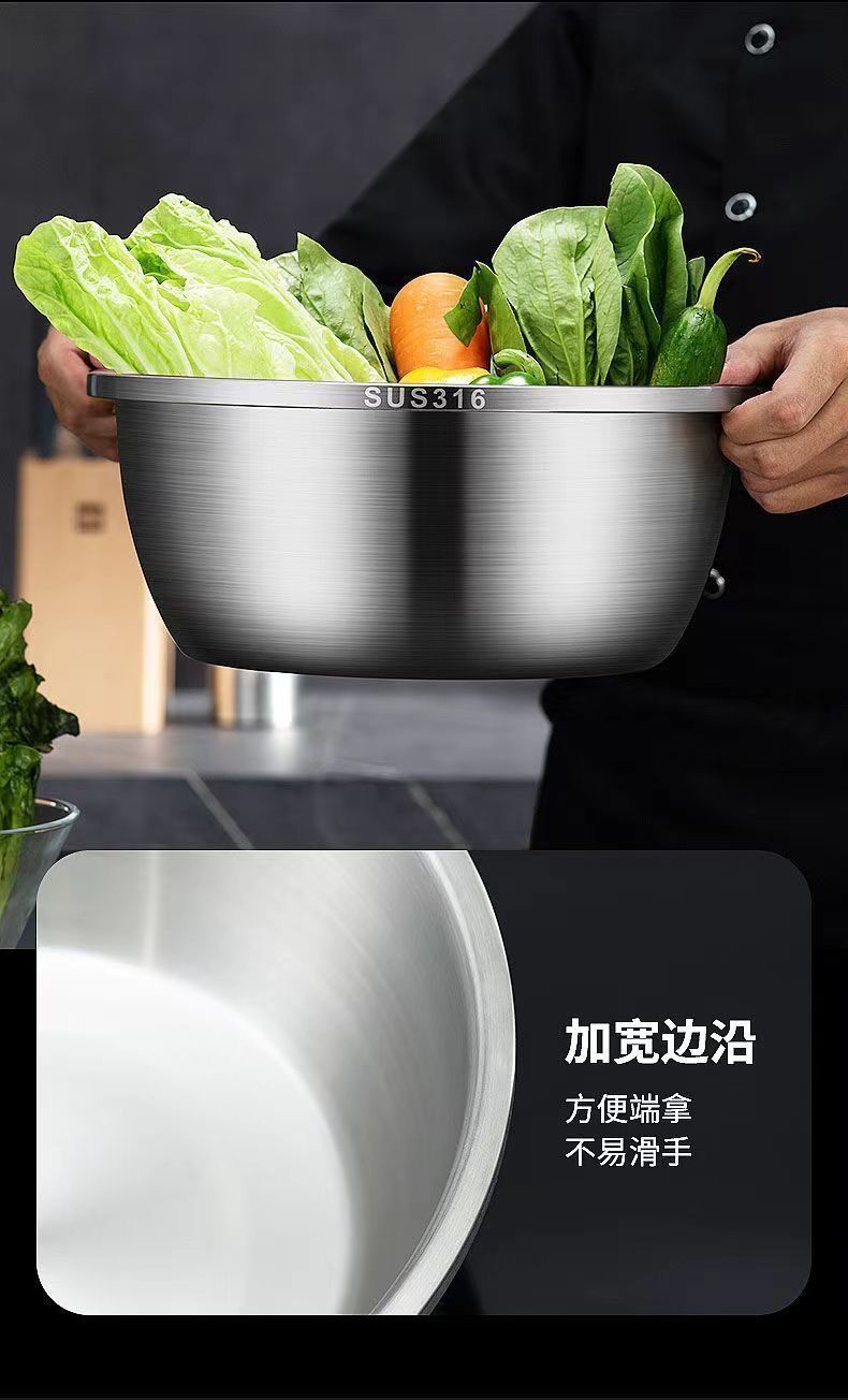 【拍一发三】316不锈钢盆厨房家用特厚打蛋和面盆洗菜洗水果汤盆