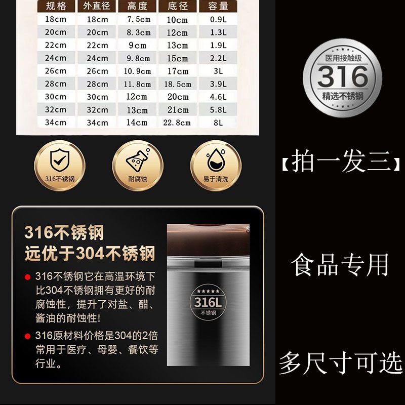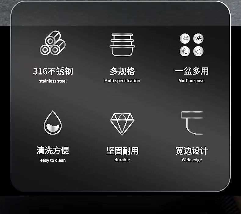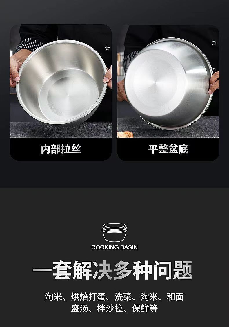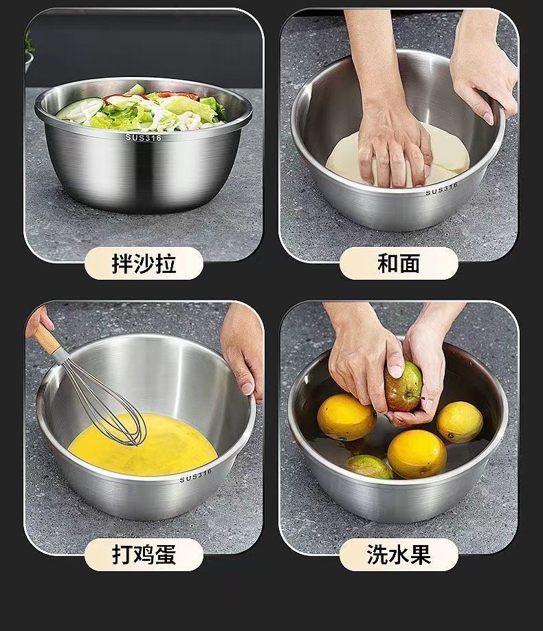 【拍一发三】316不锈钢盆厨房家用特厚打蛋和面盆洗菜洗水果汤盆