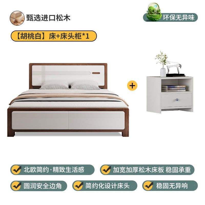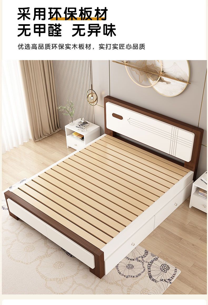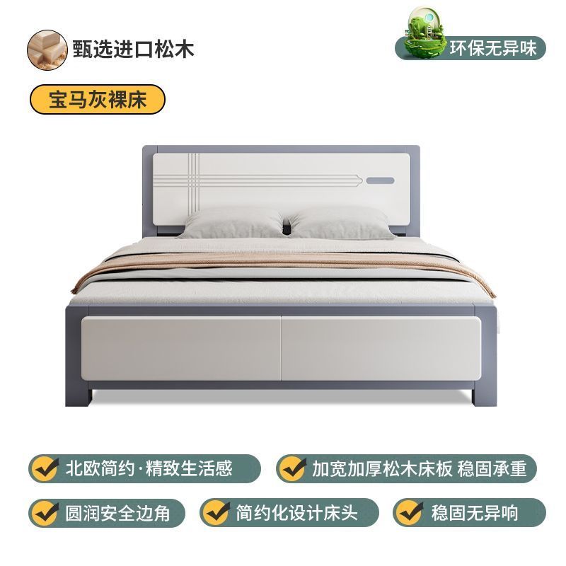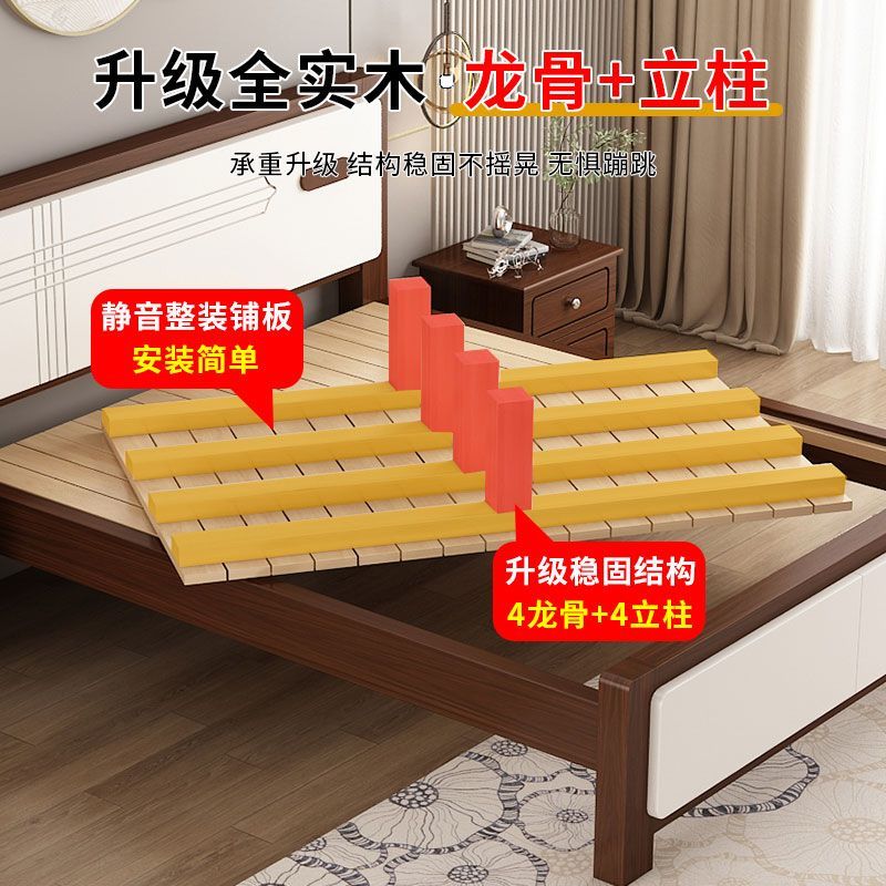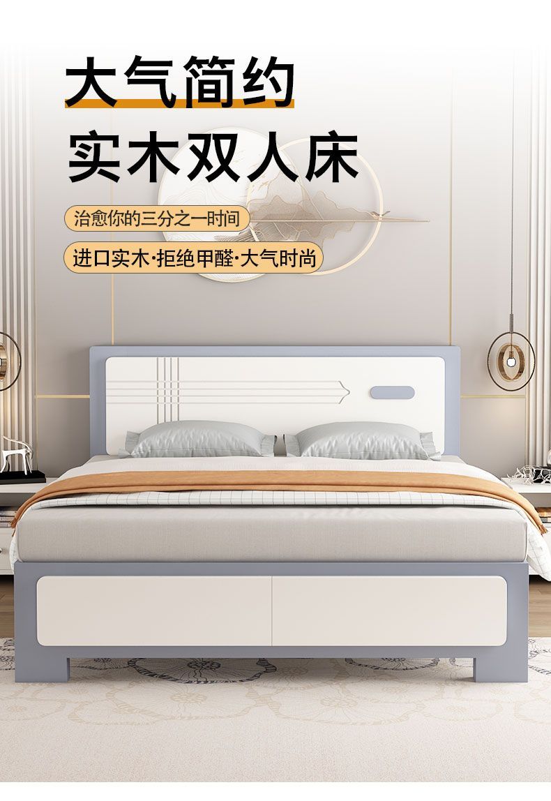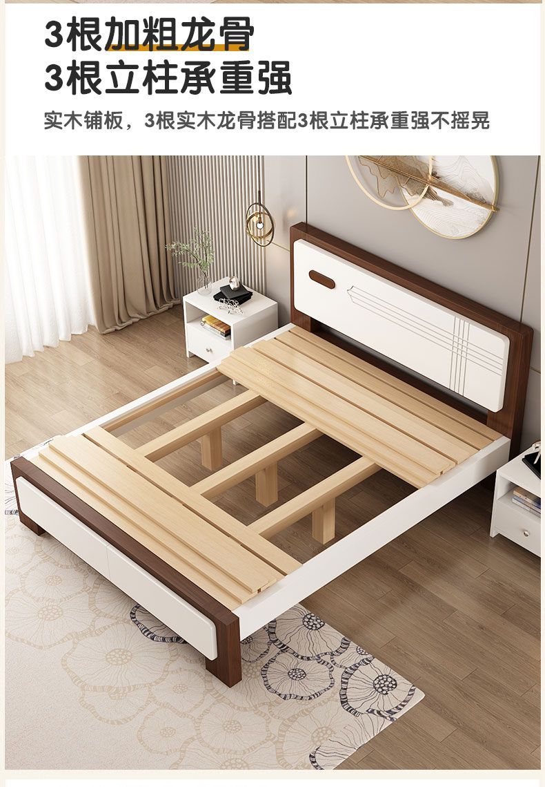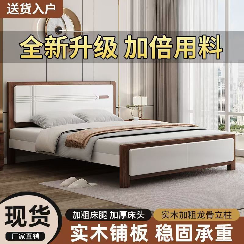 简约现代全实木床1.5米家用中式1.8米主卧双人床出租房1.2m单人床