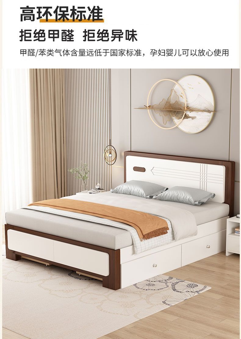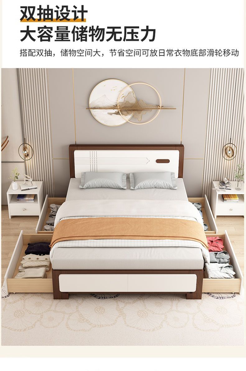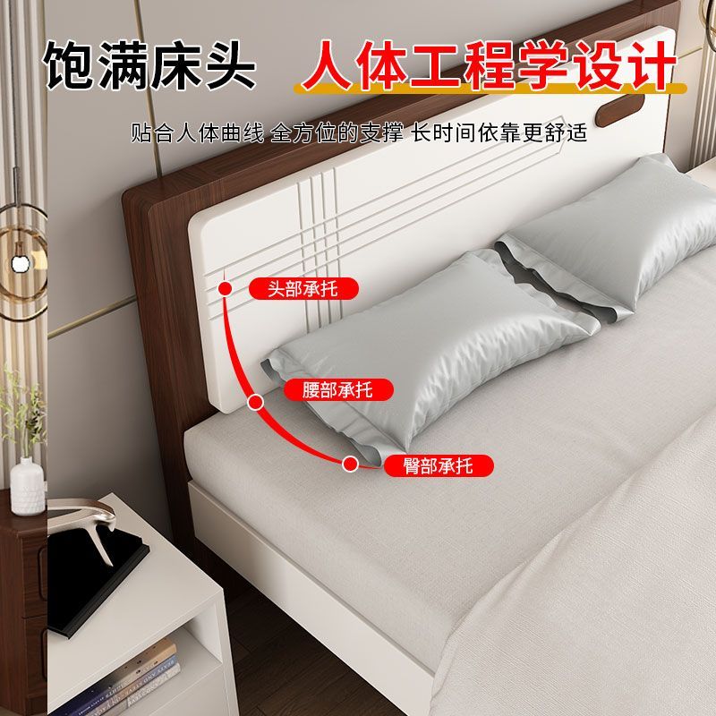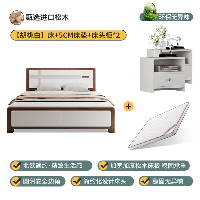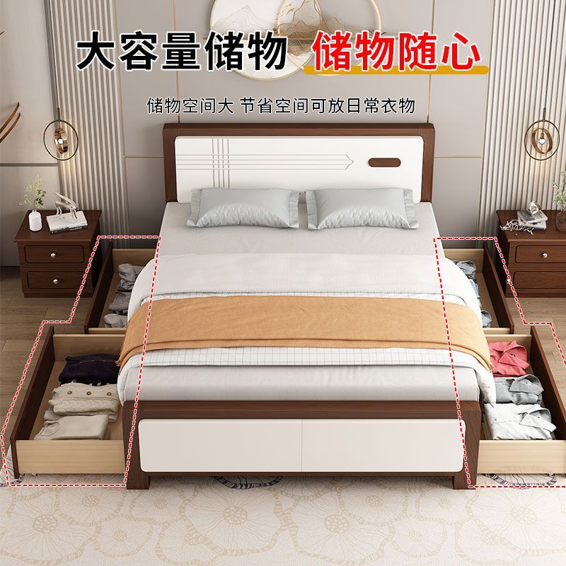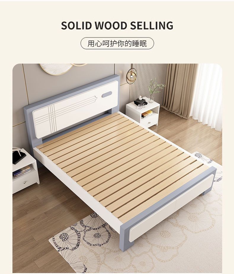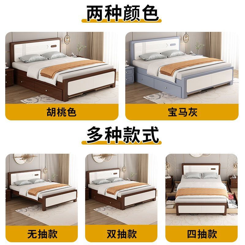 简约现代全实木床1.5米家用中式1.8米主卧双人床出租房1.2m单人床