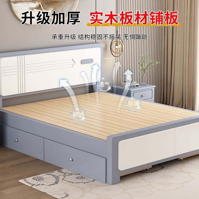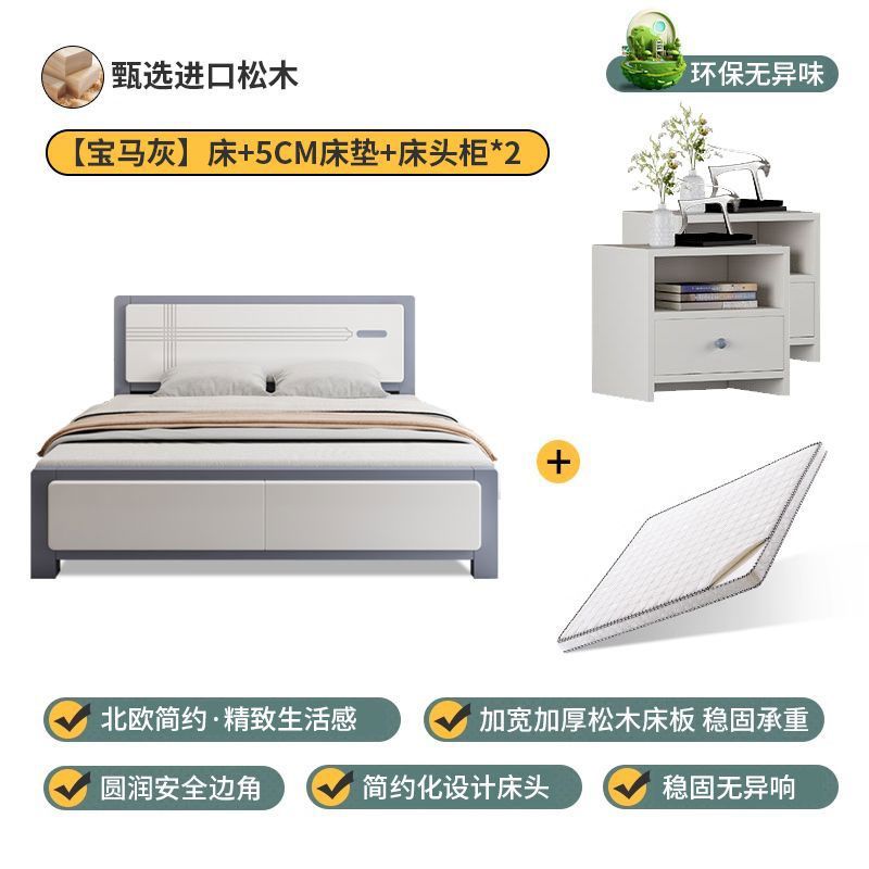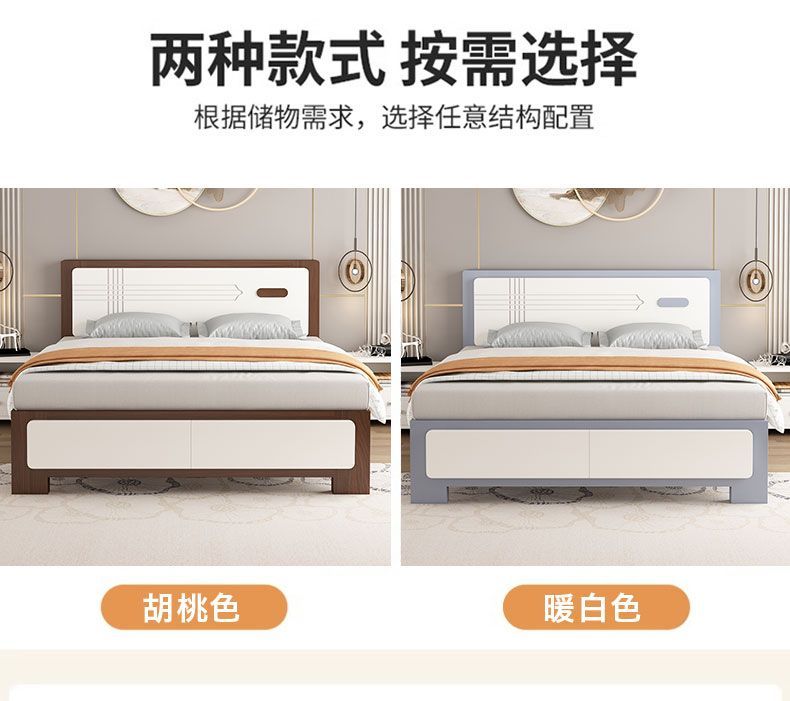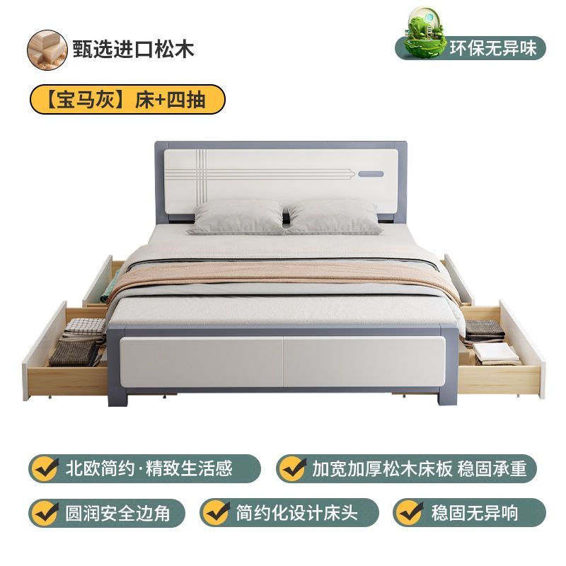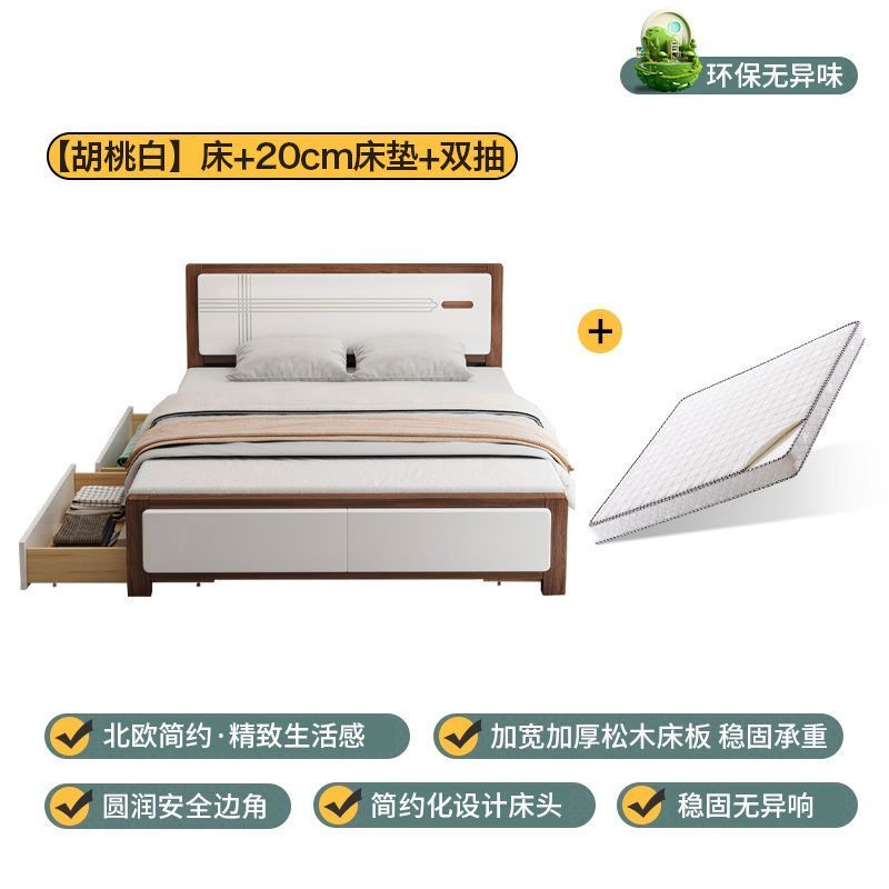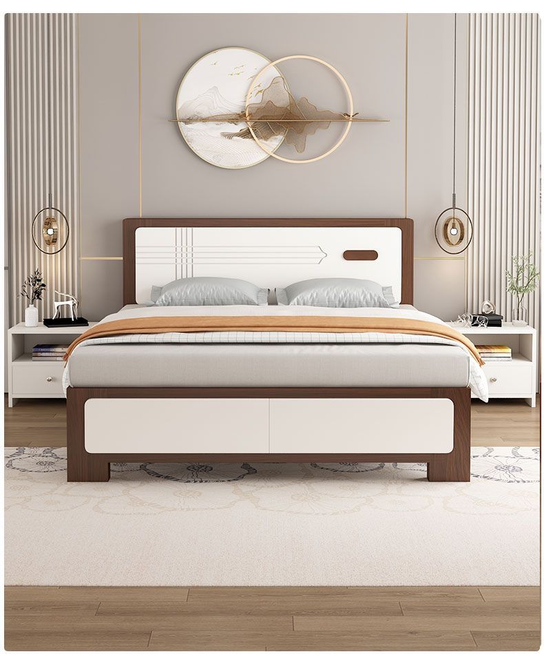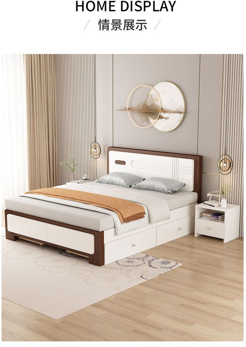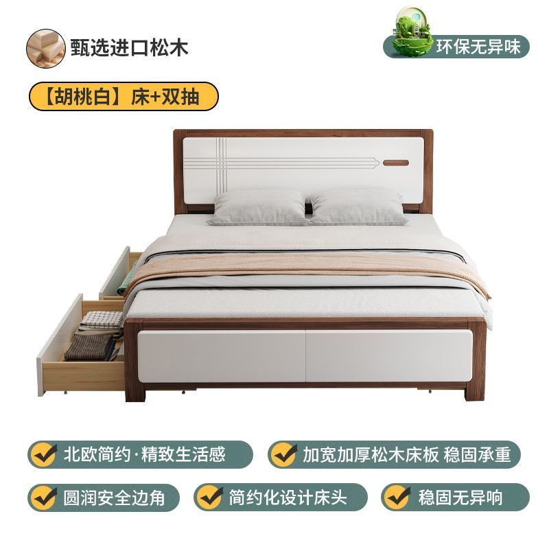 简约现代全实木床1.5米家用中式1.8米主卧双人床出租房1.2m单人床