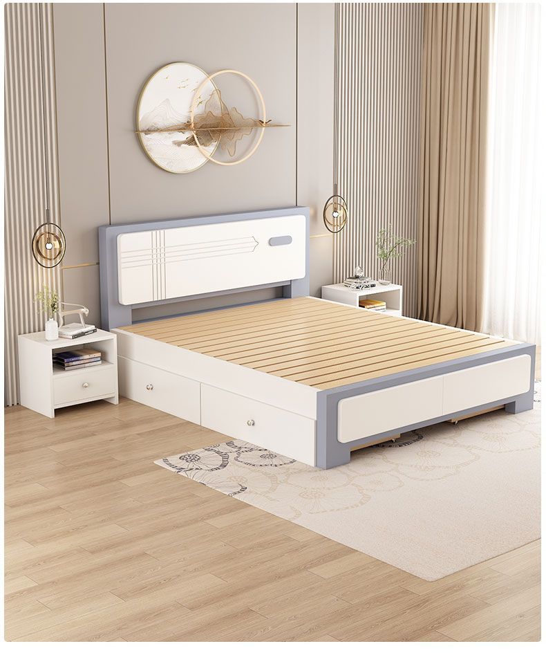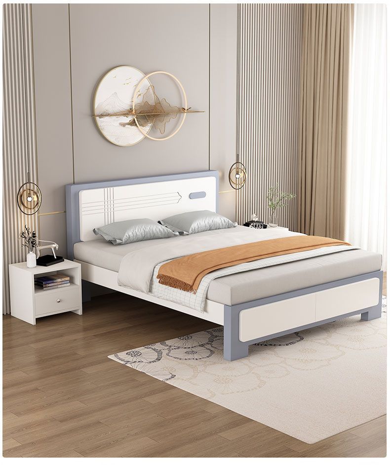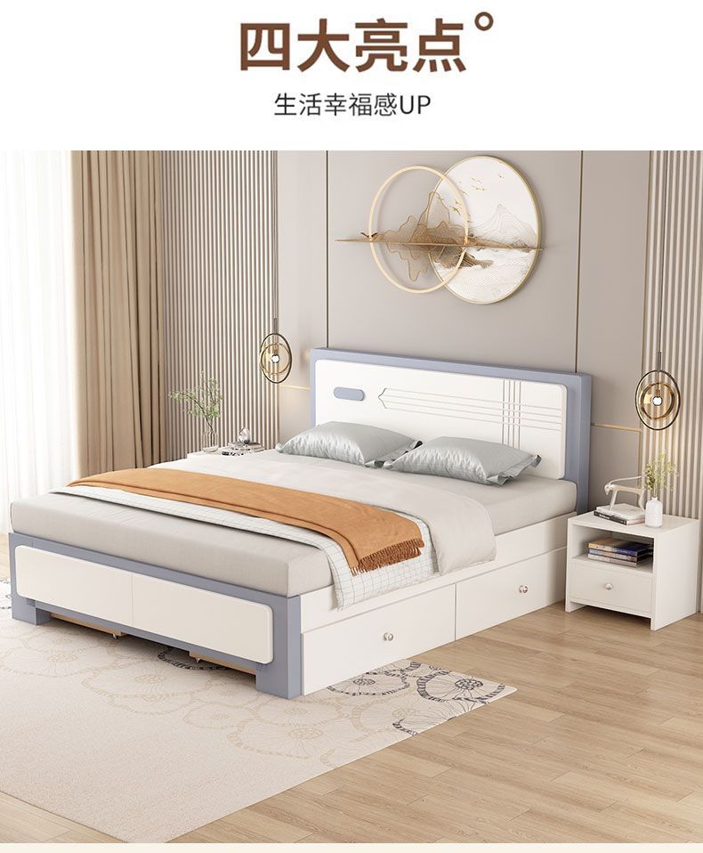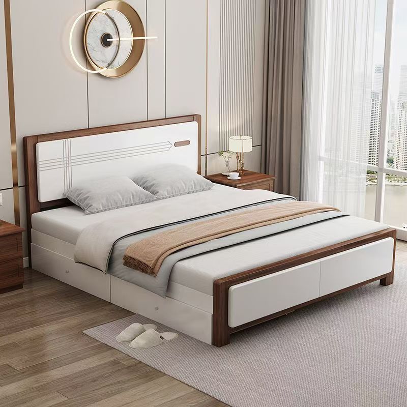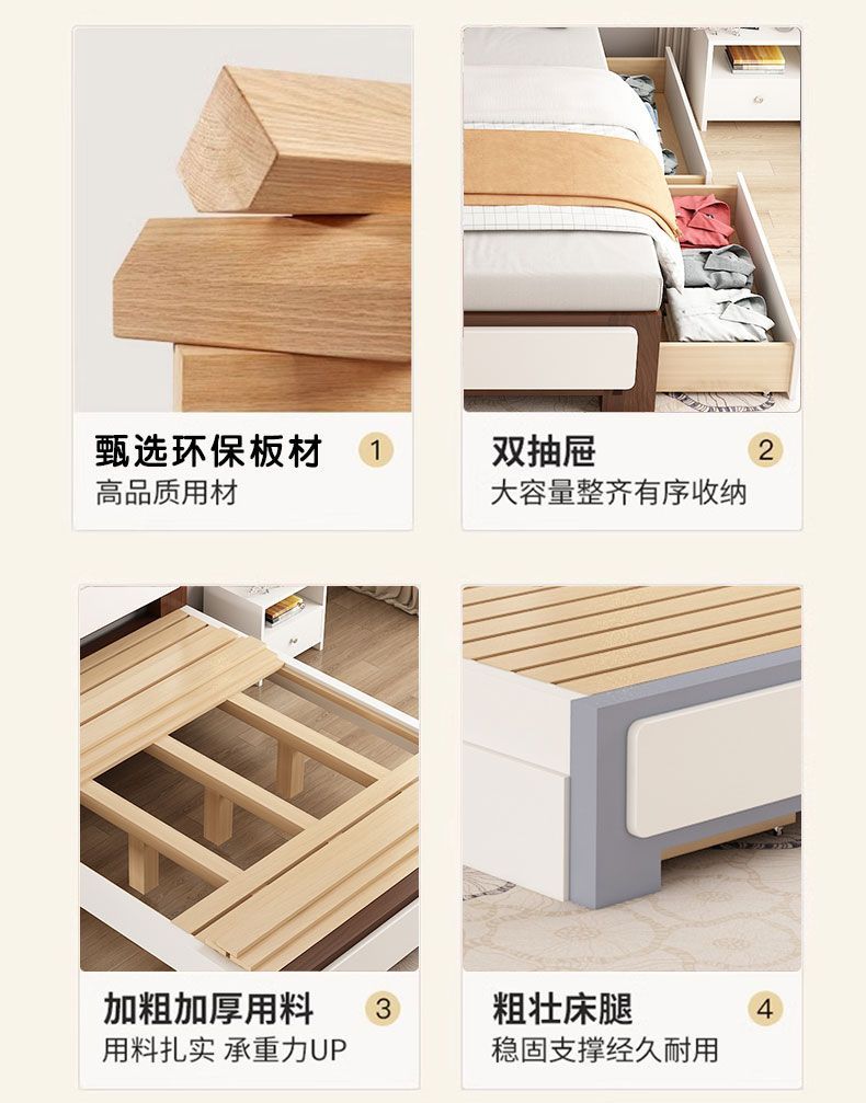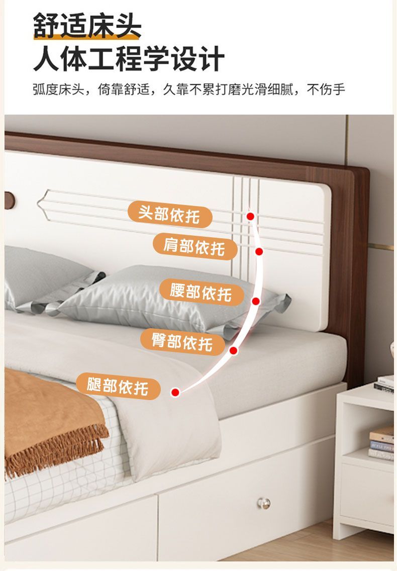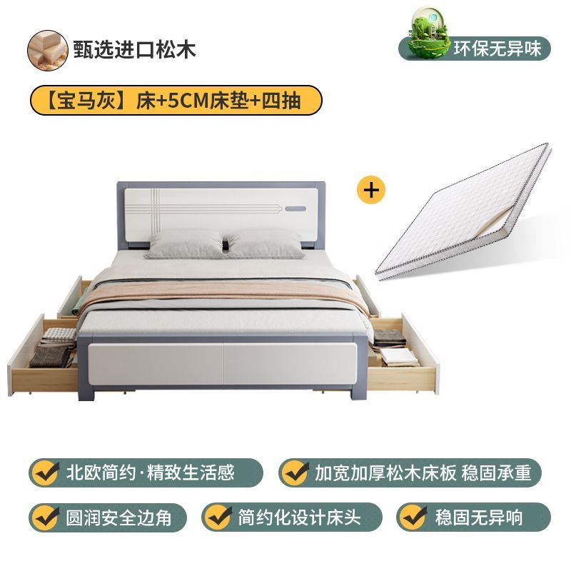 简约现代全实木床1.5米家用中式1.8米主卧双人床出租房1.2m单人床