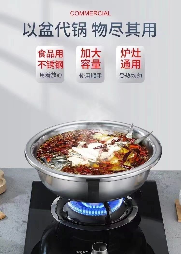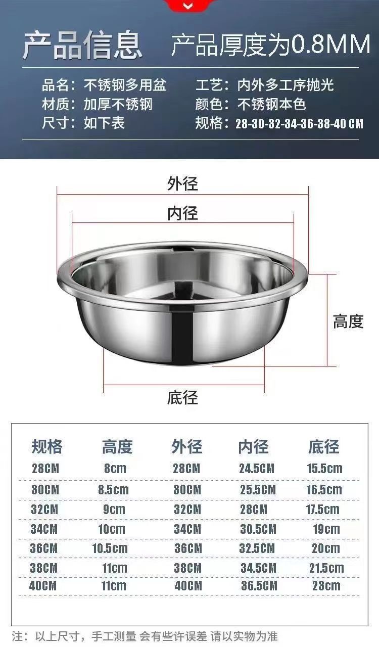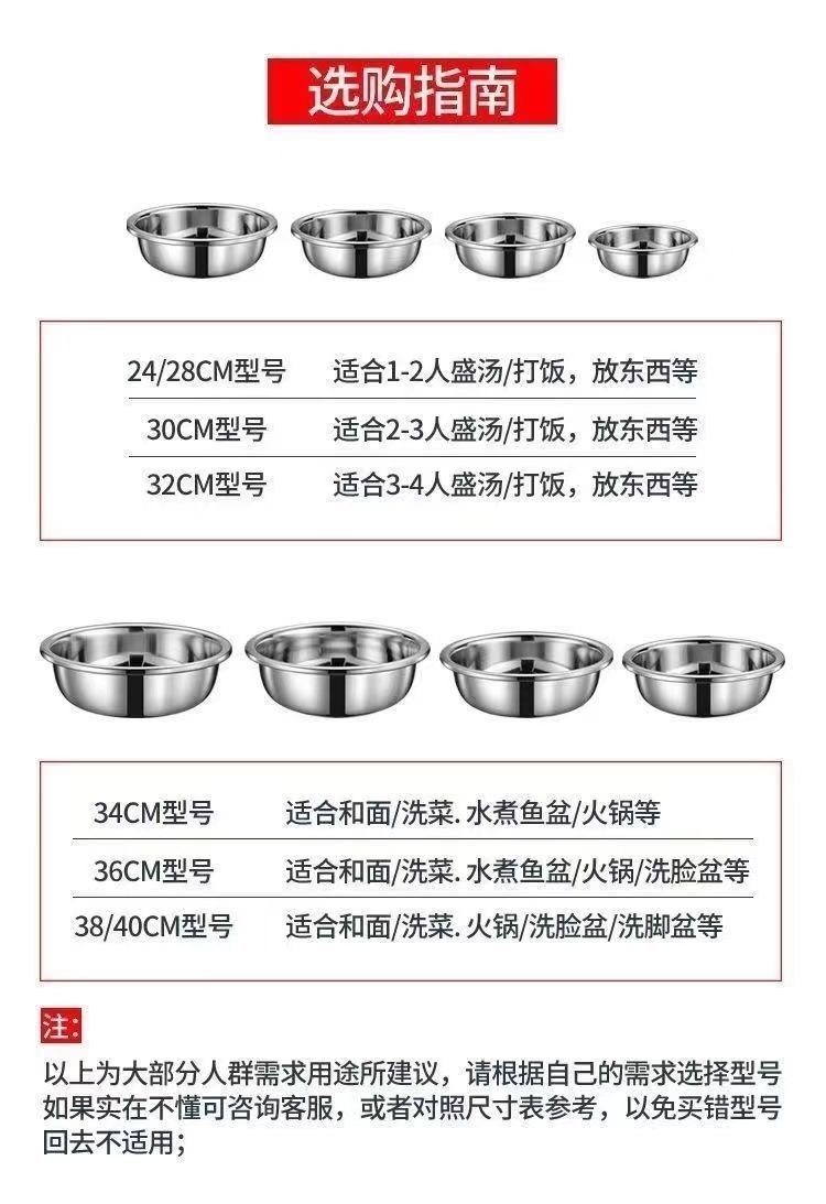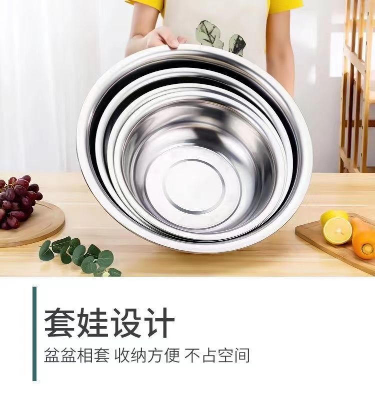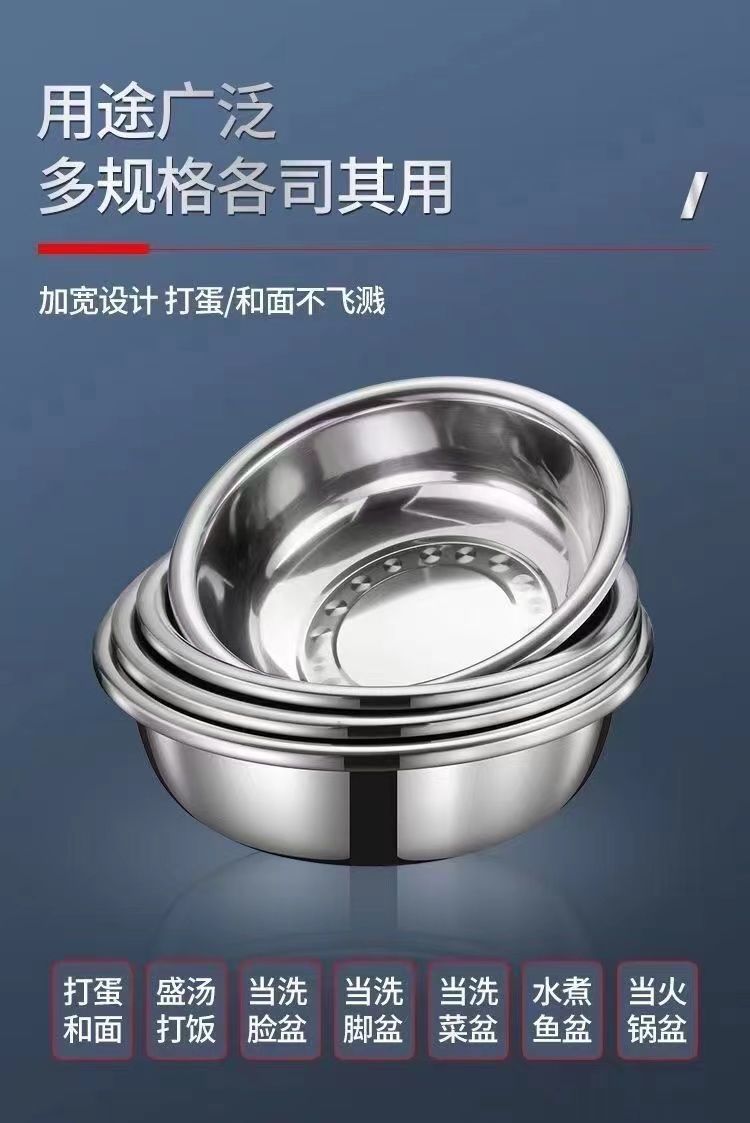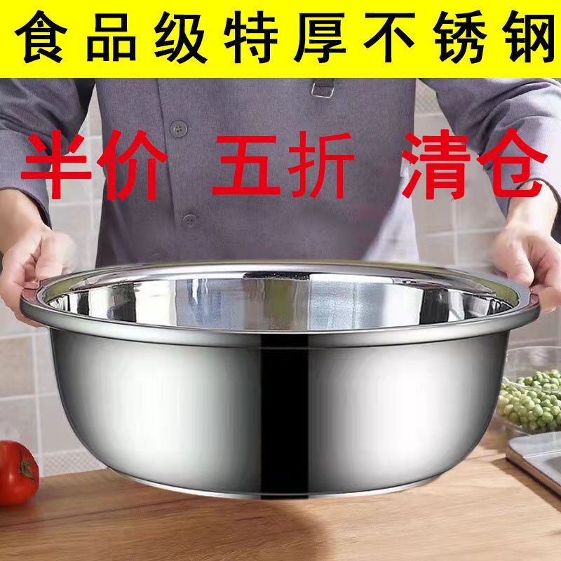 不锈钢加厚大盆多用盆圆形洗菜盆调料盆水煮鱼盆和面盆家用洗脚盆