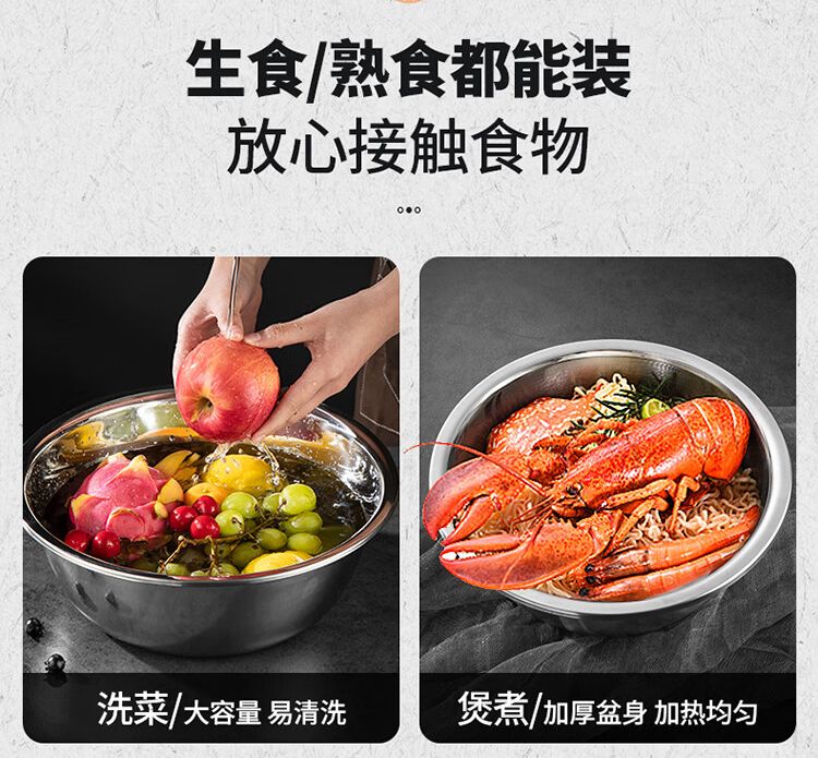 加厚不锈钢盆大号洗菜盆和面盆多用洗脸洗脚盆子家用厨房水煮鱼盆