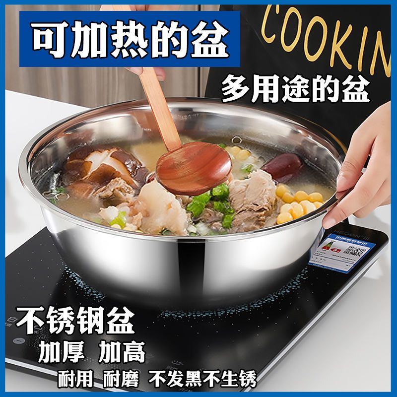 304加厚加深不锈钢洗菜盆大盆和面圆形洗脸盆水煮鱼调料盆多用盆