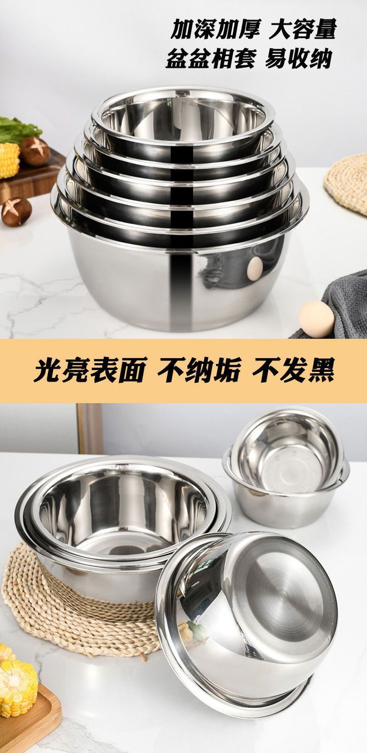 | 食品级厨房不锈钢盆30cm三个装 | USD $5.49 | 999999 piece available |