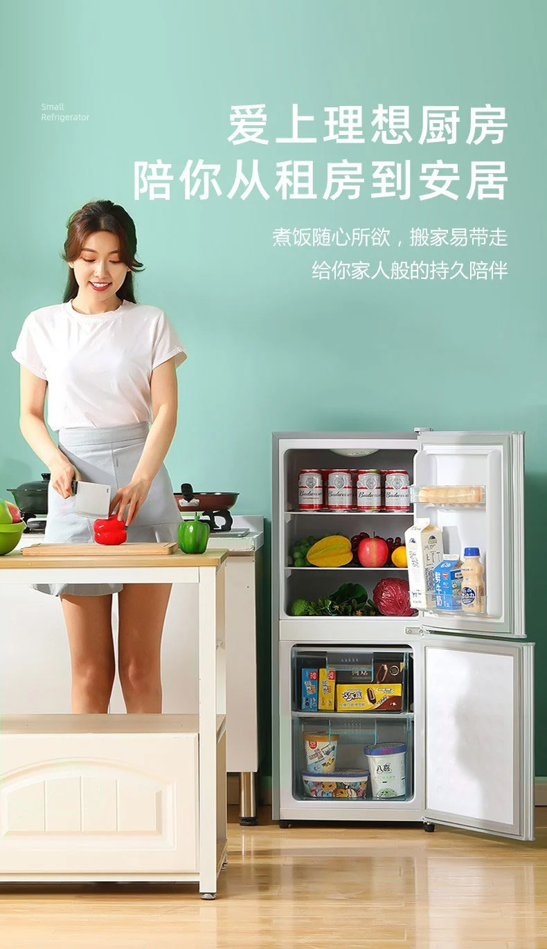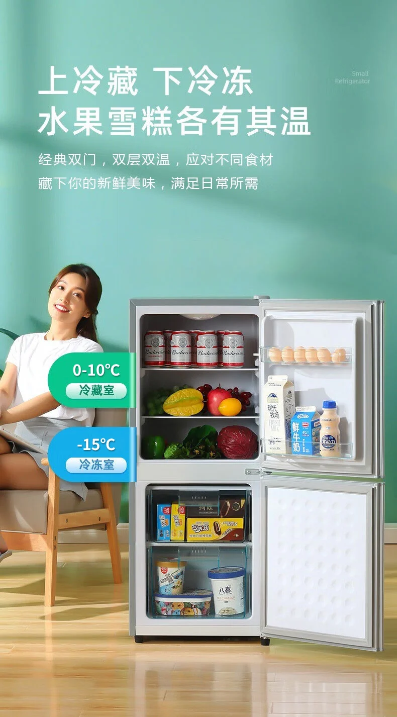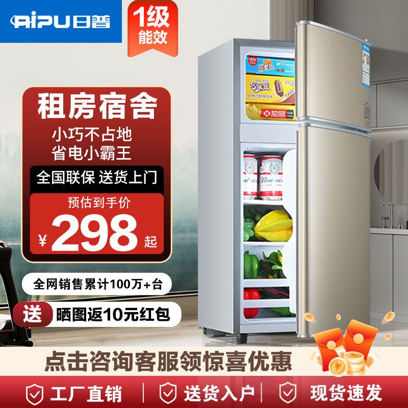 日普冰箱双门家用办公宿舍静音冷藏冷冻节能冰箱小型出租屋小冰箱