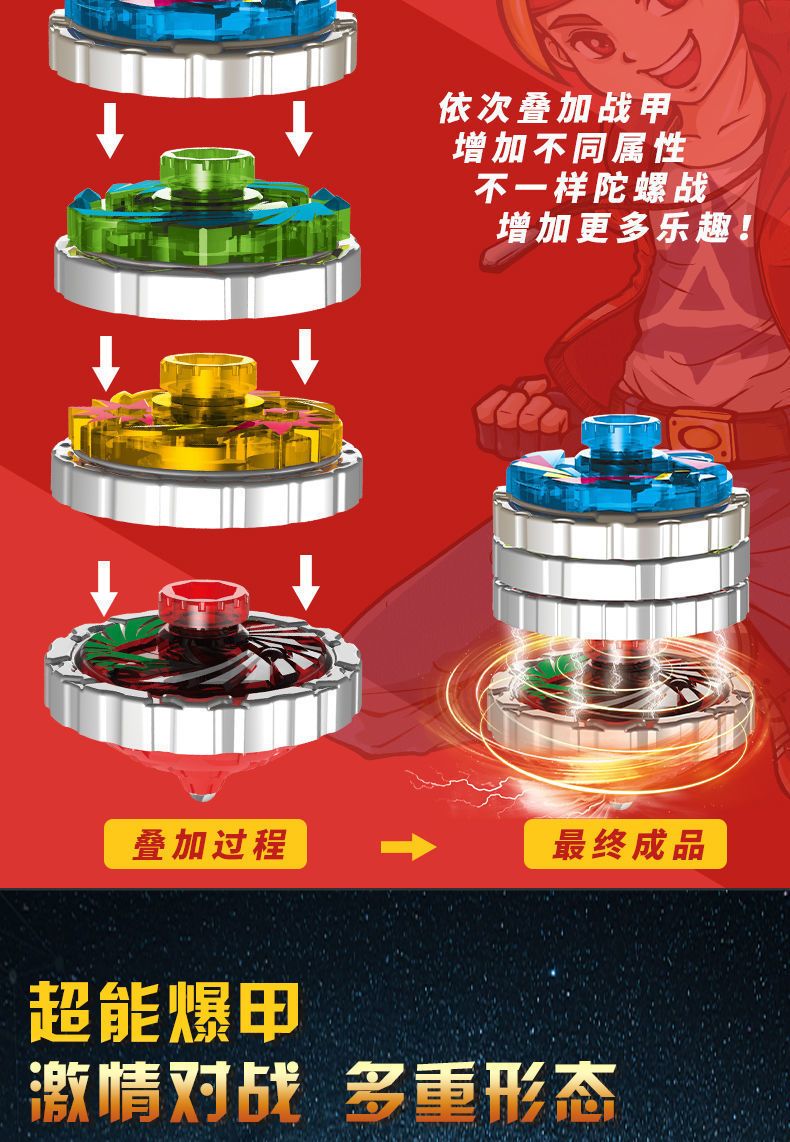 爆甲陀螺战陀2新款陀螺玩具男孩变超人战陀2合体灯光魔幻合金陀螺