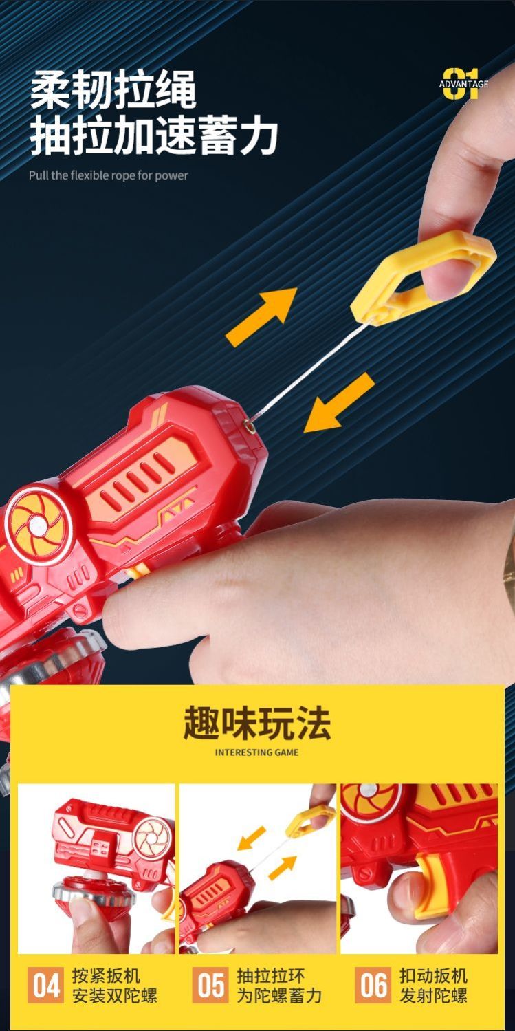 儿童拉线陀螺枪玩具合金旋转发光对战发射器战斗盘男女孩3-6-10岁