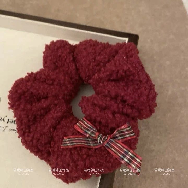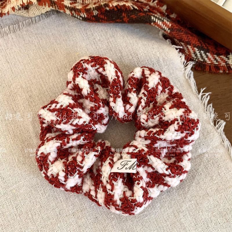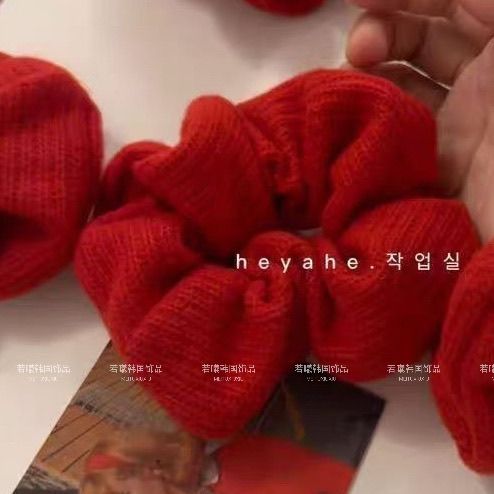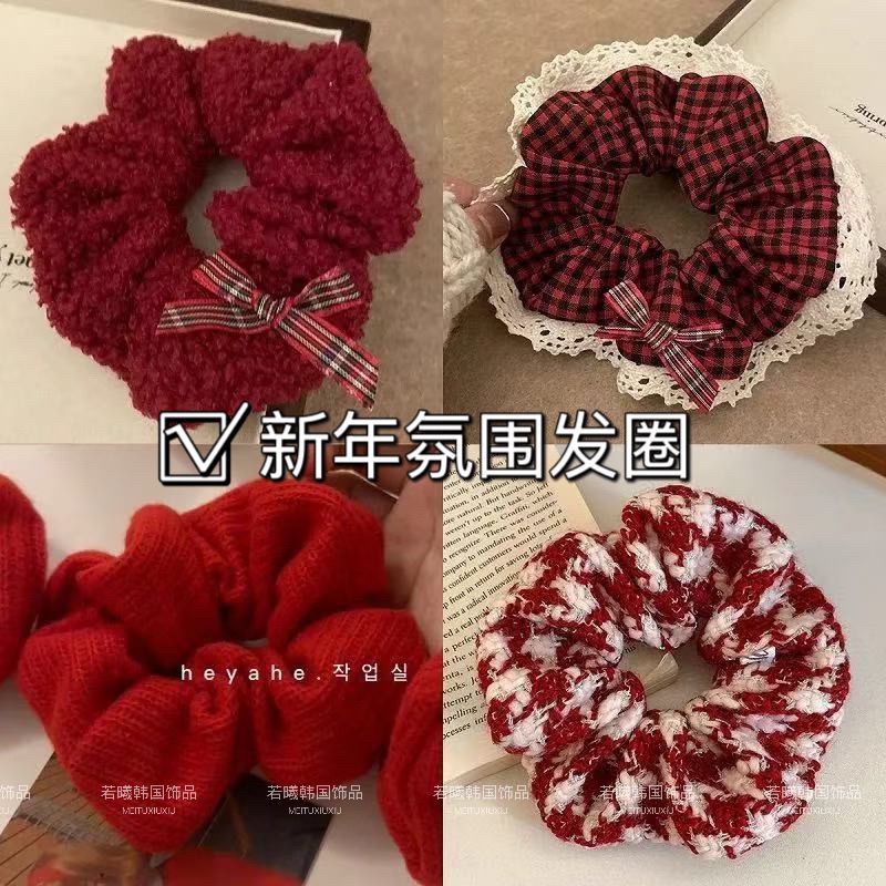 新年安可拉红气氛韩国ins红色毛线条纹大肠圈秋冬猪大肠红色发圈