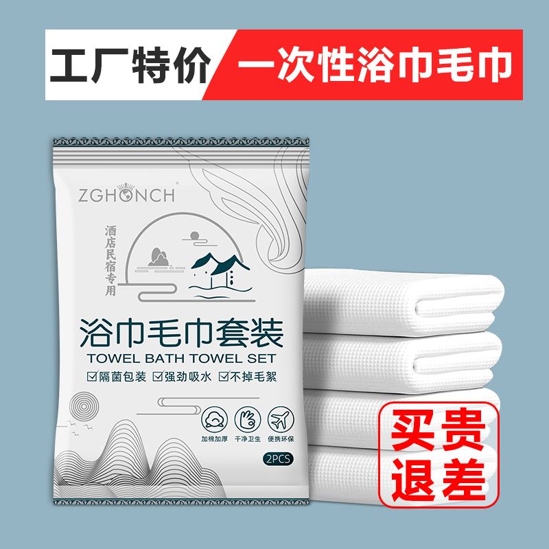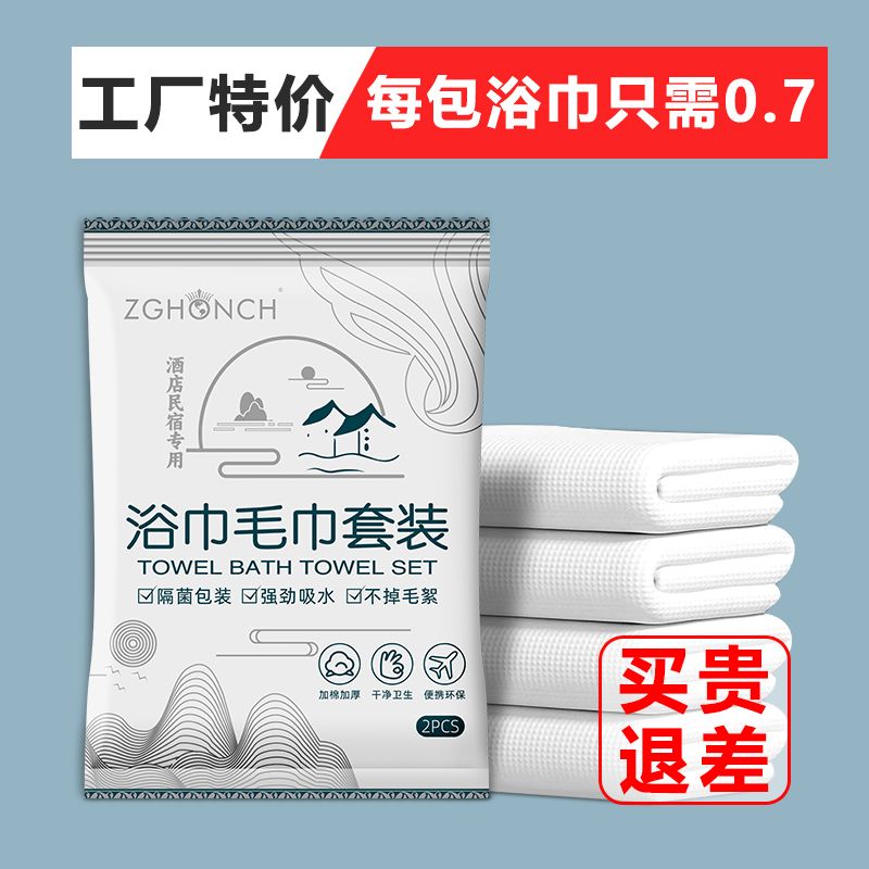 一次性浴巾毛巾套装批发独立包装酒店民宿洗浴待客加厚吸水擦巾干