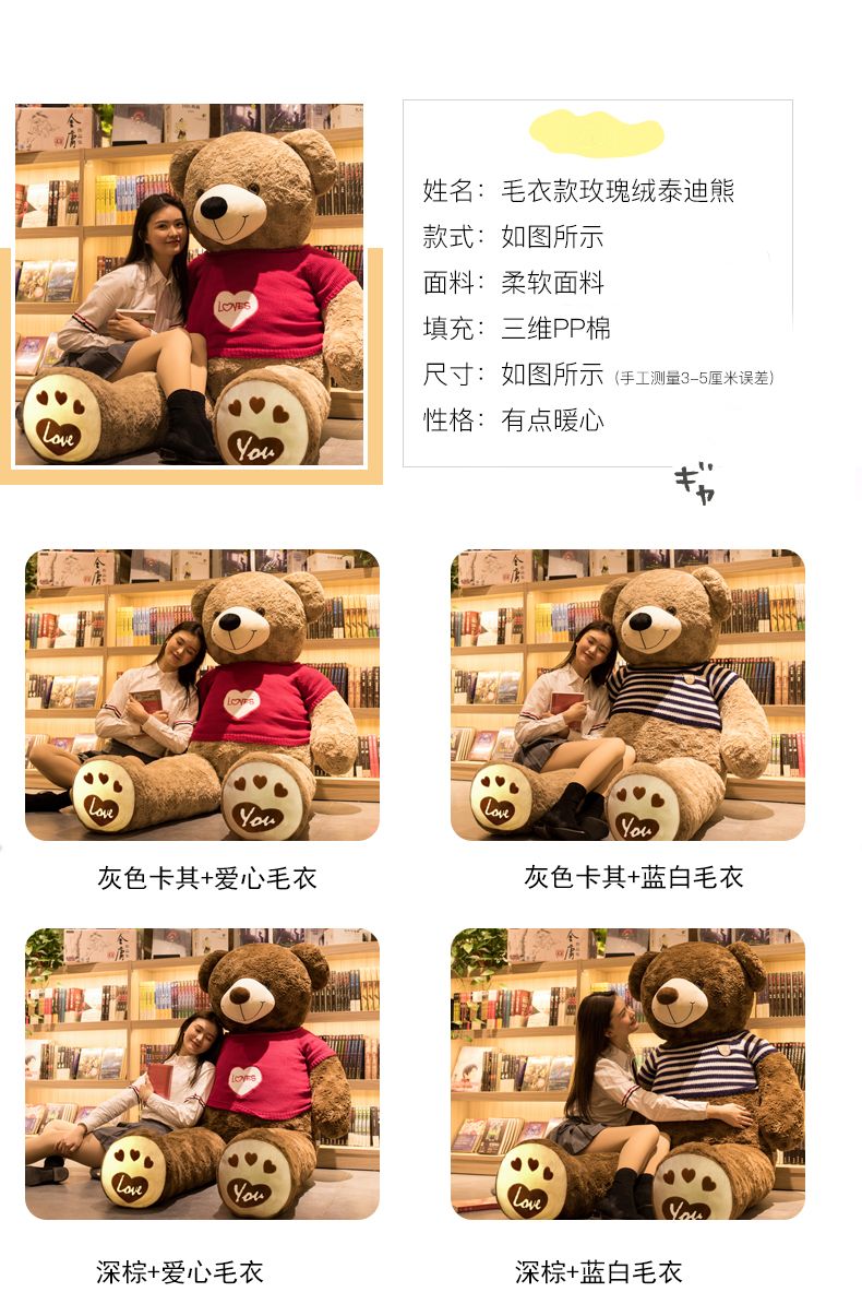 情人节礼物送女友毛绒抱抱熊泰迪熊玩偶可爱公仔毛绒玩偶睡觉抱枕