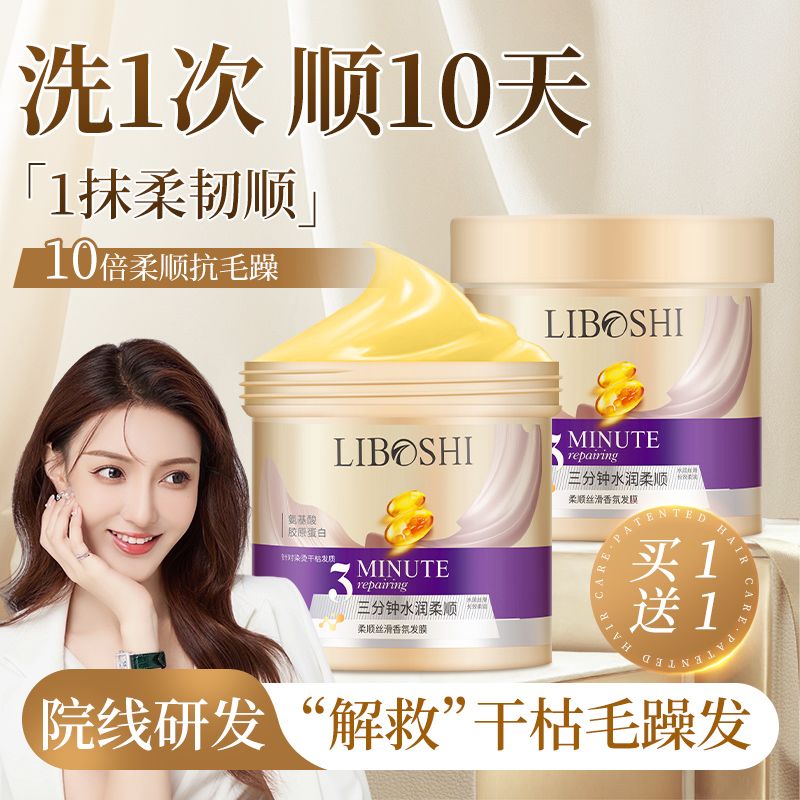 三分钟奇迹柔顺发膜免蒸修护干枯毛躁顺滑深层滋润烫染受损护发素