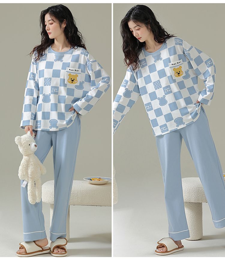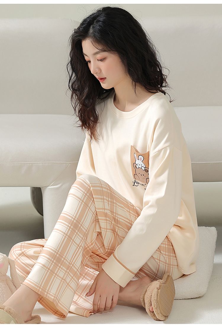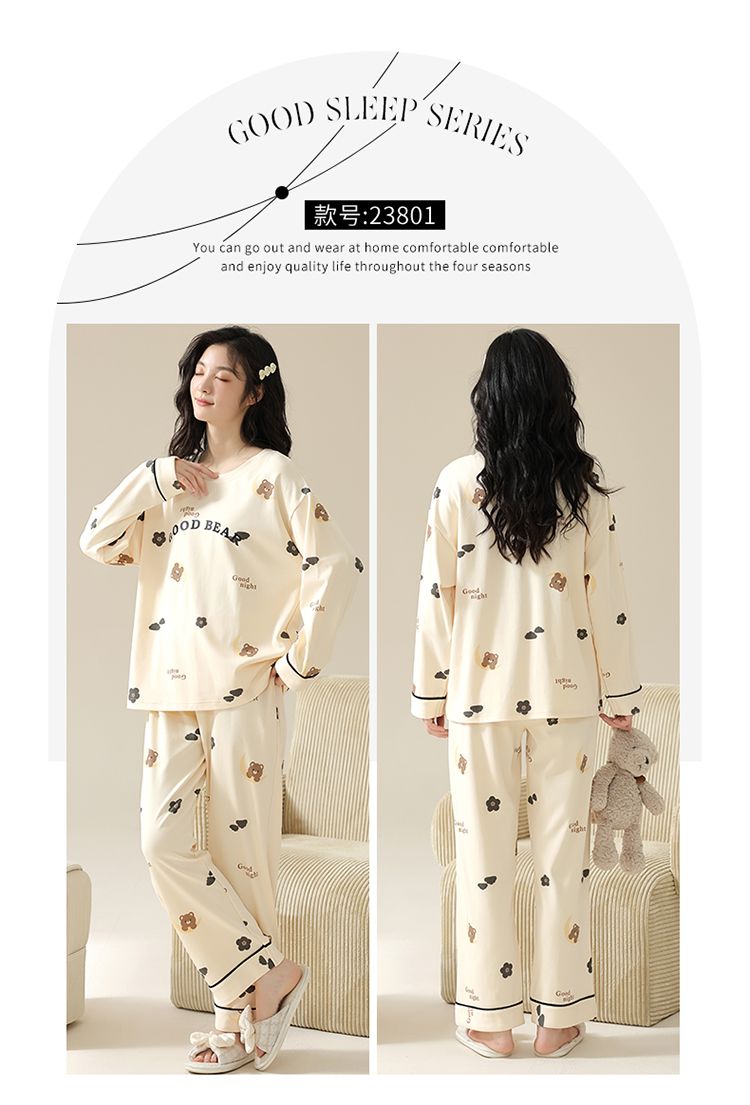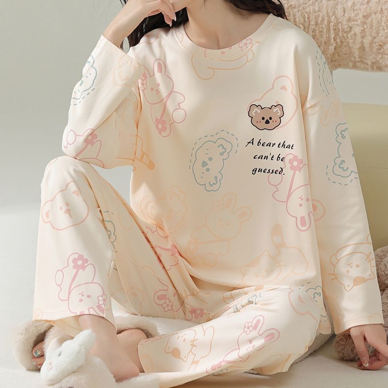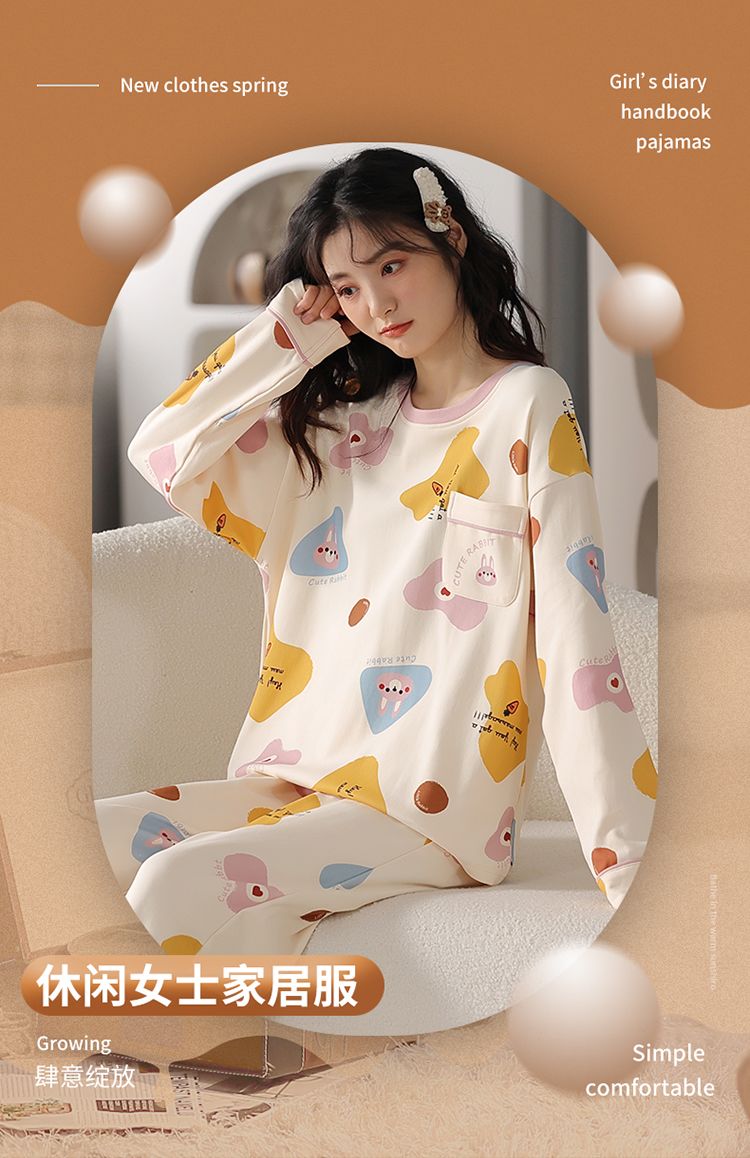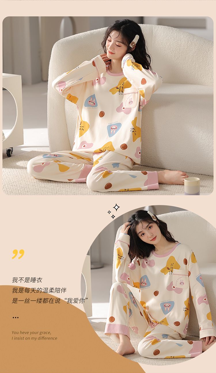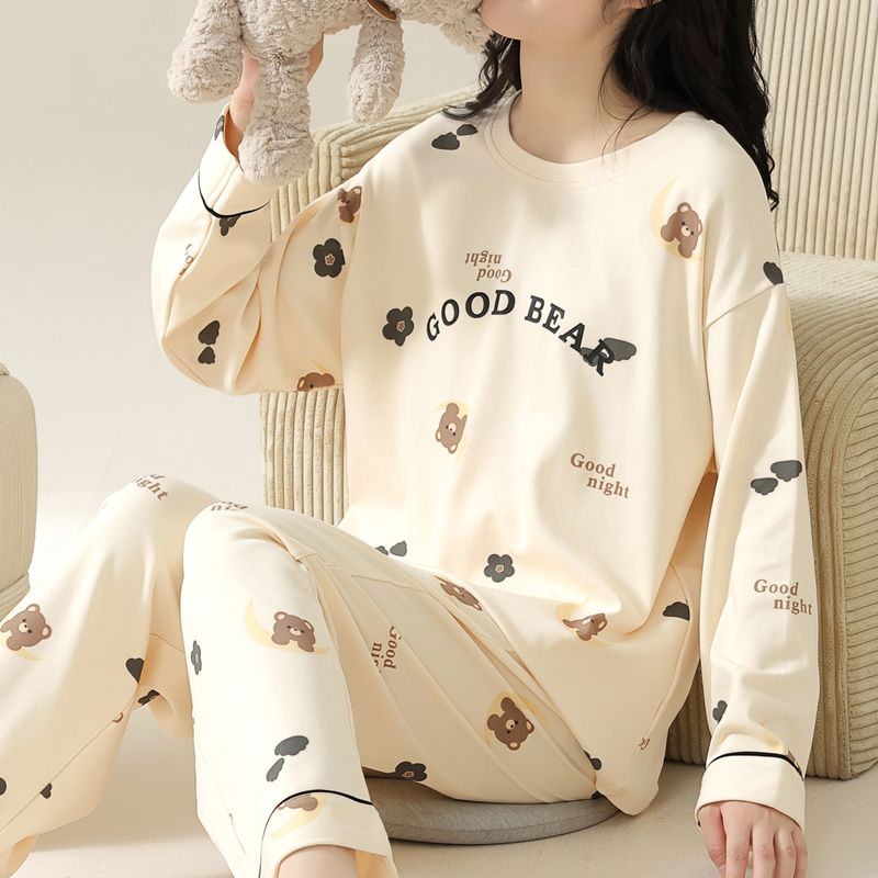 100%纯棉女士睡衣春秋季长袖长裤高档全棉学生冬天薄款家居服套装