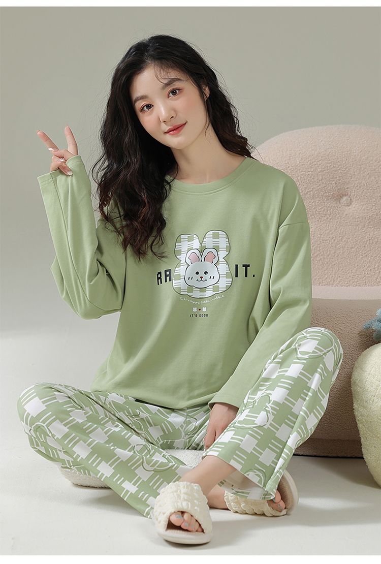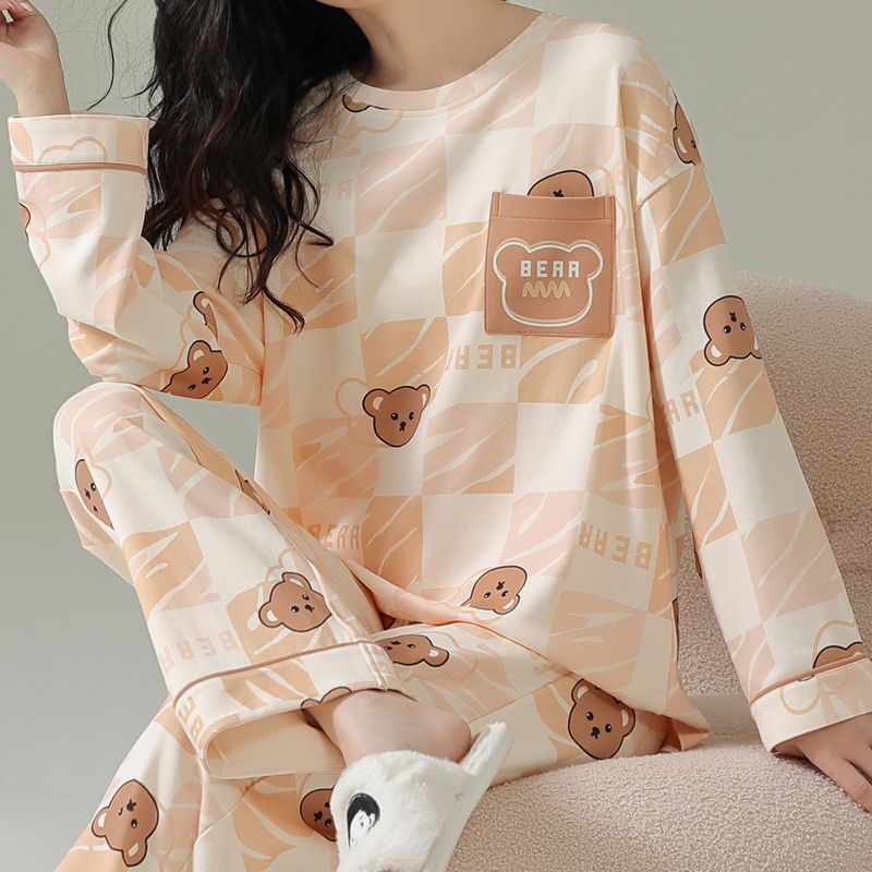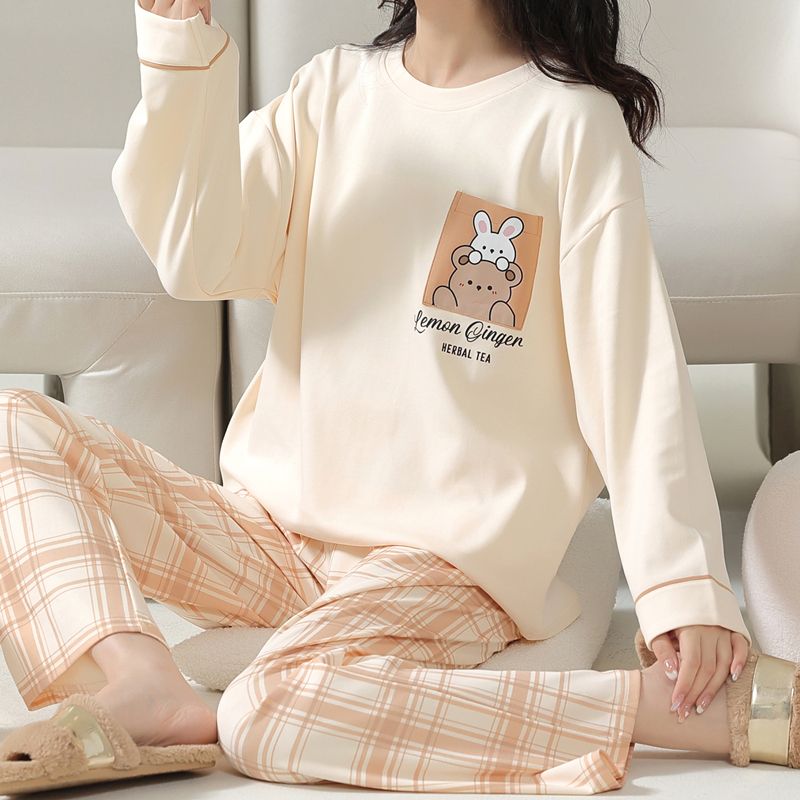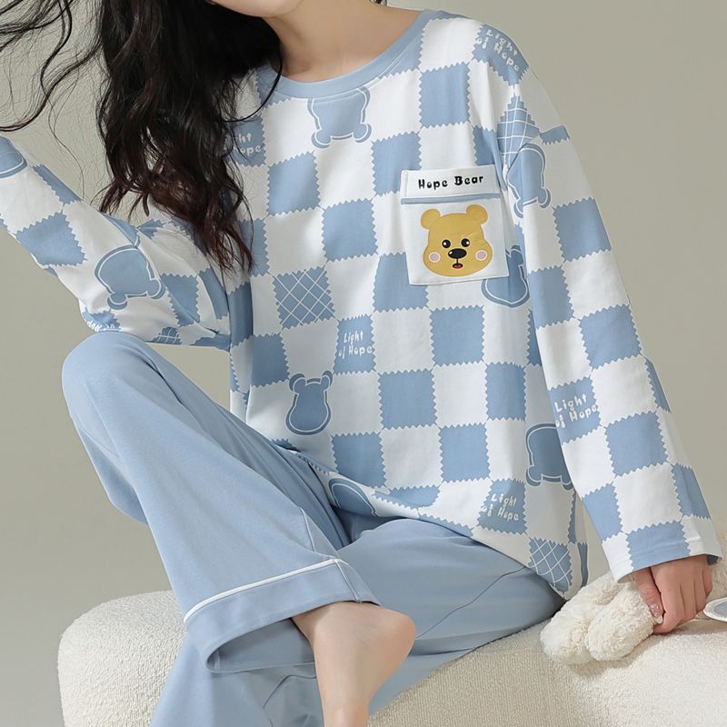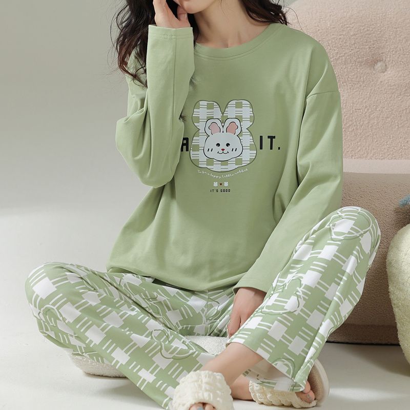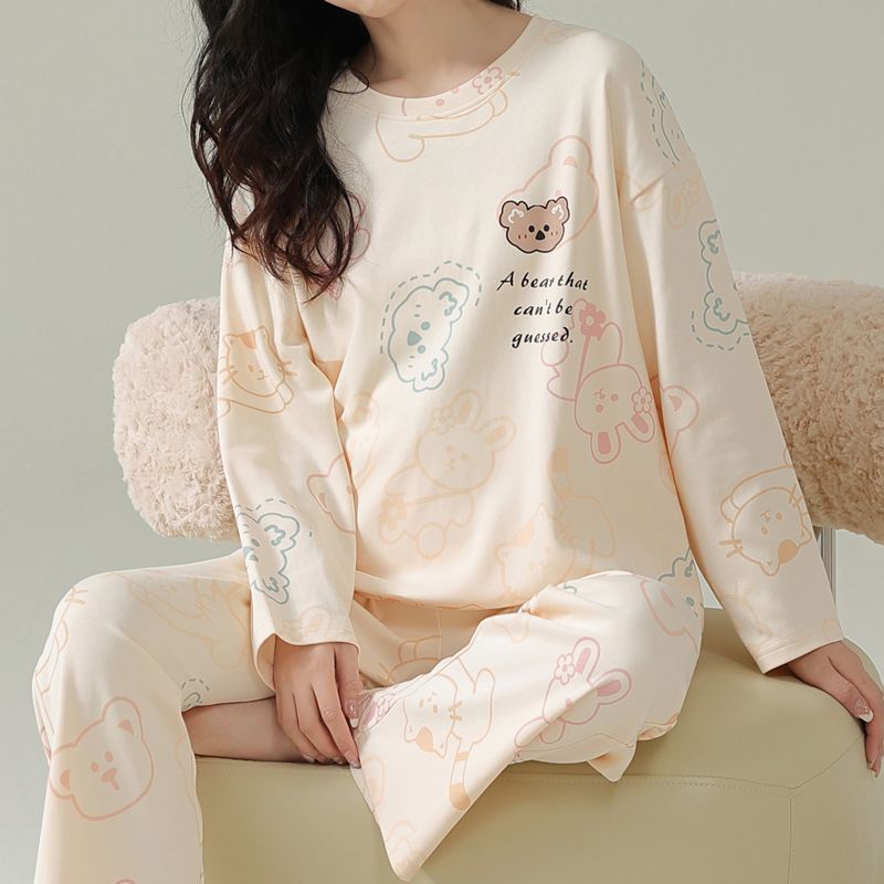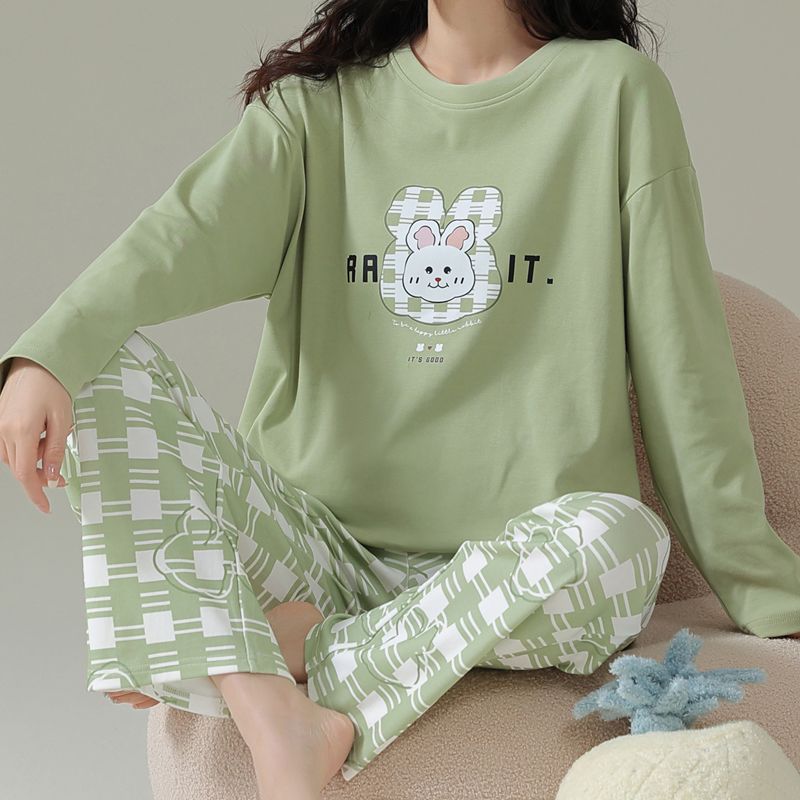 100%纯棉女士睡衣春秋季长袖长裤高档全棉学生冬天薄款家居服套装