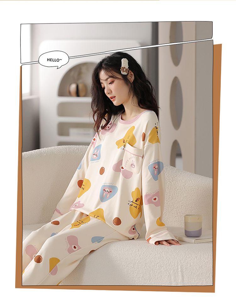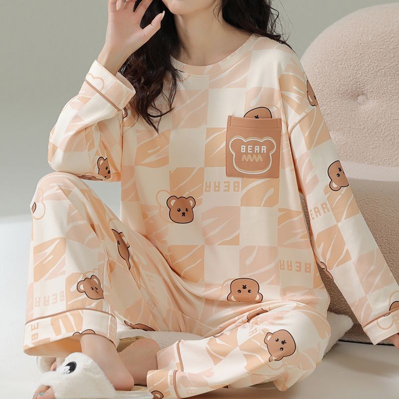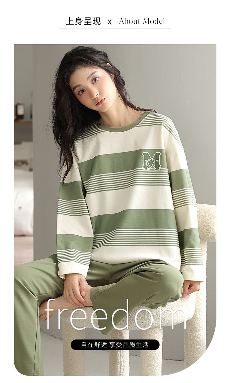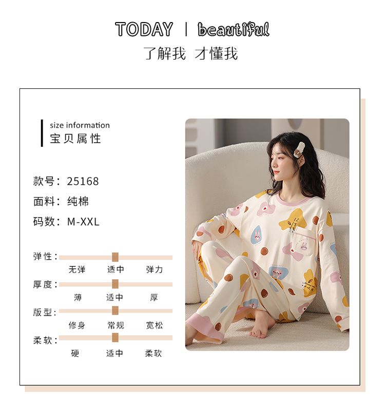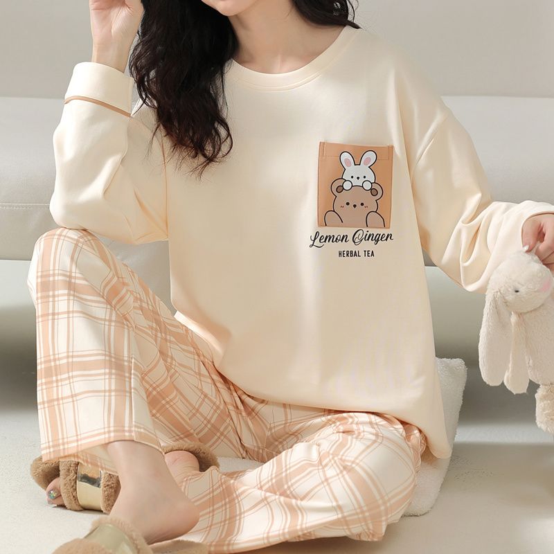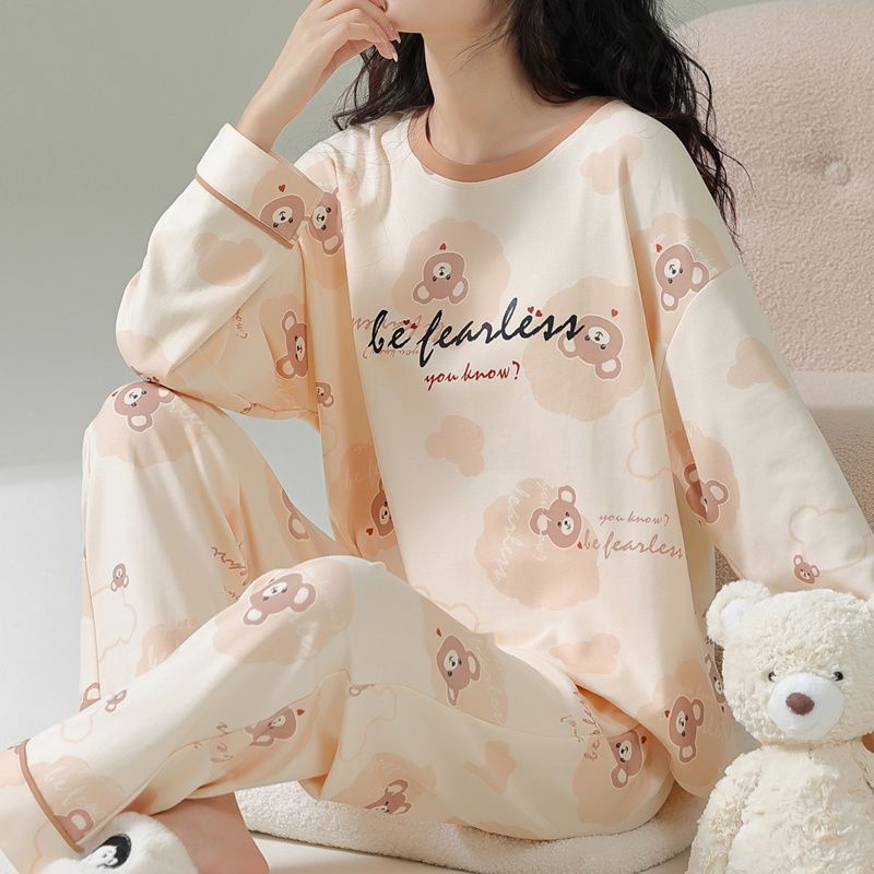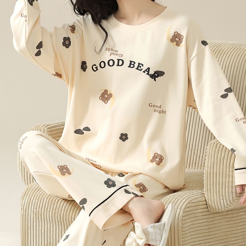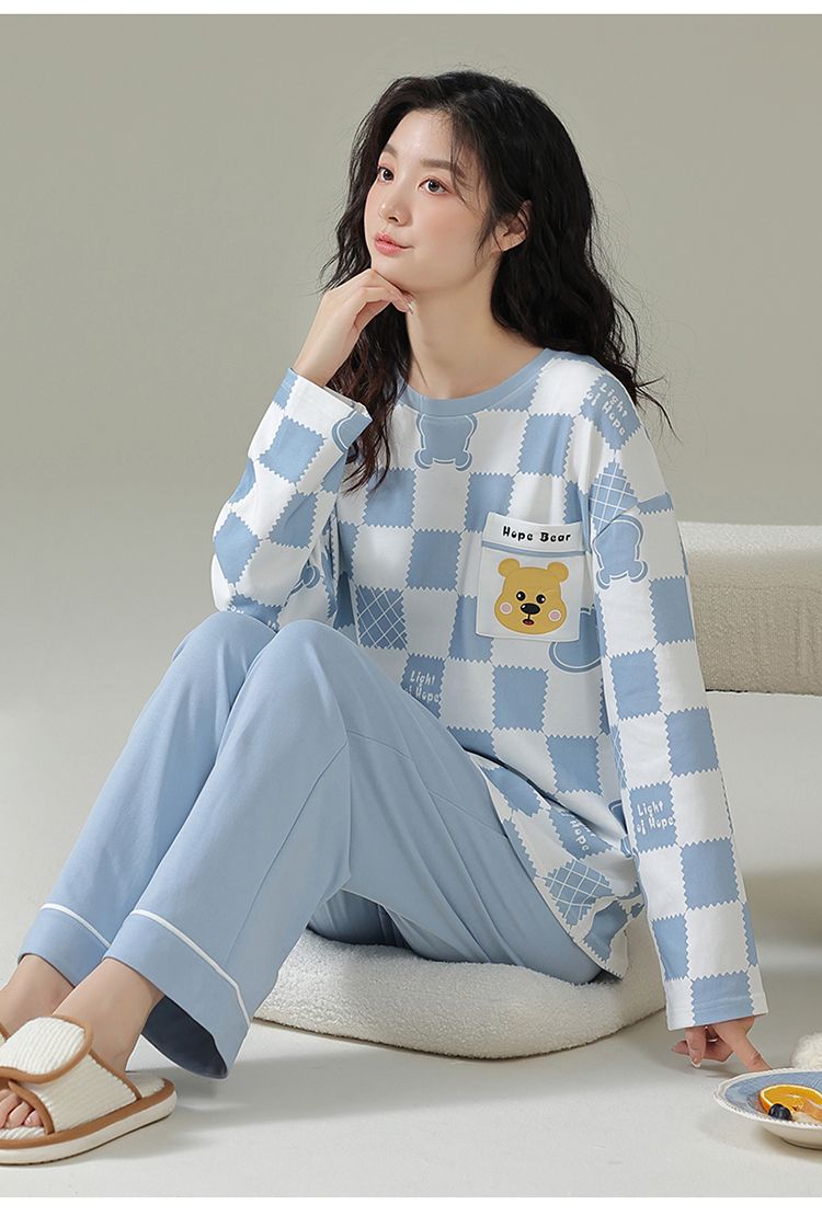 100%纯棉女士睡衣春秋季长袖长裤高档全棉学生冬天薄款家居服套装