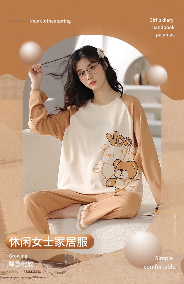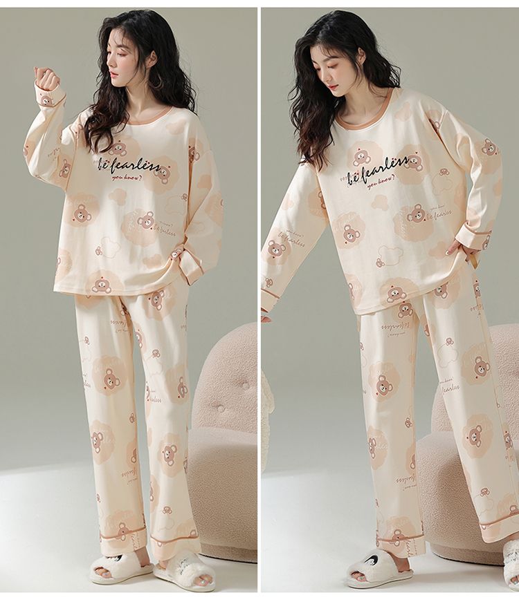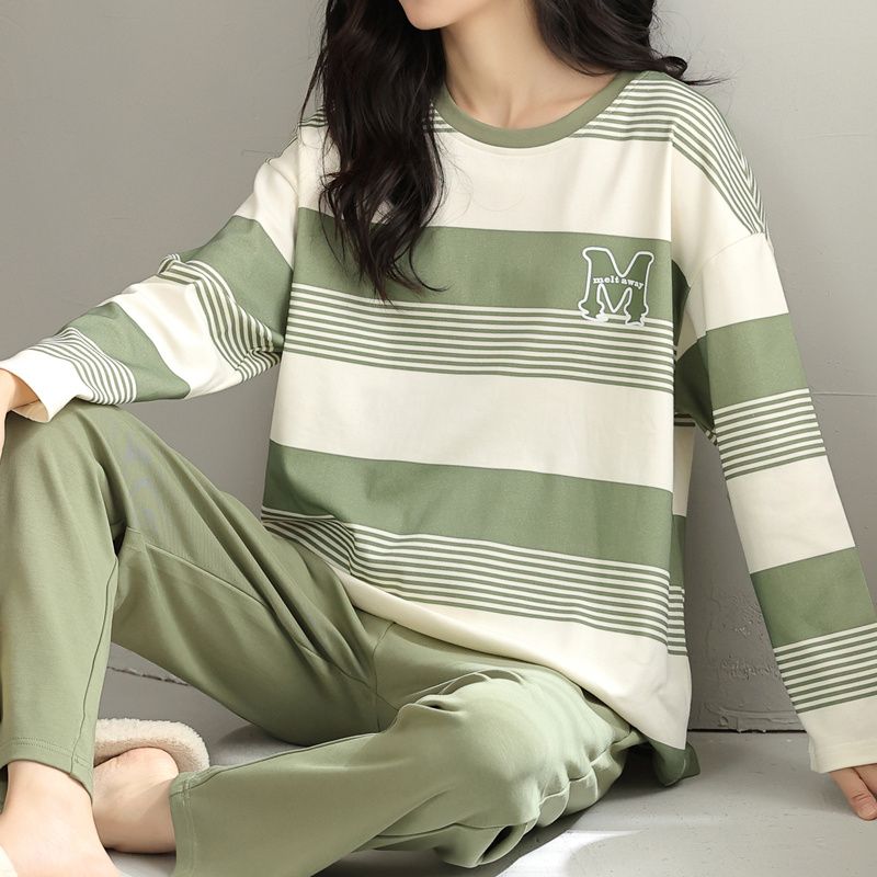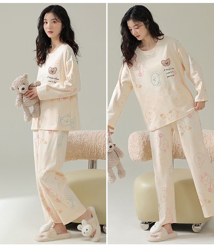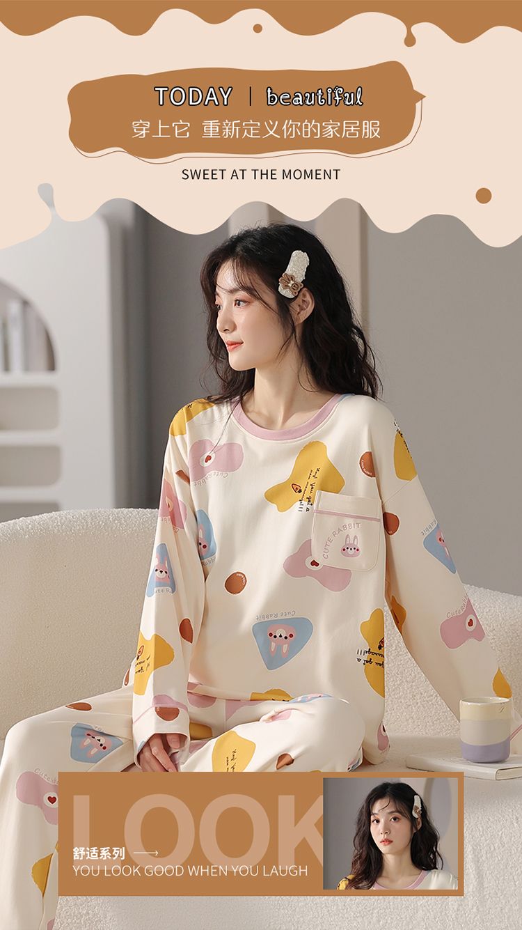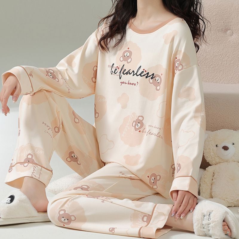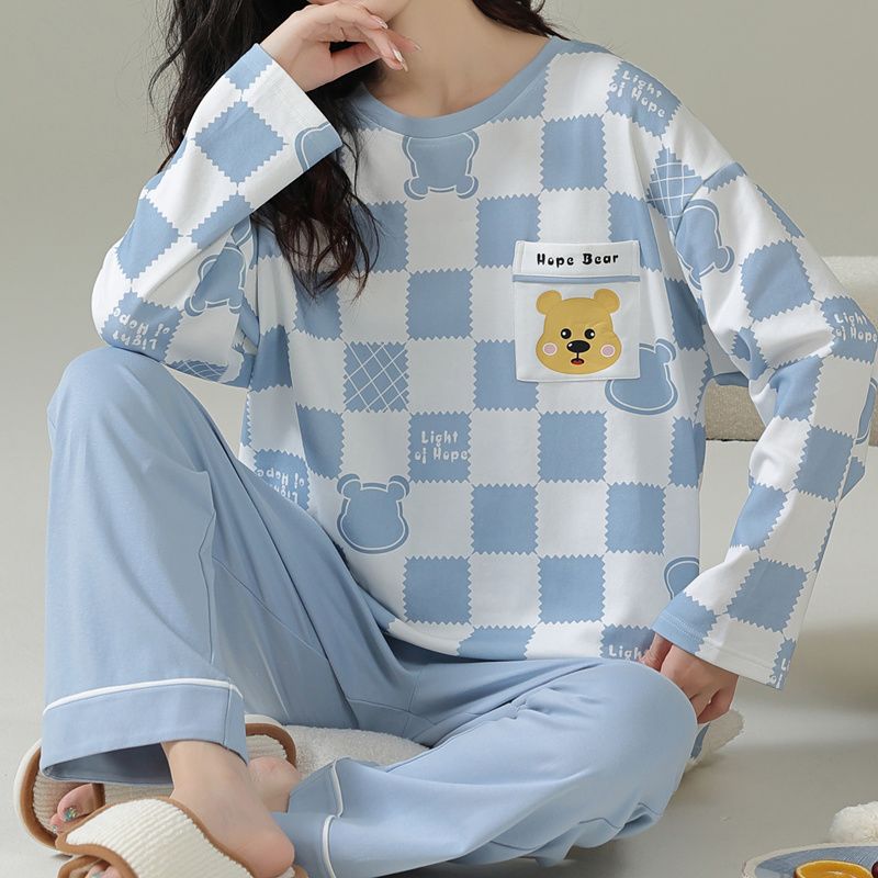 100%纯棉女士睡衣春秋季长袖长裤高档全棉学生冬天薄款家居服套装