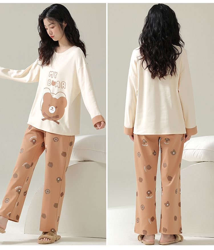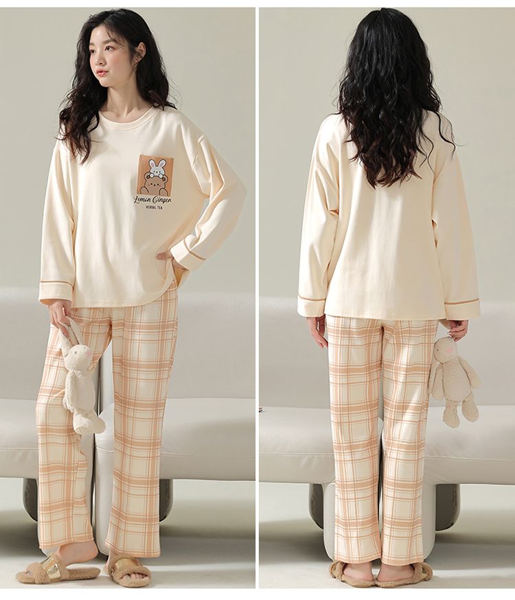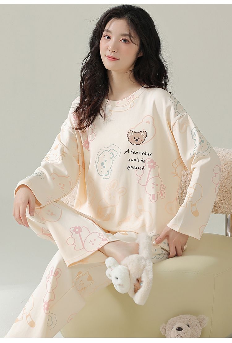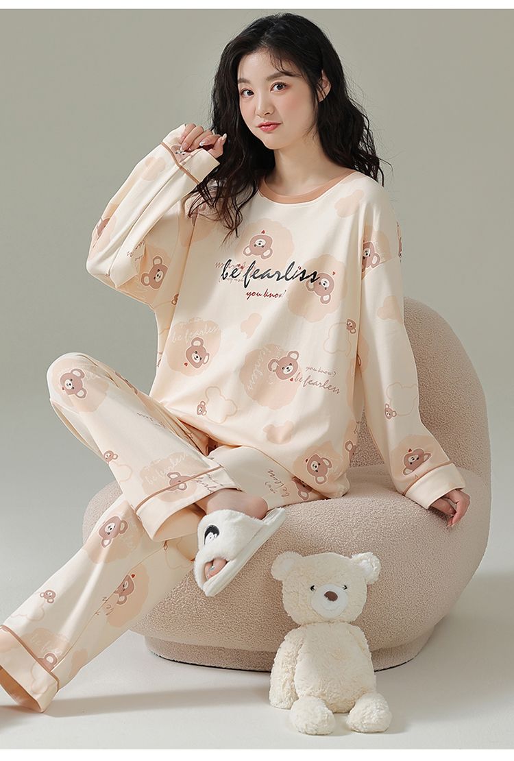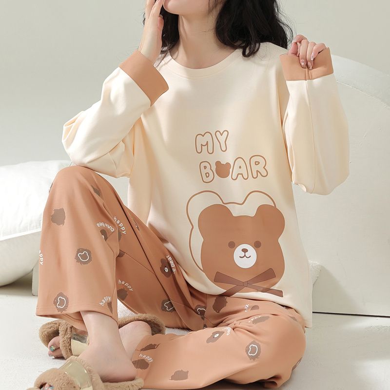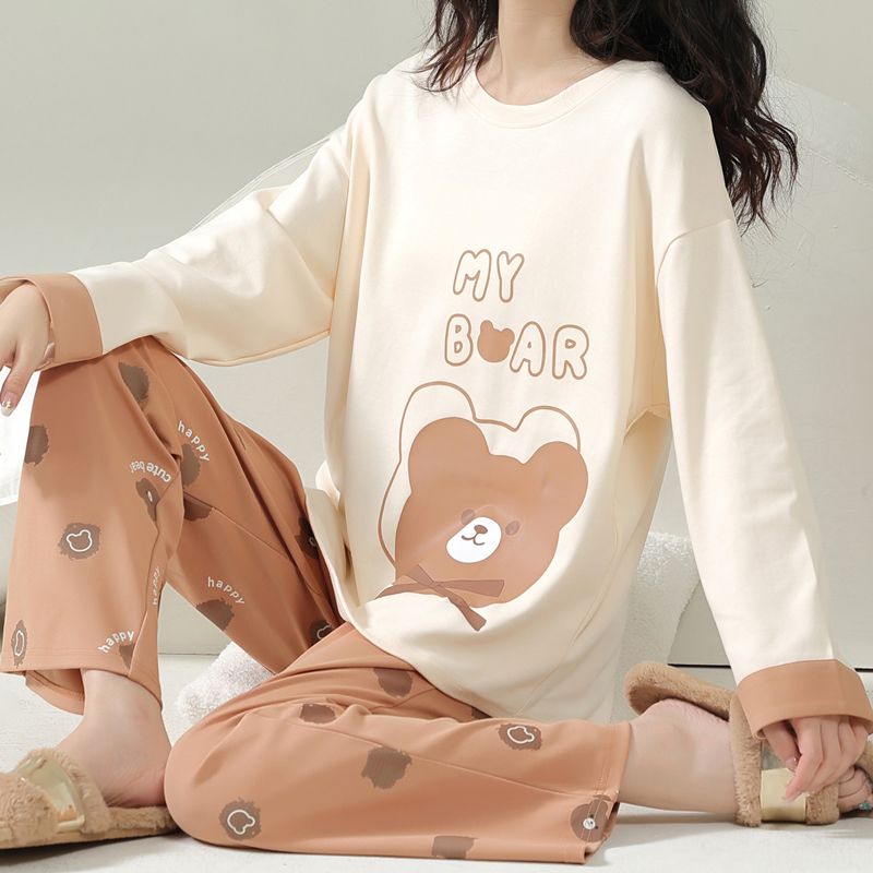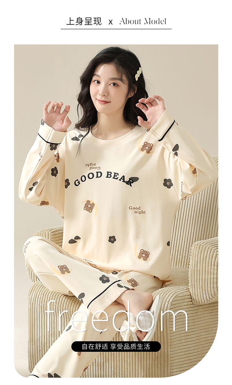 100%纯棉女士睡衣春秋季长袖长裤高档全棉学生冬天薄款家居服套装