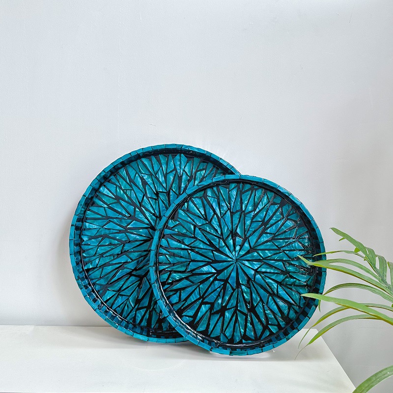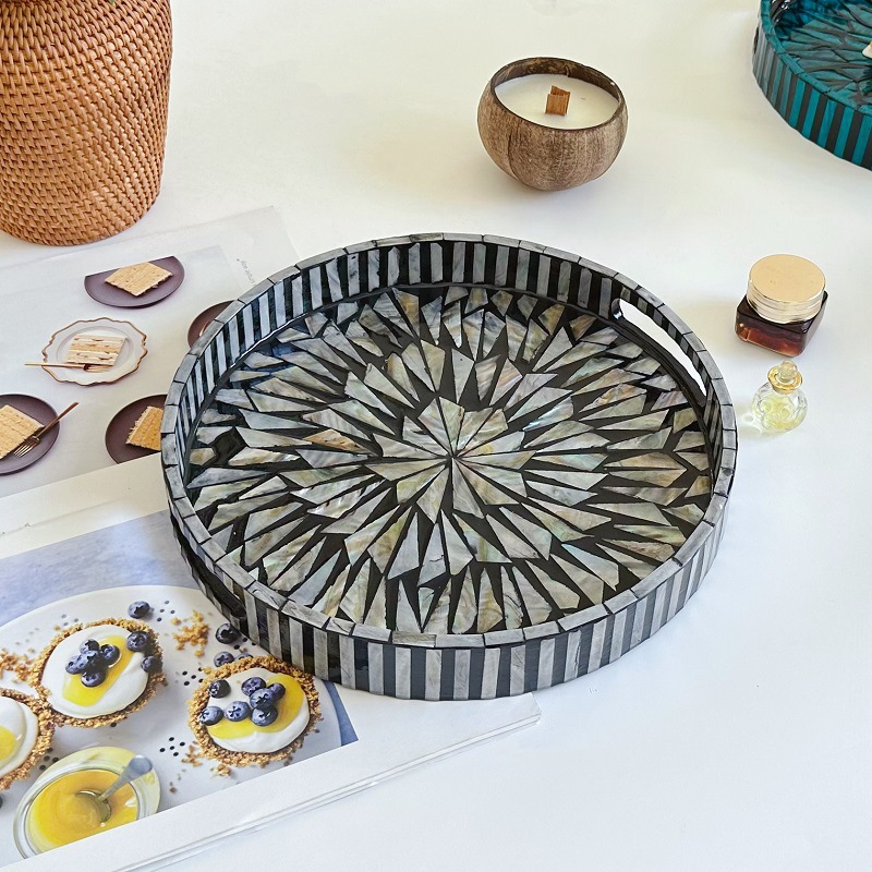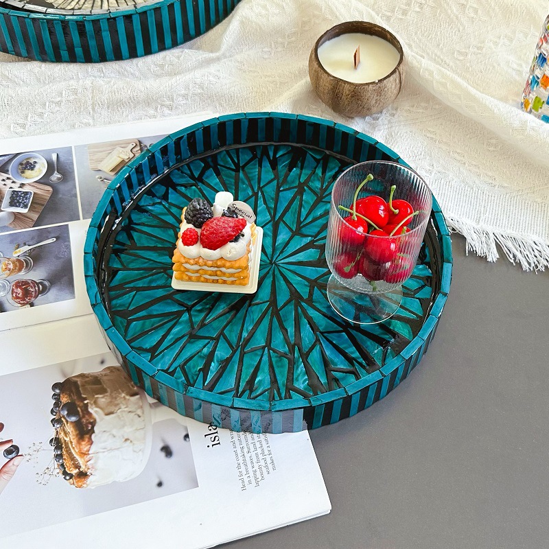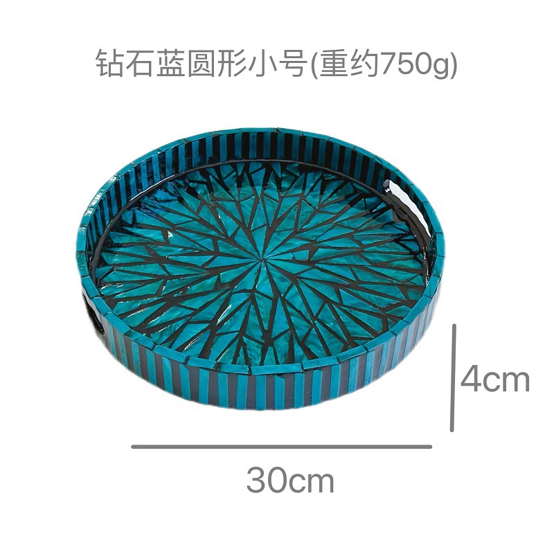 北欧风彩贝壳茶盘果盘首饰收纳托盘家用茶几零食圆形置物盘