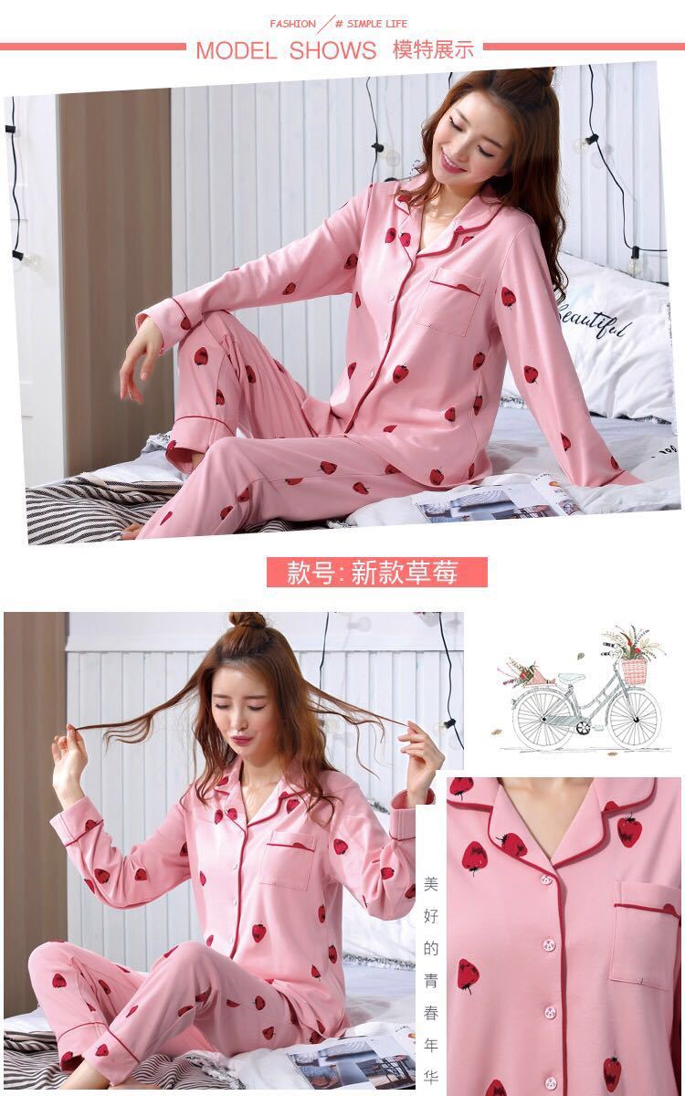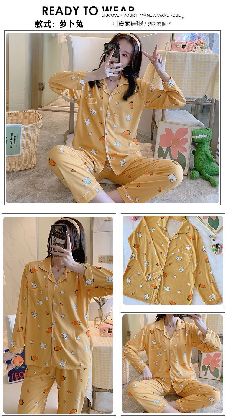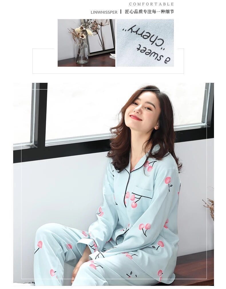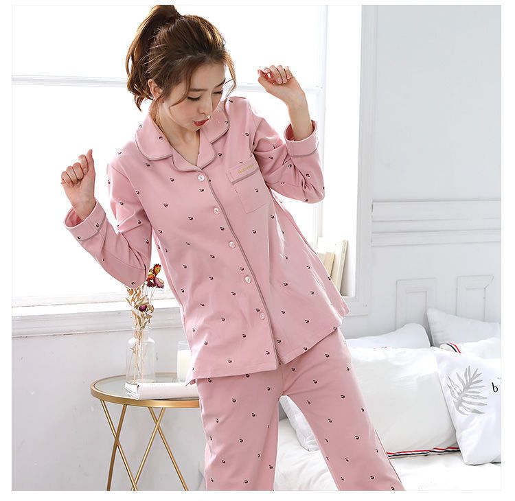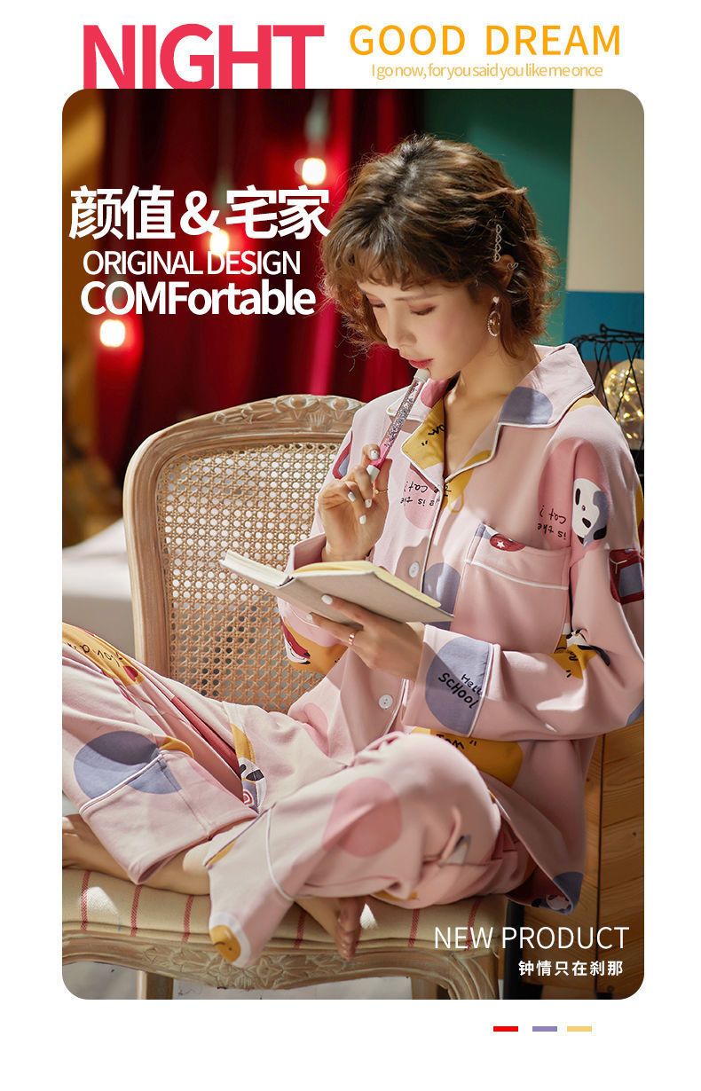 睡衣女秋冬开衫家居服女士长袖休闲宽松睡衣加大码睡衣月子服套装