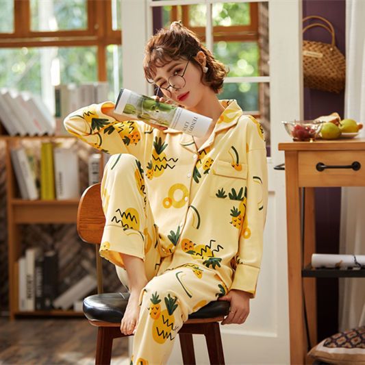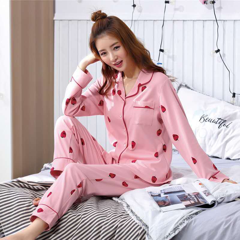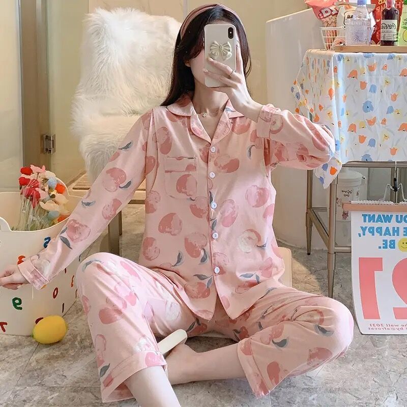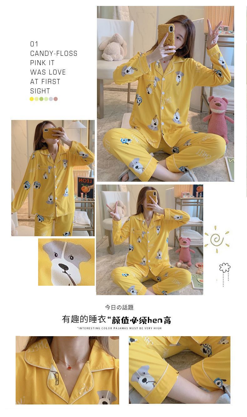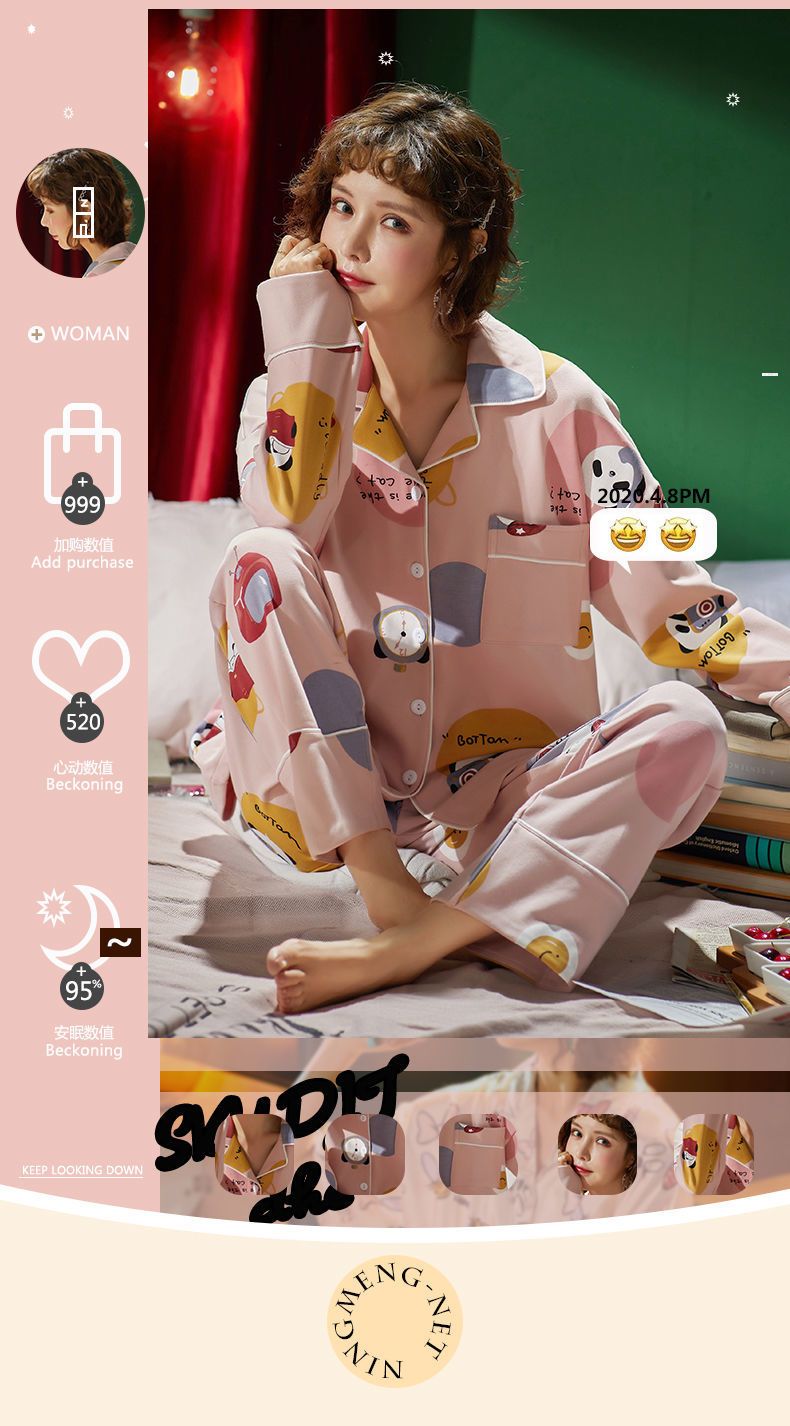 睡衣女秋冬开衫家居服女士长袖休闲宽松睡衣加大码睡衣月子服套装
