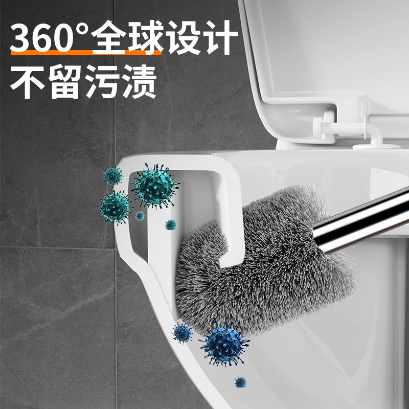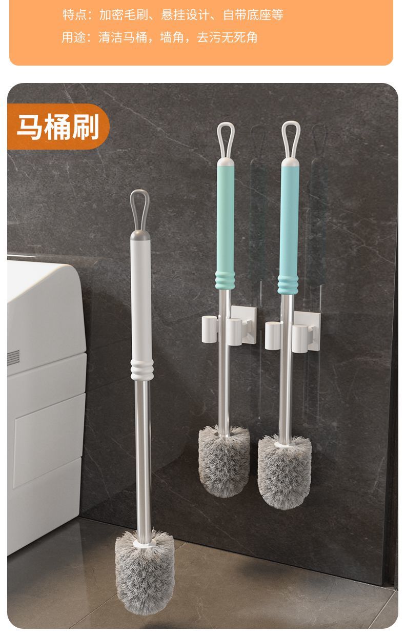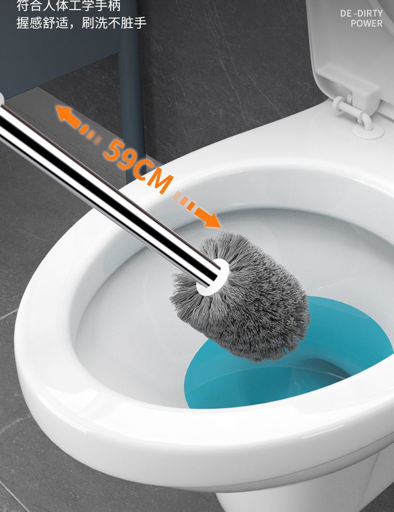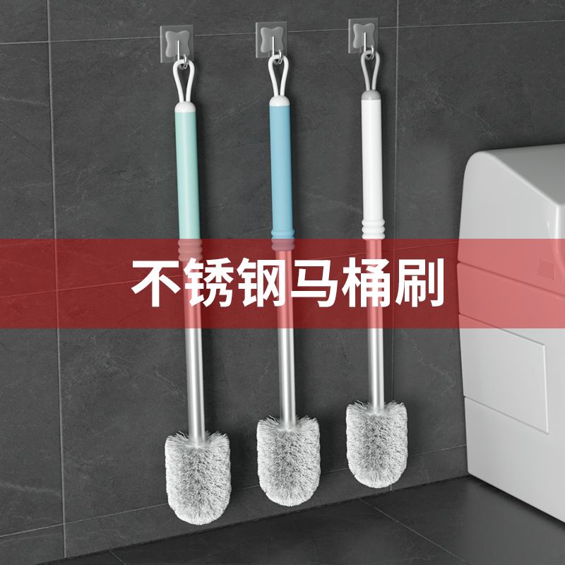 卫生间马桶刷长柄不锈钢杆带底座套装无死角家用厕所洁厕清洁刷子