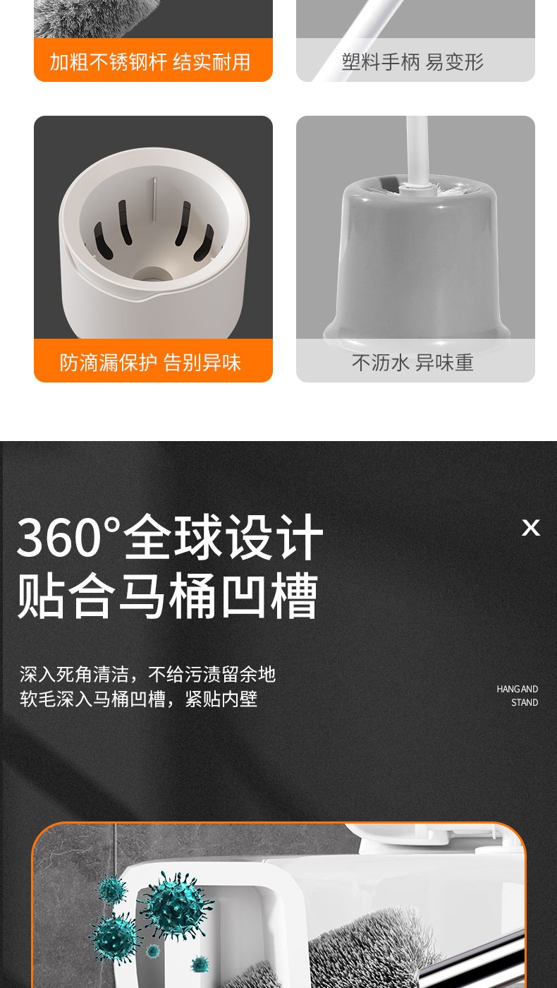 马桶刷套装家用卫生间不锈钢马桶刷长柄厕所清洁刷洁厕刷马桶刷子