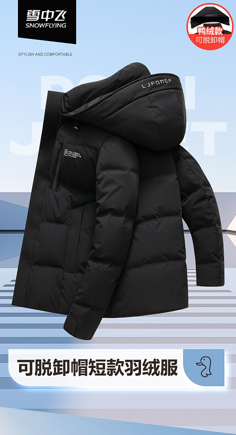 雪中飞短款羽绒服男2024冬季新款中青年男士时尚高档保暖鸭绒外套