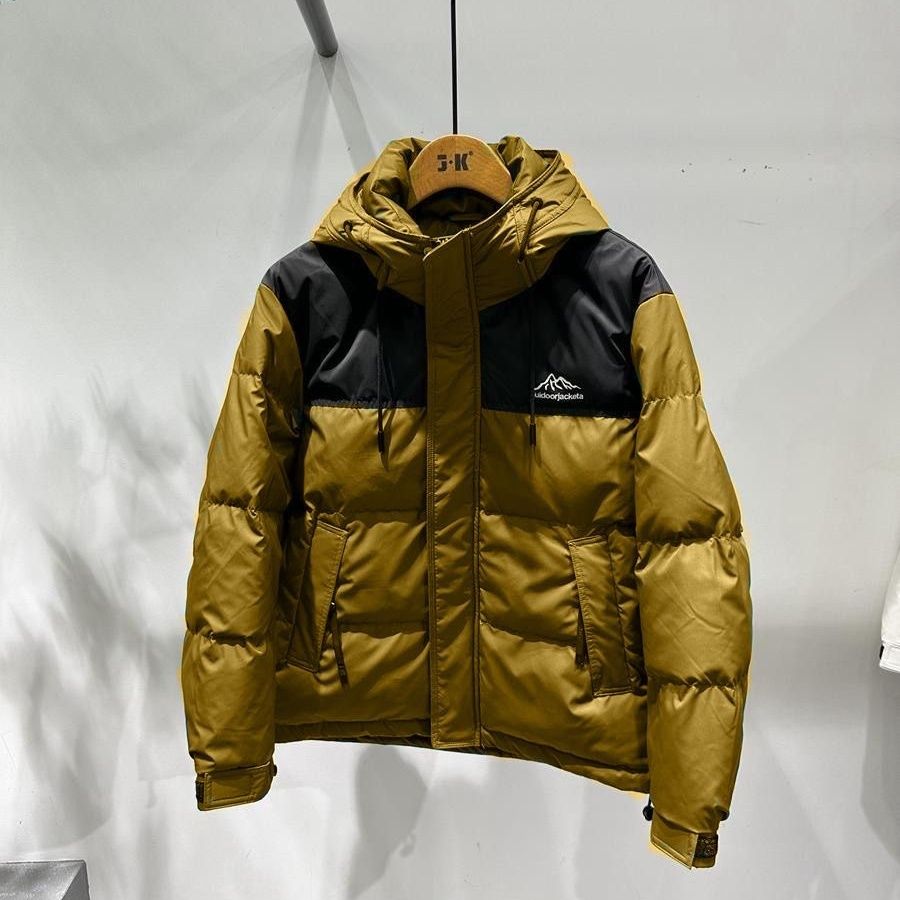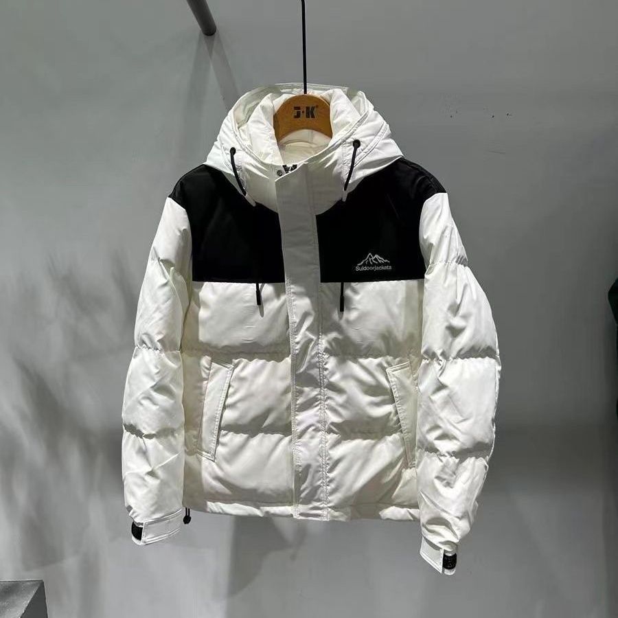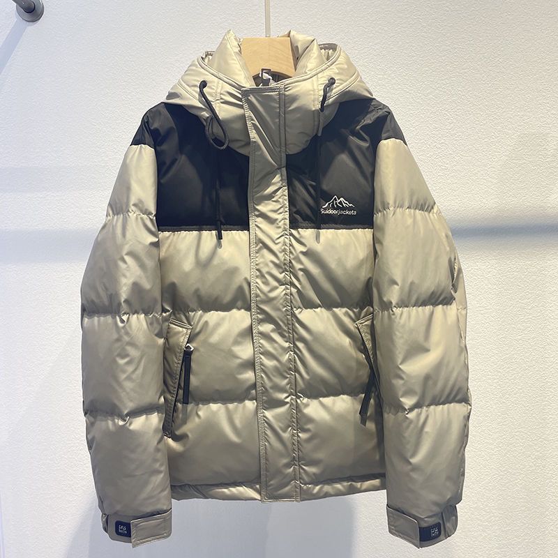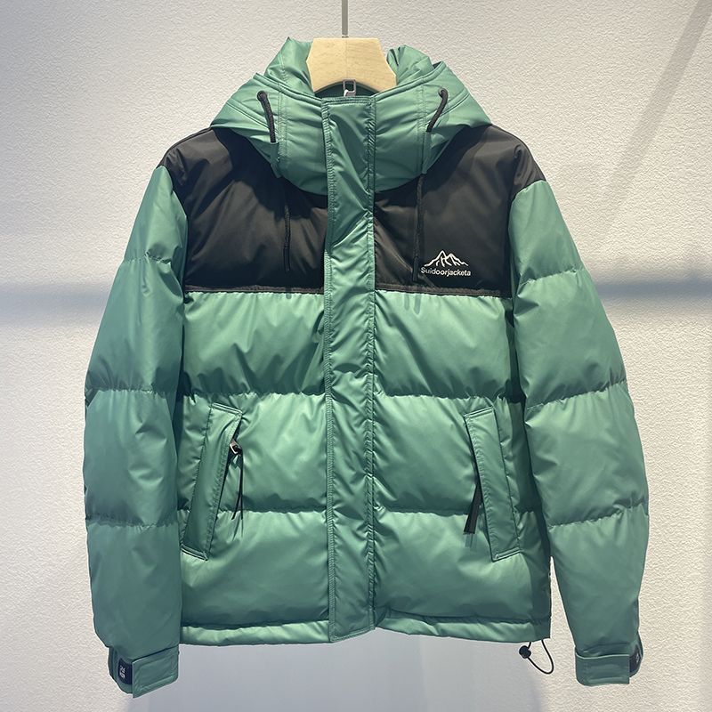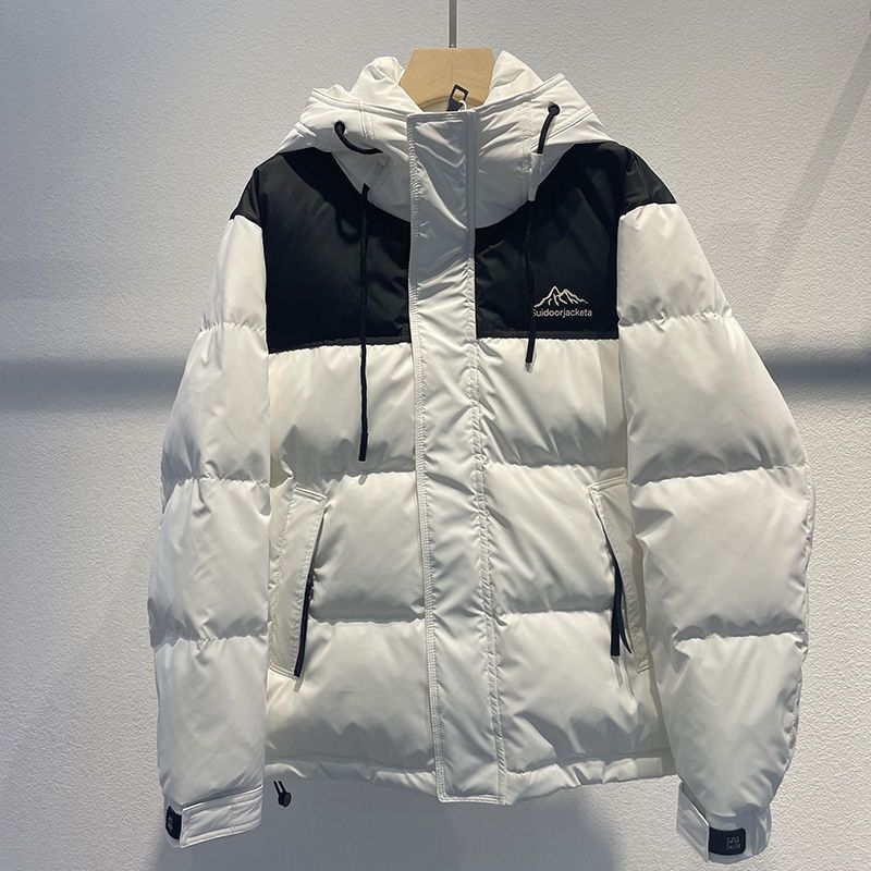 2023秋冬新款连帽拼色羽绒服男加厚保暖帅气百搭白鸭绒短款外套
