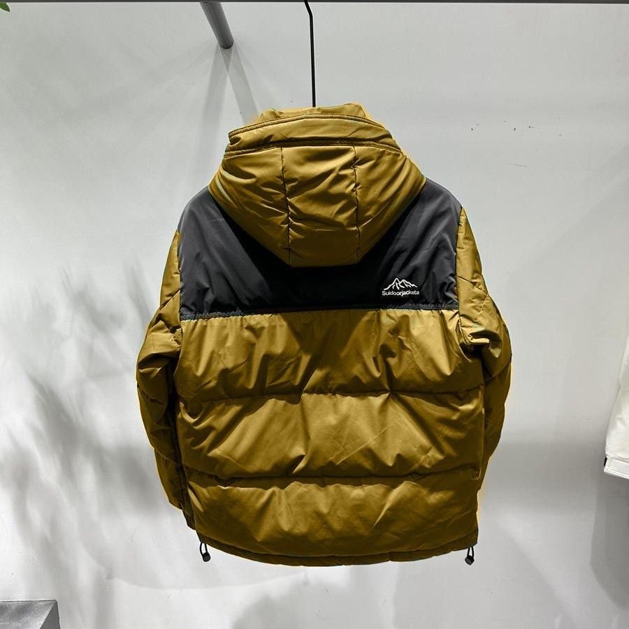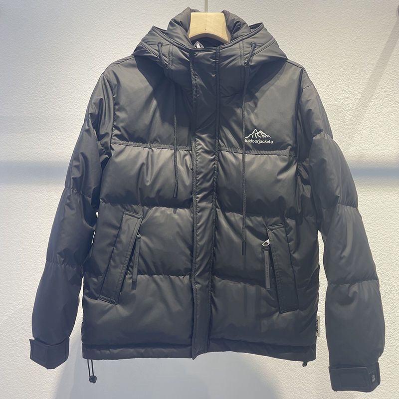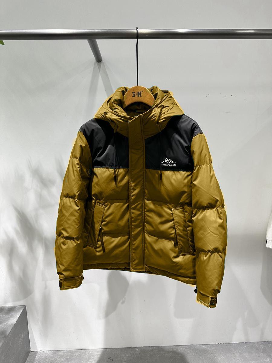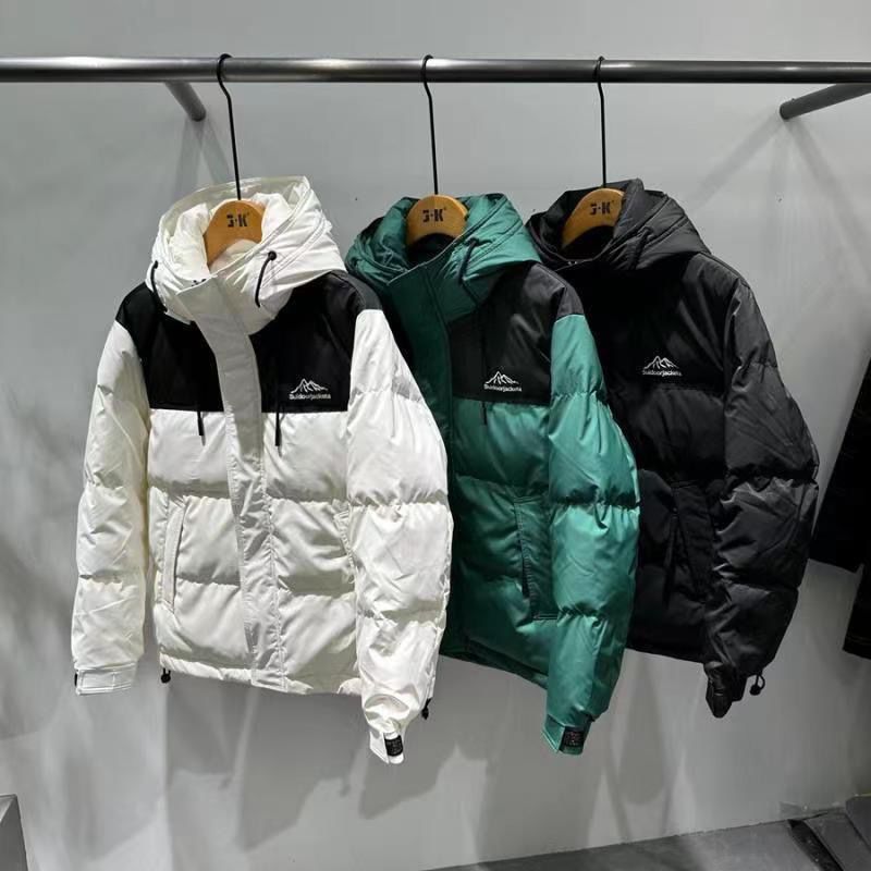 2023秋冬新款连帽拼色羽绒服男加厚保暖帅气百搭白鸭绒短款外套