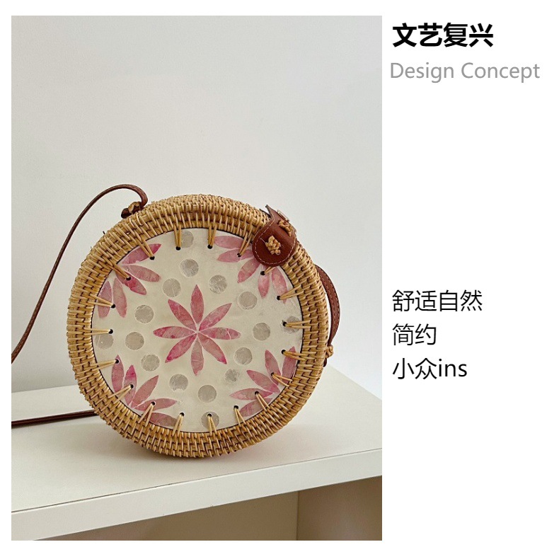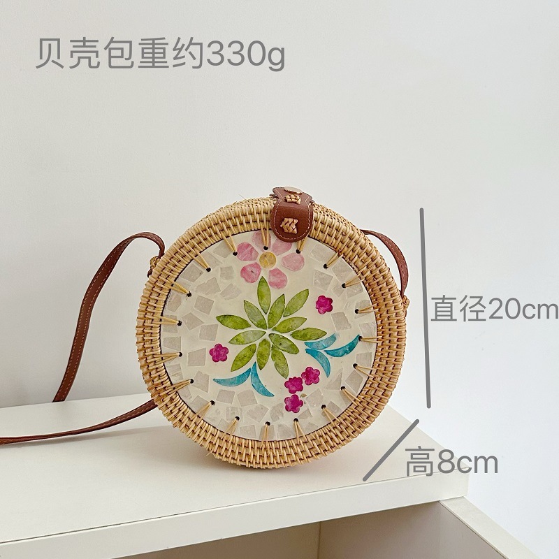 品名:藤编贝壳包包