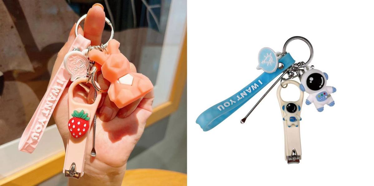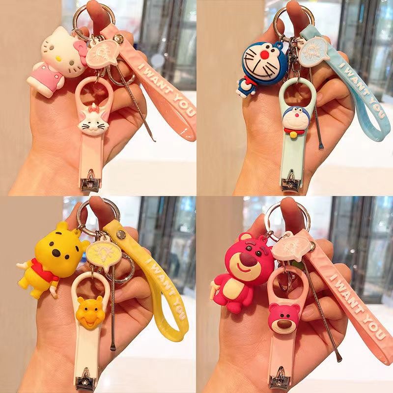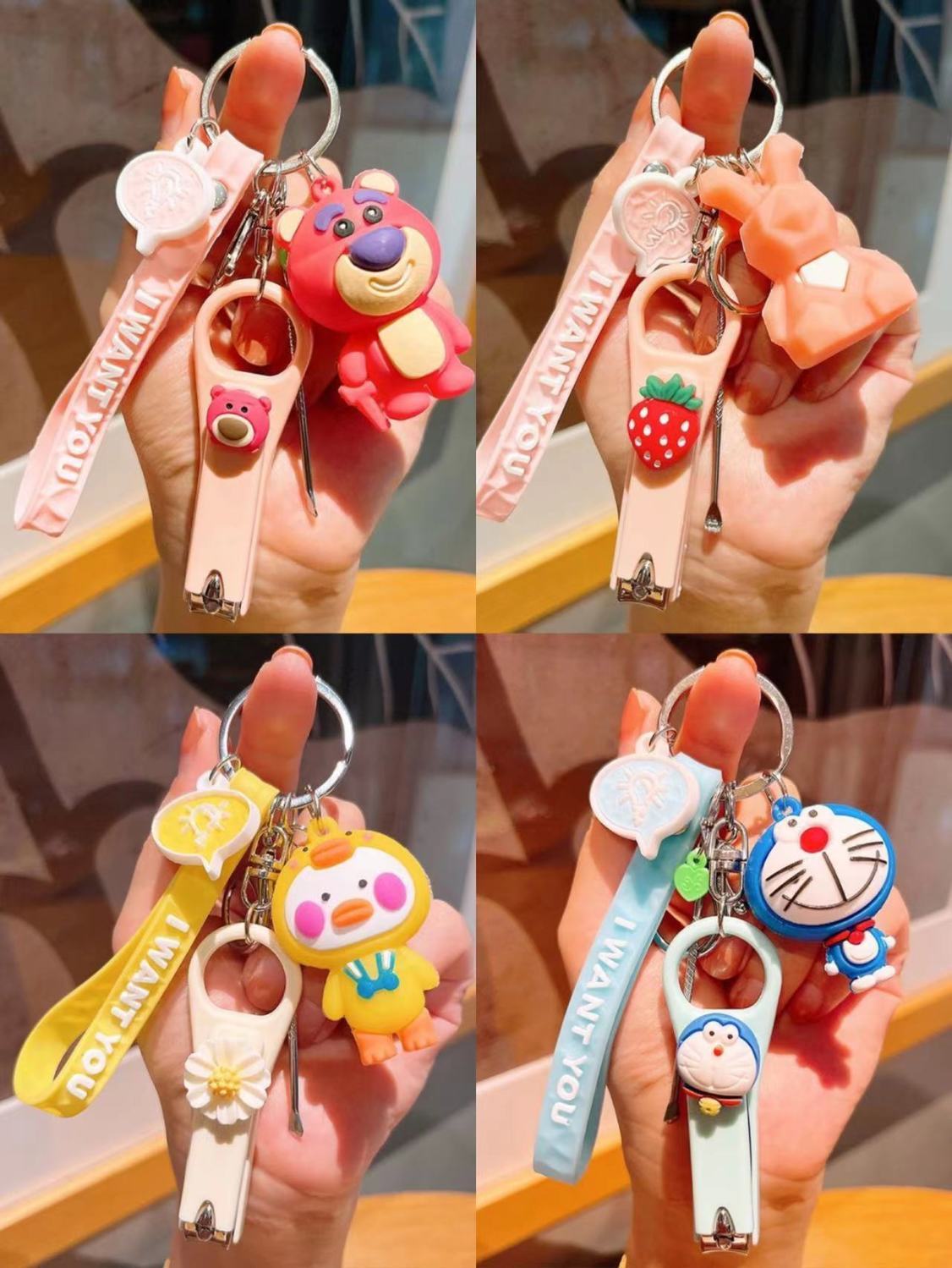 卡通公仔情侣钥匙扣指甲剪挖耳勺创意男女钥匙链锁匙扣挂饰送女友