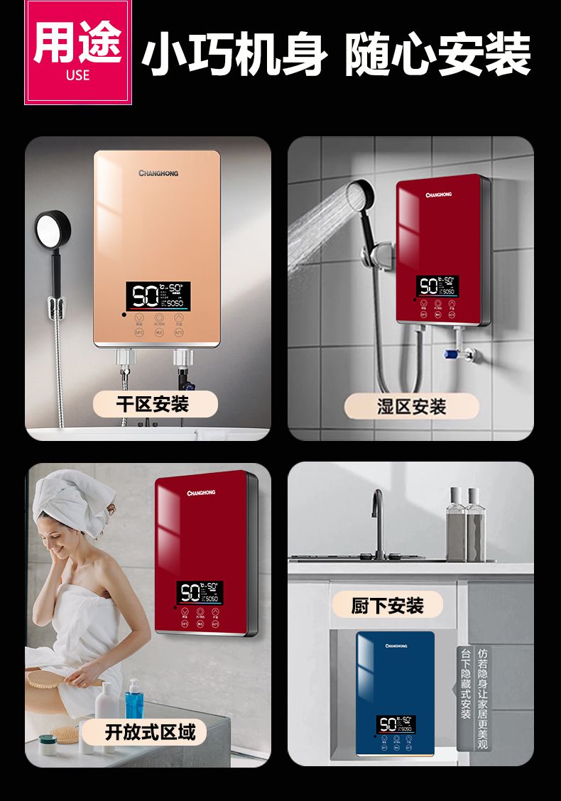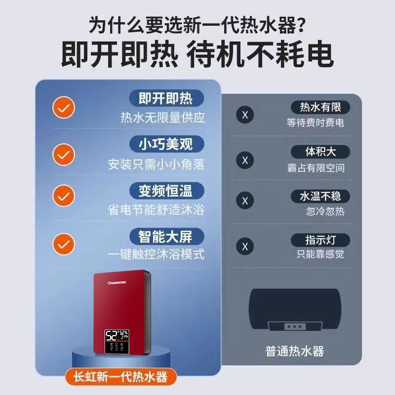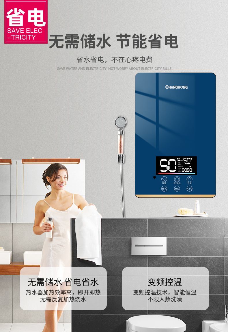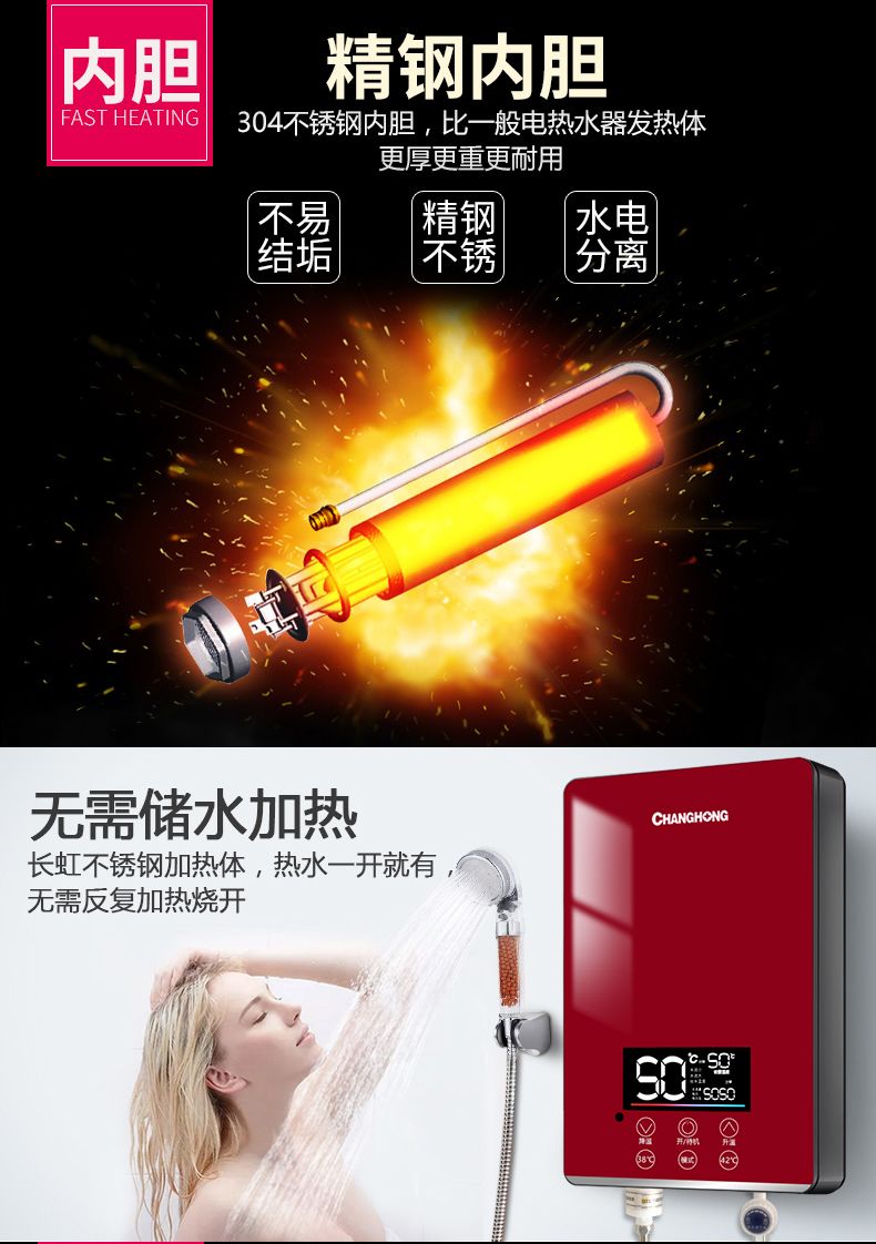 长虹6000W即热式电热水器洗澡 家用小型速热式热水器卫生间出租房