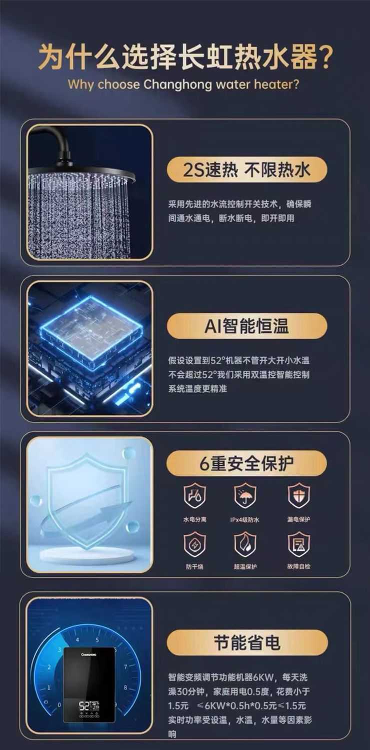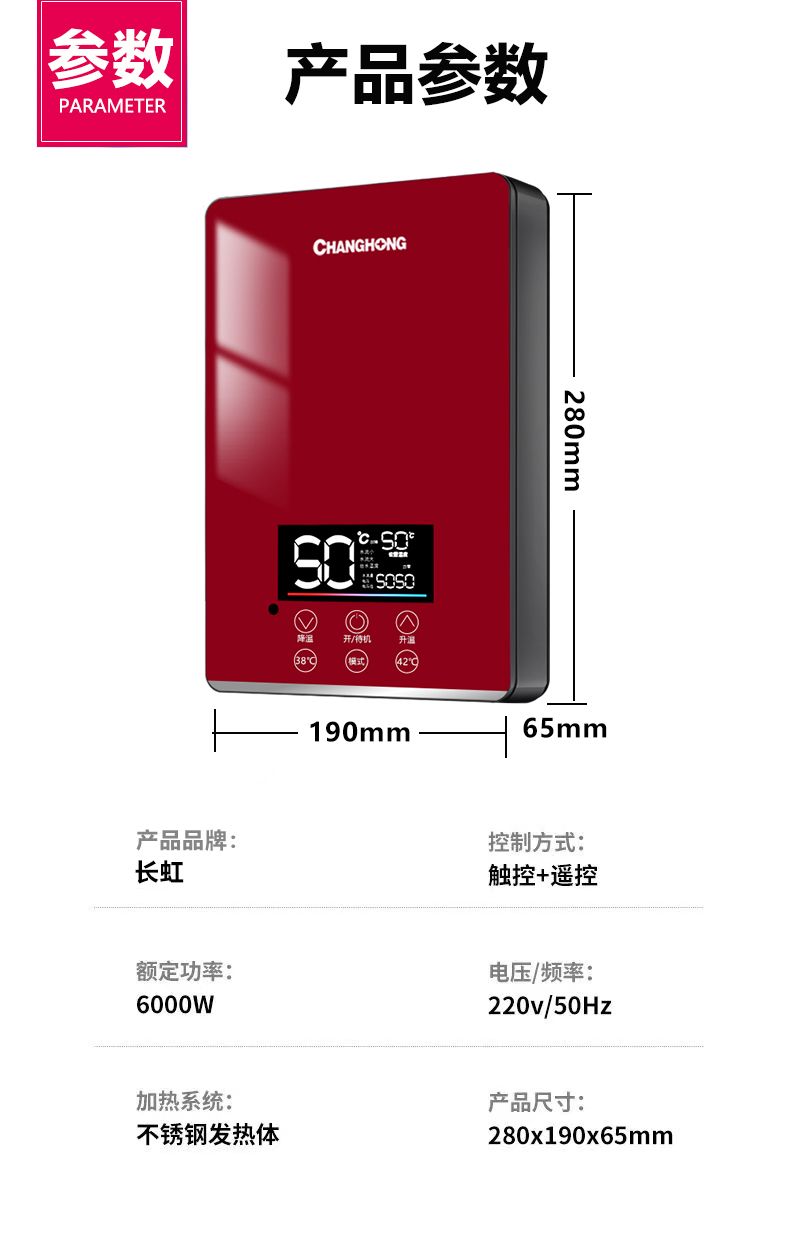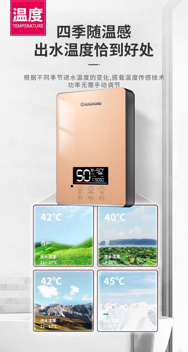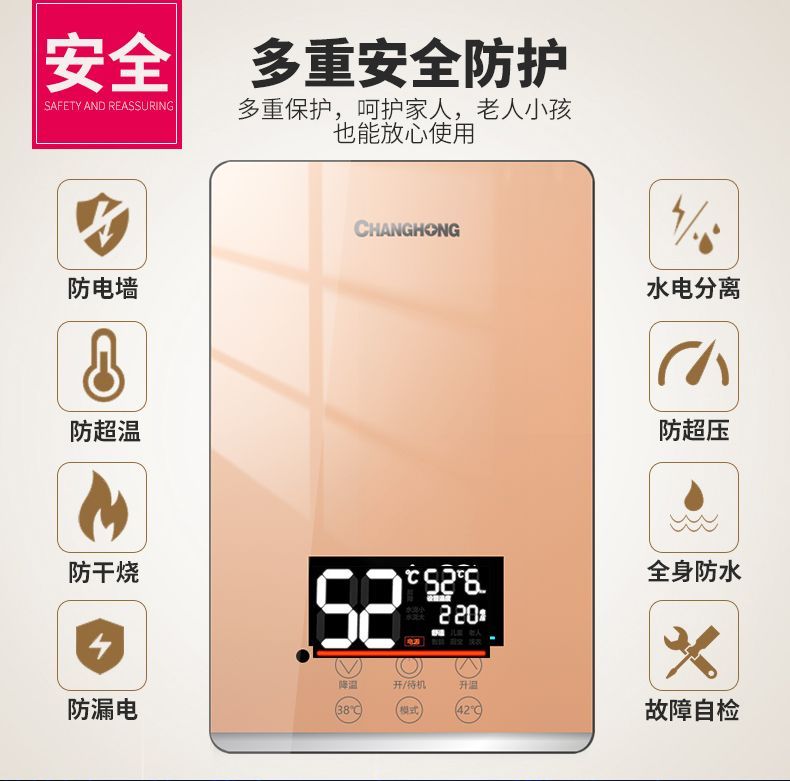 长虹6000W即热式电热水器洗澡 家用小型速热式热水器卫生间出租房