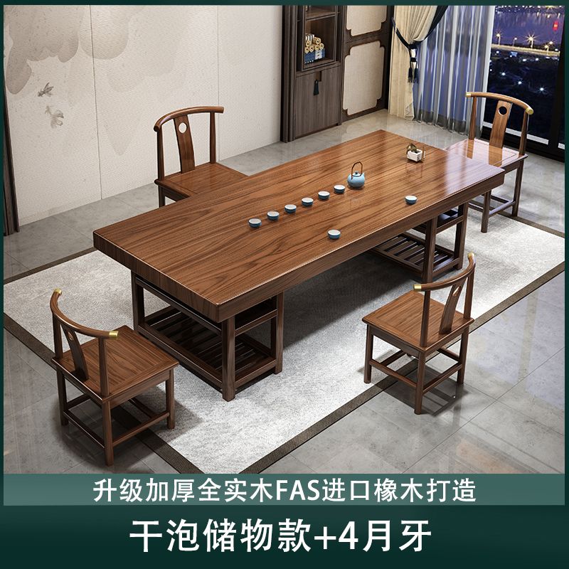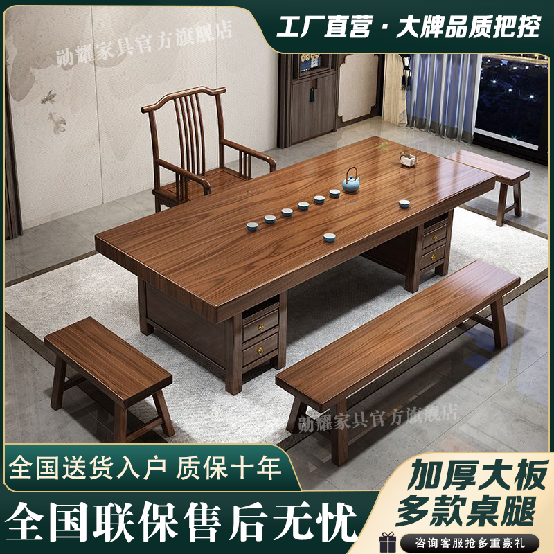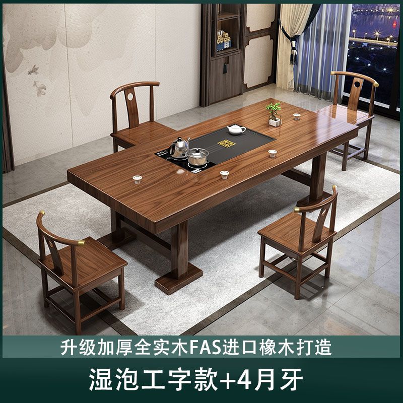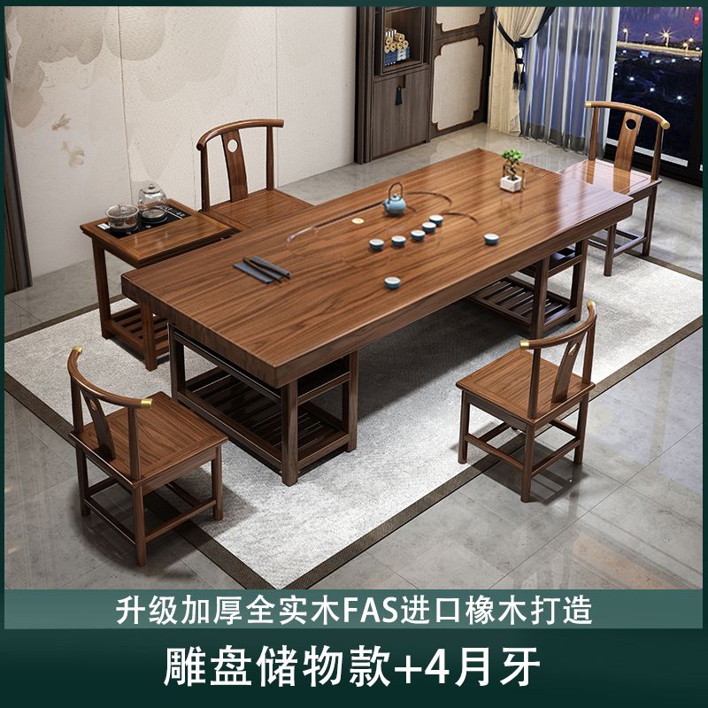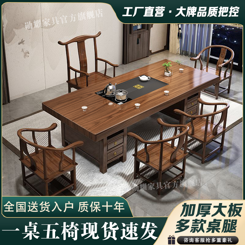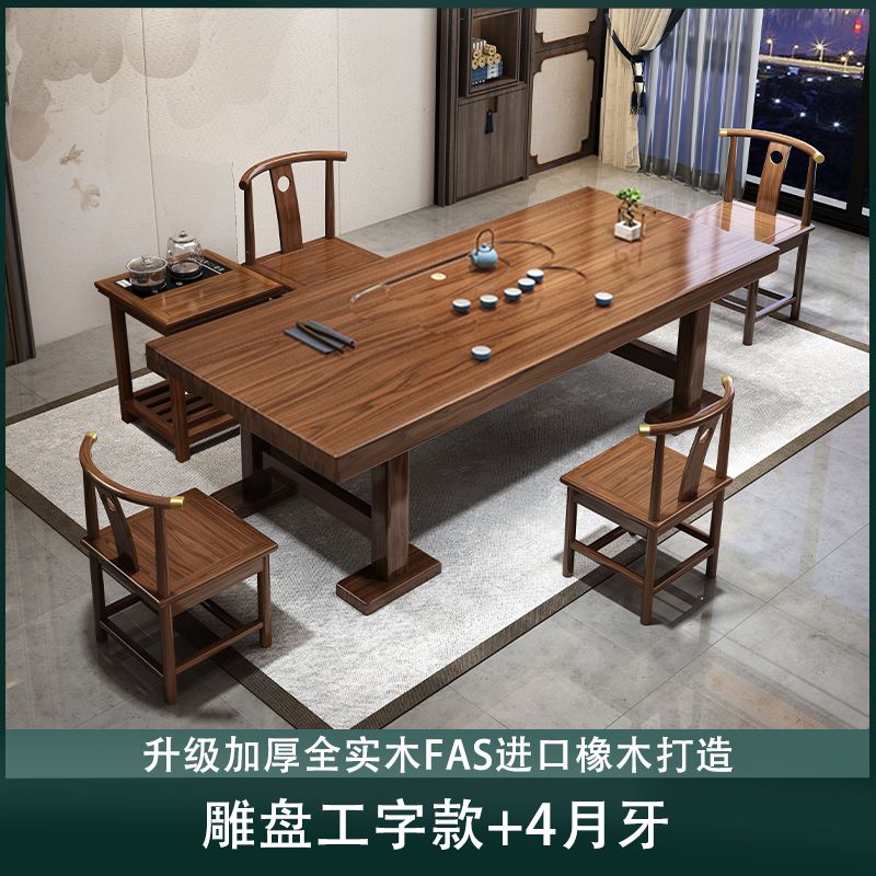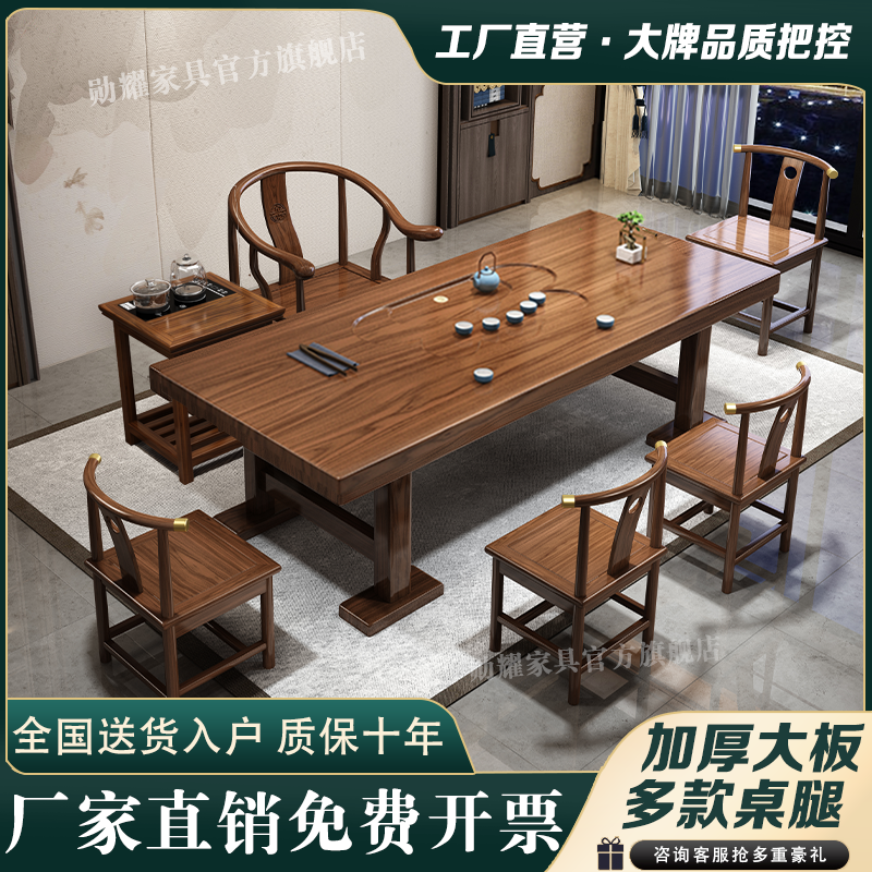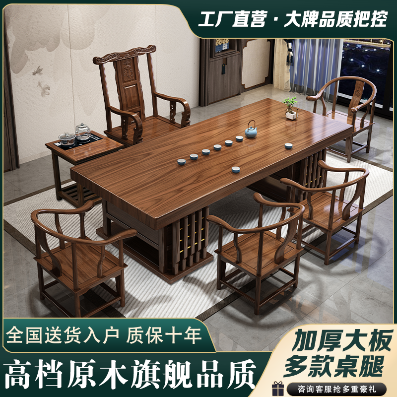 实木大板茶桌椅组合家用办公新中式茶台茶桌一体一整套功夫泡茶几
