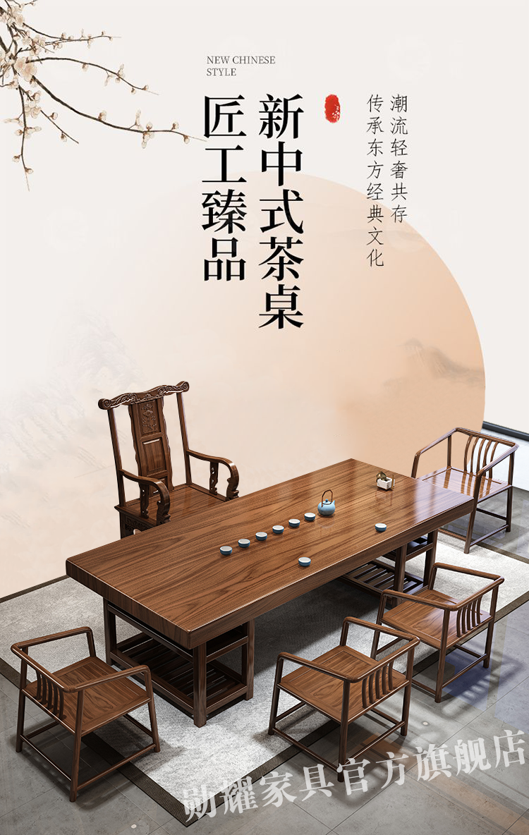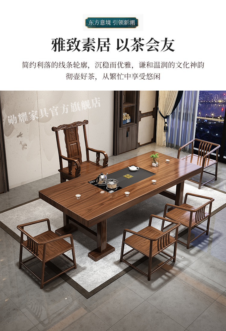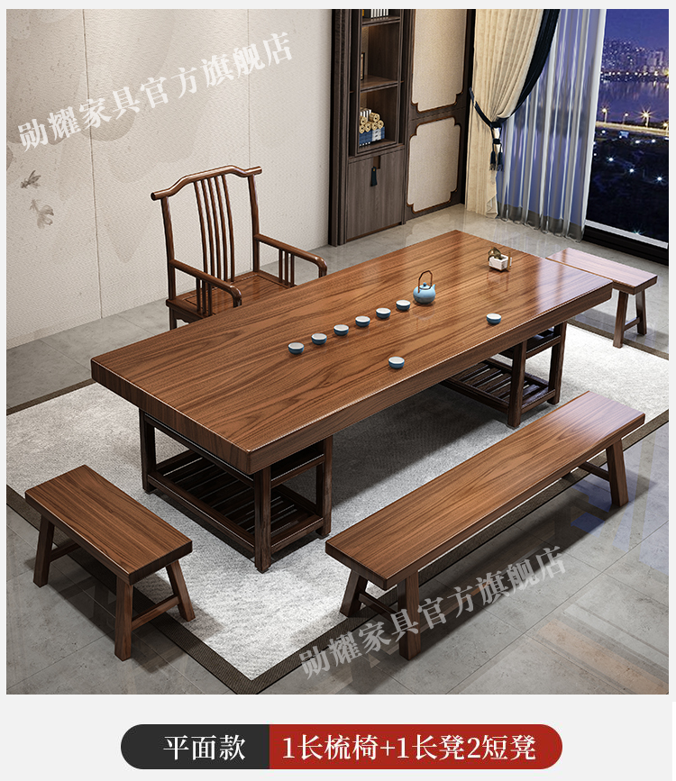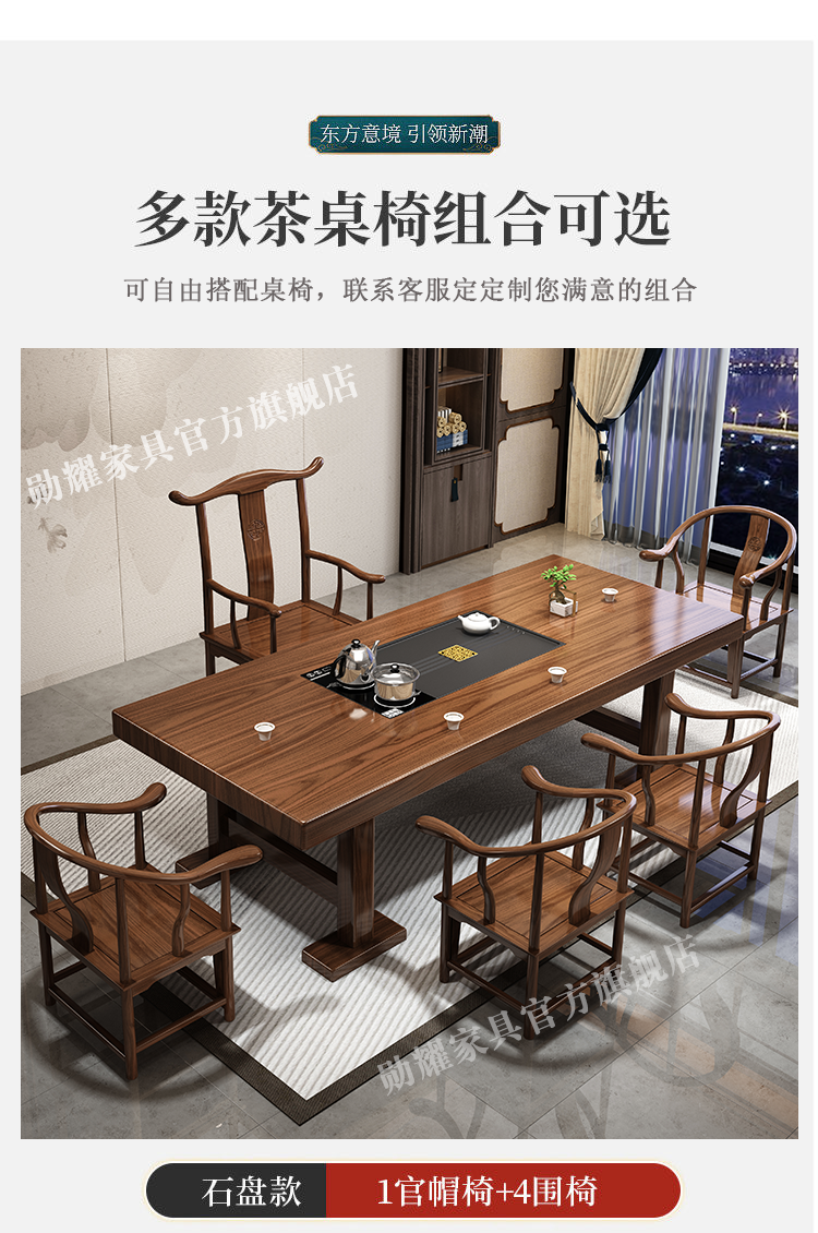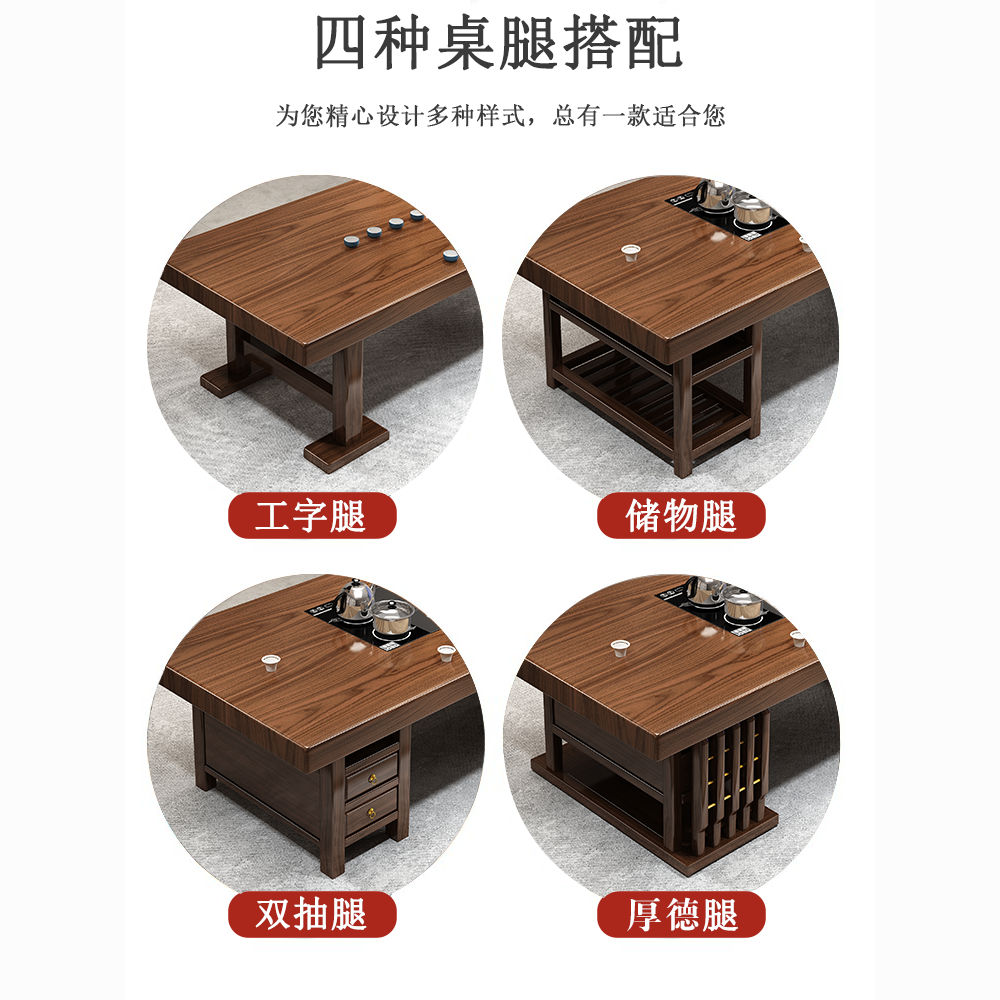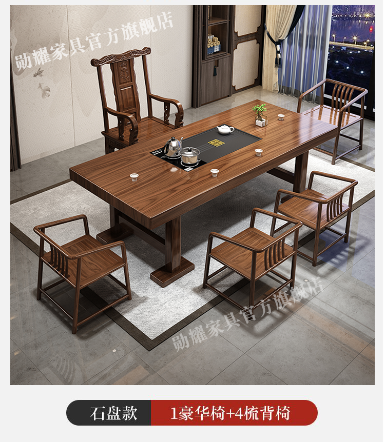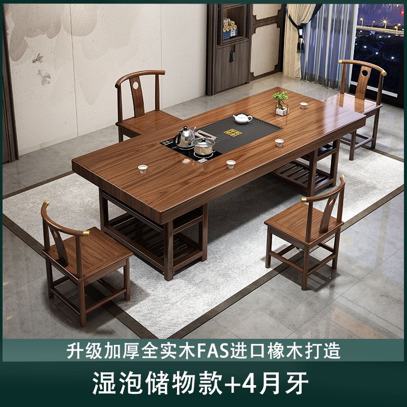 实木大板茶桌椅组合家用办公新中式茶台茶桌一体一整套功夫泡茶几