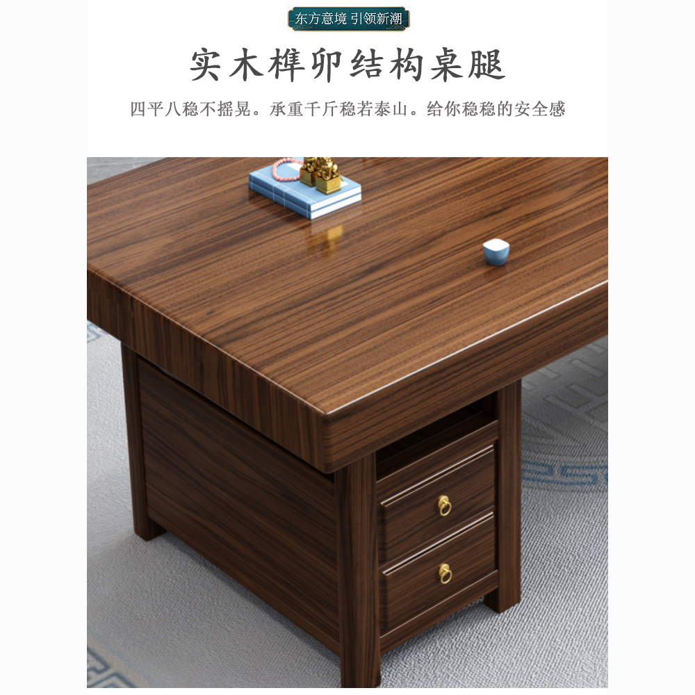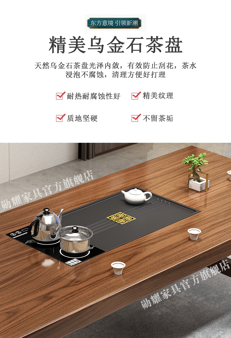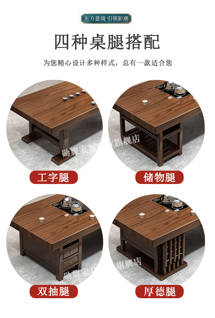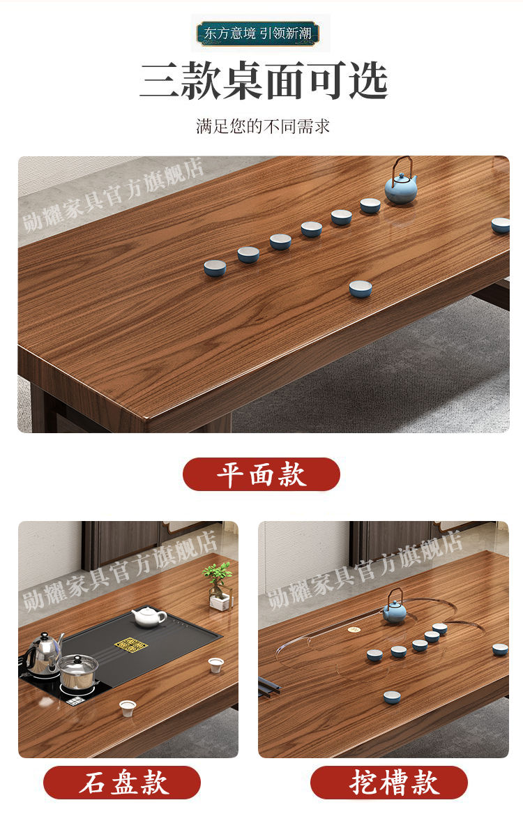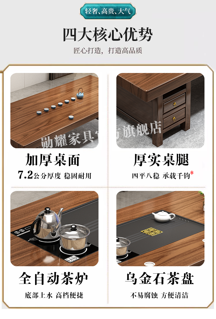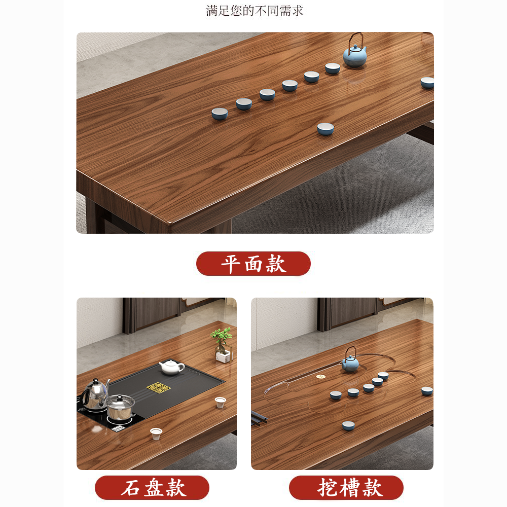实木大板茶桌椅组合家用办公新中式茶台茶桌一体一整套功夫泡茶几