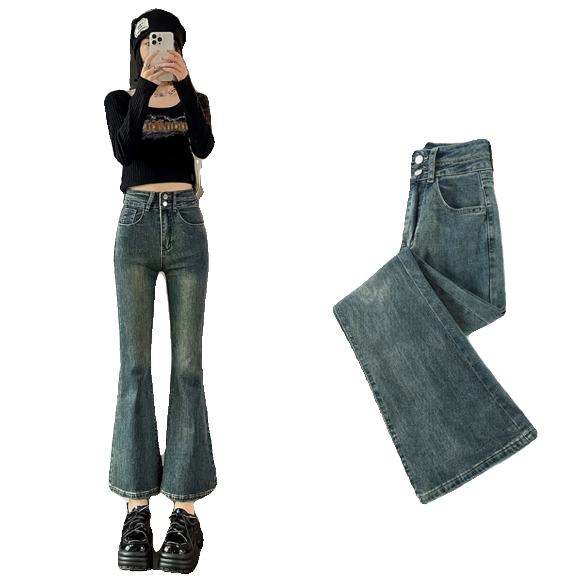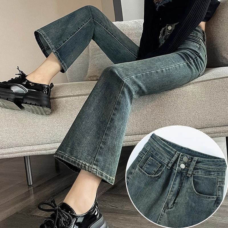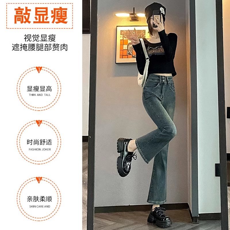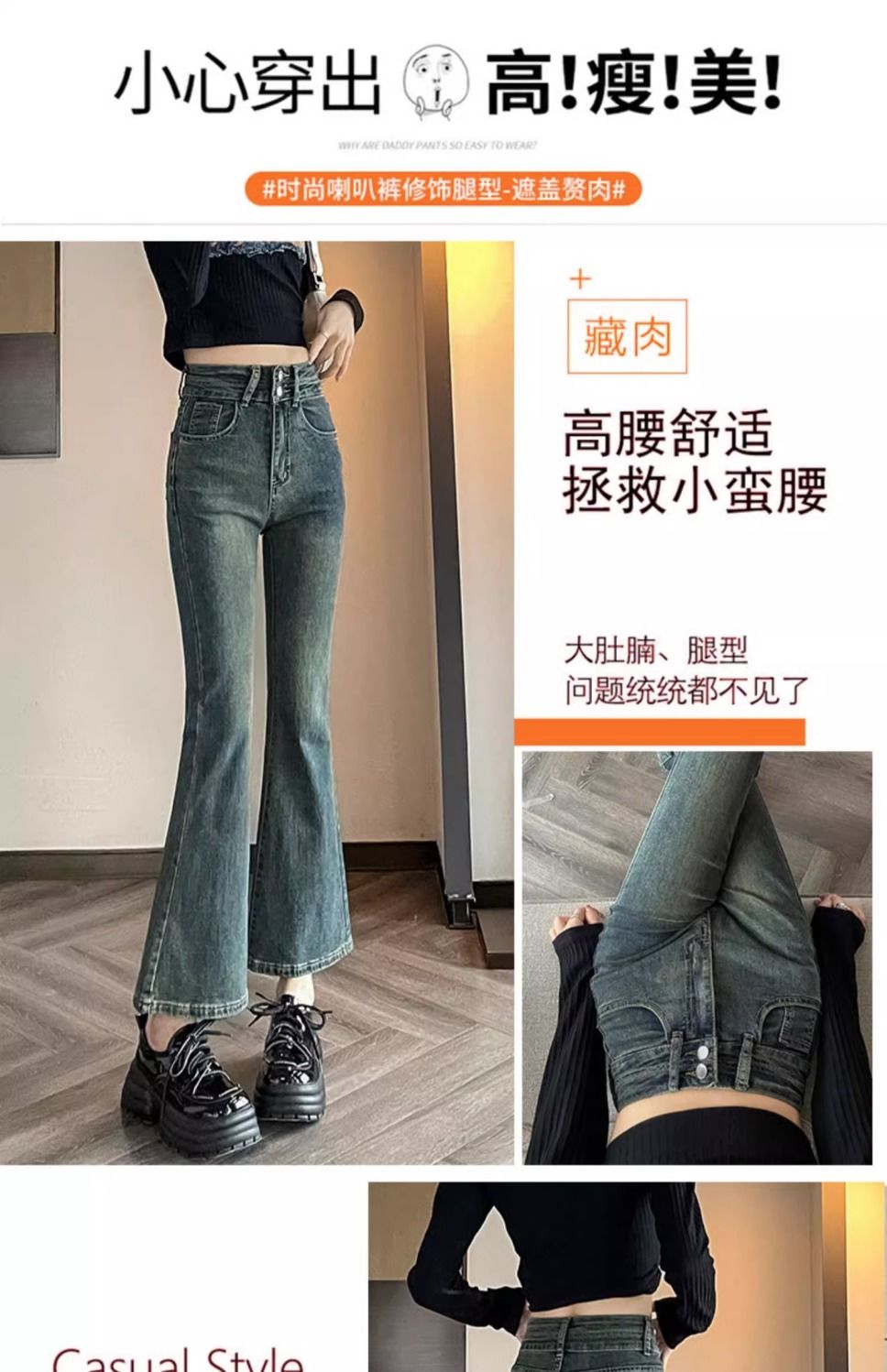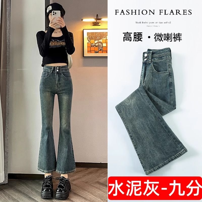 145小个子微喇裤子2025春款女150cm显高九分牛仔裤高腰显瘦喇叭裤