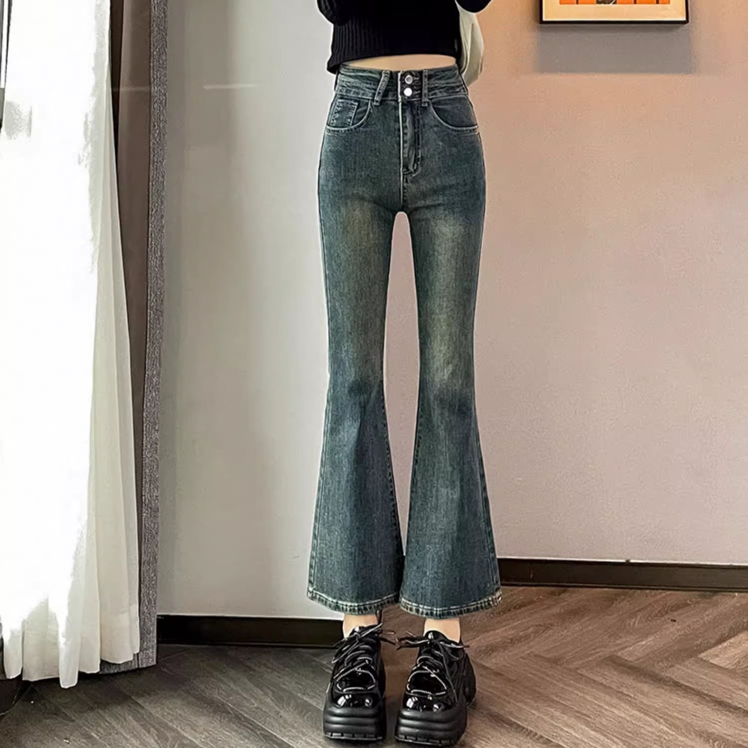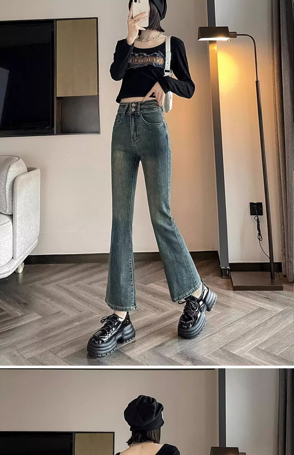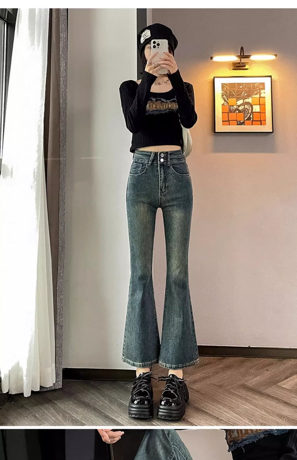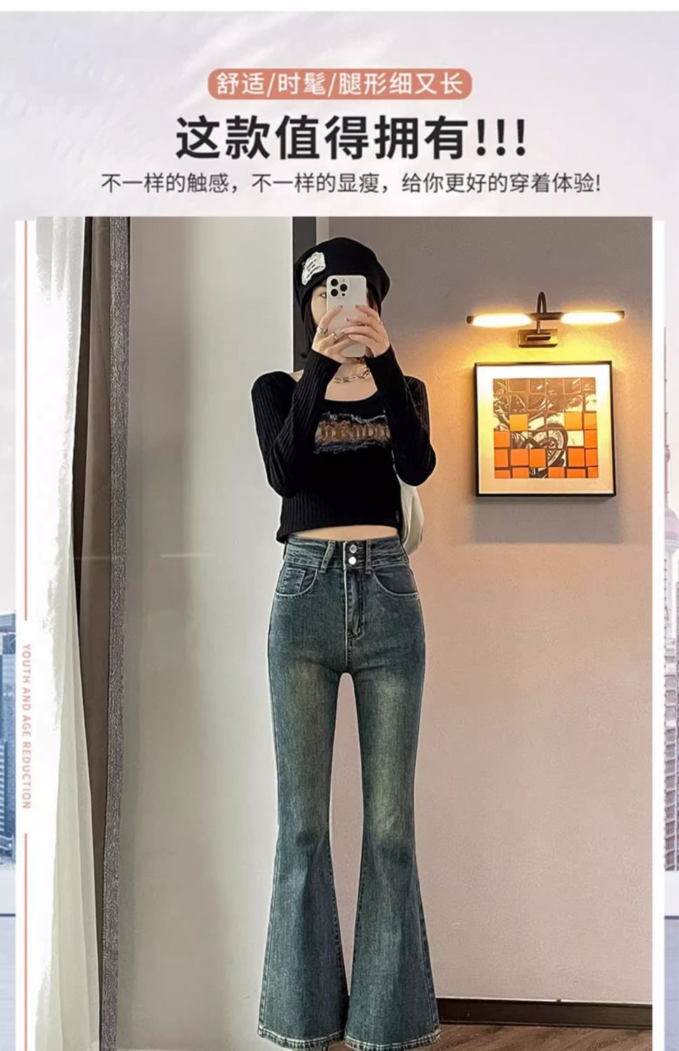 145小个子微喇裤子2025春款女150cm显高九分牛仔裤高腰显瘦喇叭裤
