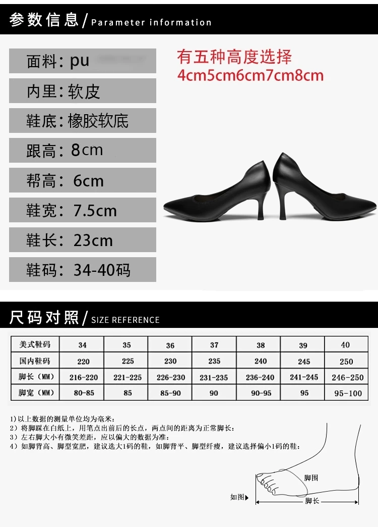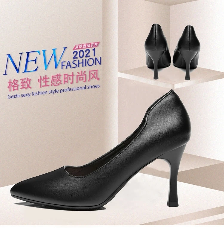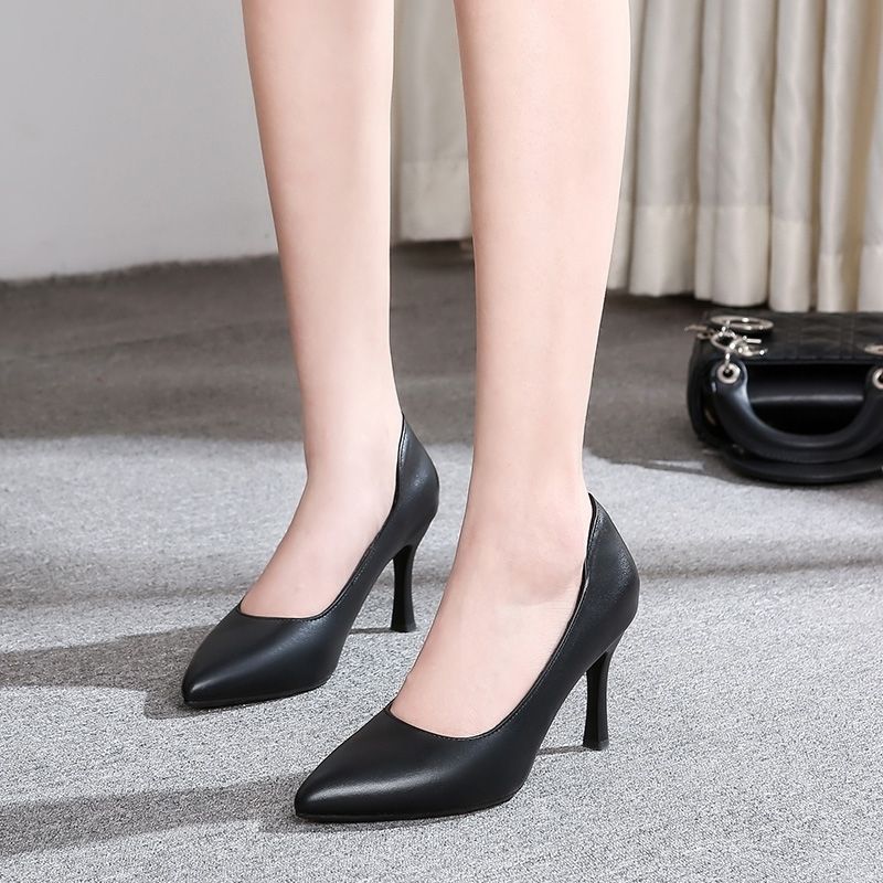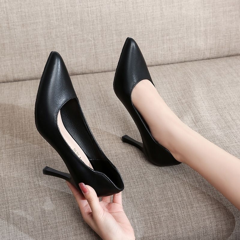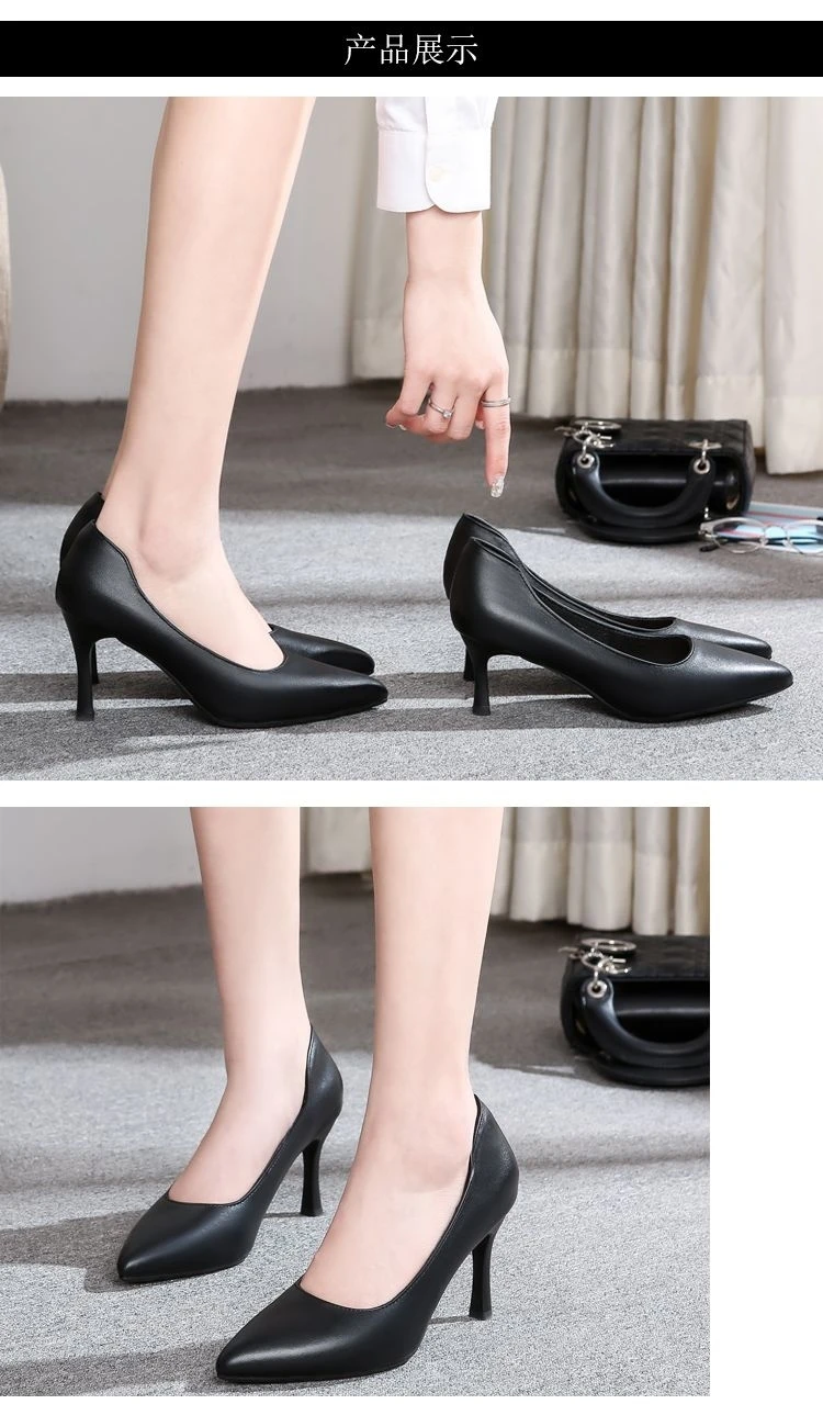 空乘高跟鞋2023新款时尚百搭单鞋尖头细跟职业工作鞋正装黑色皮鞋