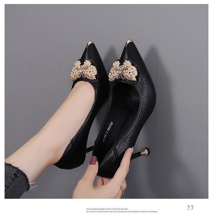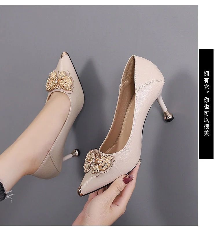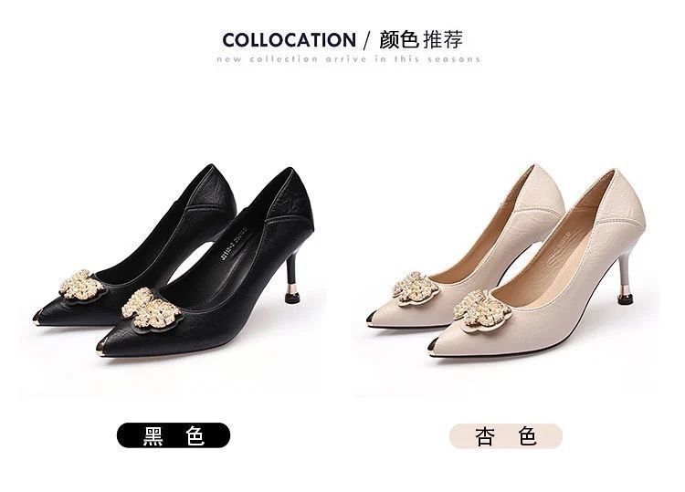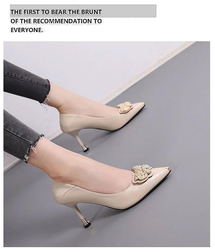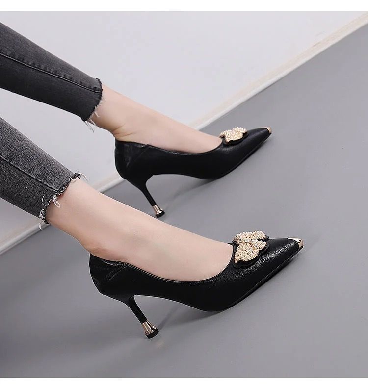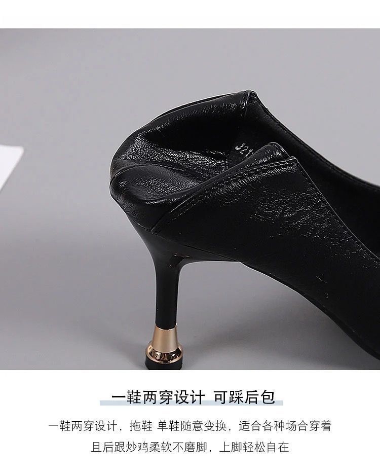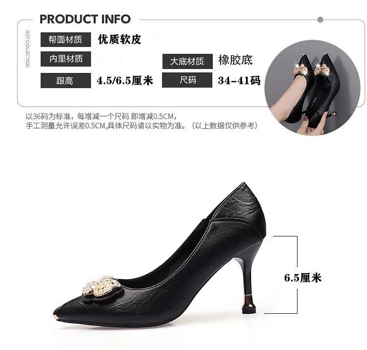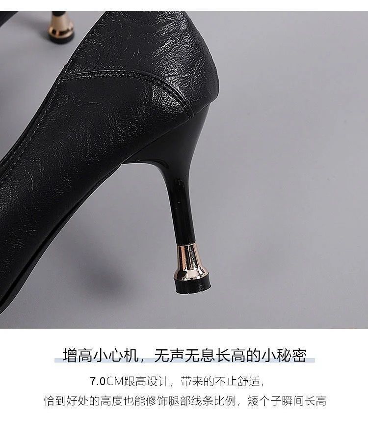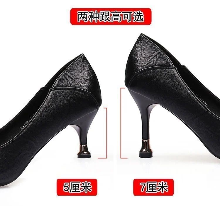 软皮高跟鞋女细跟2022新款中跟单鞋女皮鞋久站不累工作鞋配裙女鞋